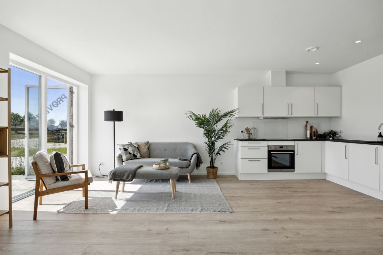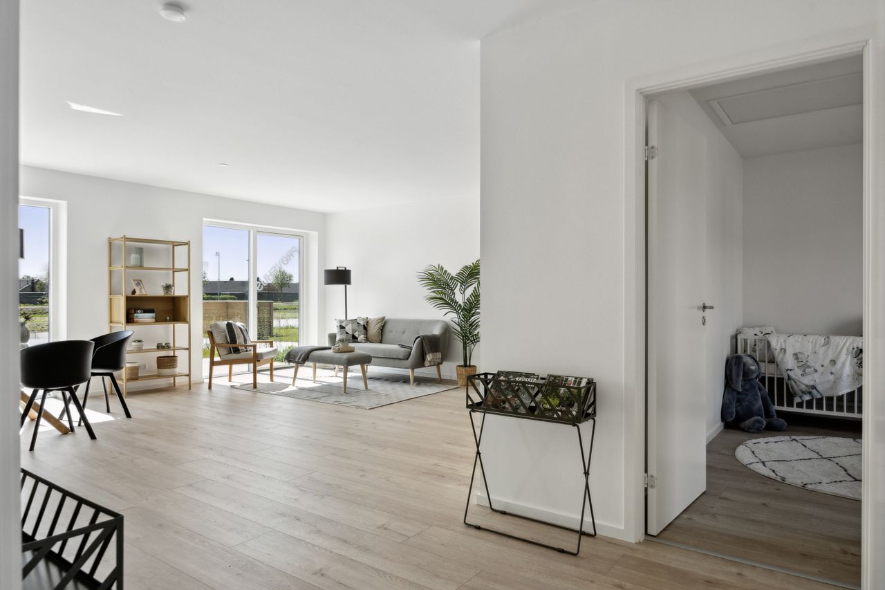 Velkommen til dette skønne rækkehus, der med sine 108 kvadratmeter boligareal byder på moderne komfort og energieffektivitet. Opført i 2024 er huset indflytningsklart og designet med fokus på både æstetik og funktionalitet. Hele huset er udstyret med gulvvarme, som sikrer en behagelig temperatur året rundt, mens den avancerede luft-til-vand varmepumpe sammen med et varmegenvindingssystem bidrager til lavere energiforbrug.