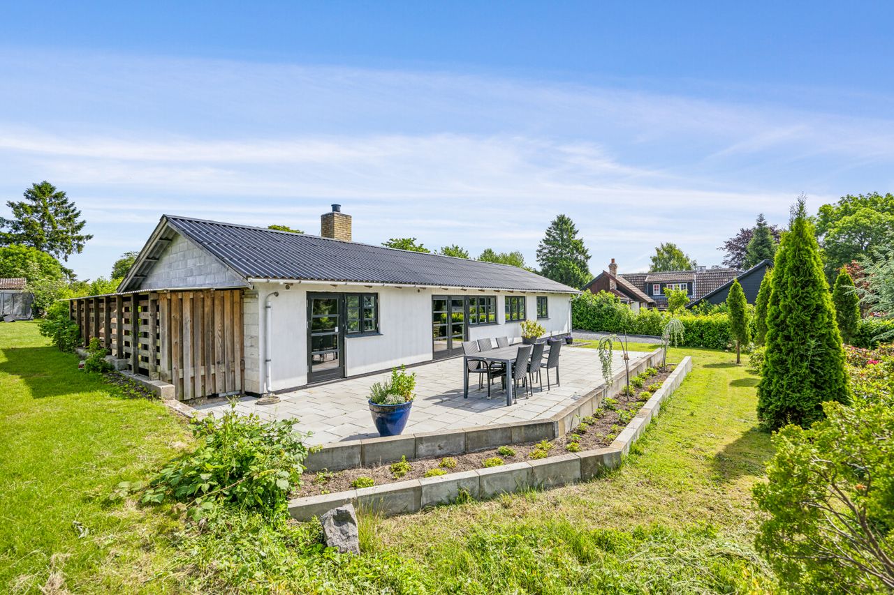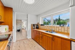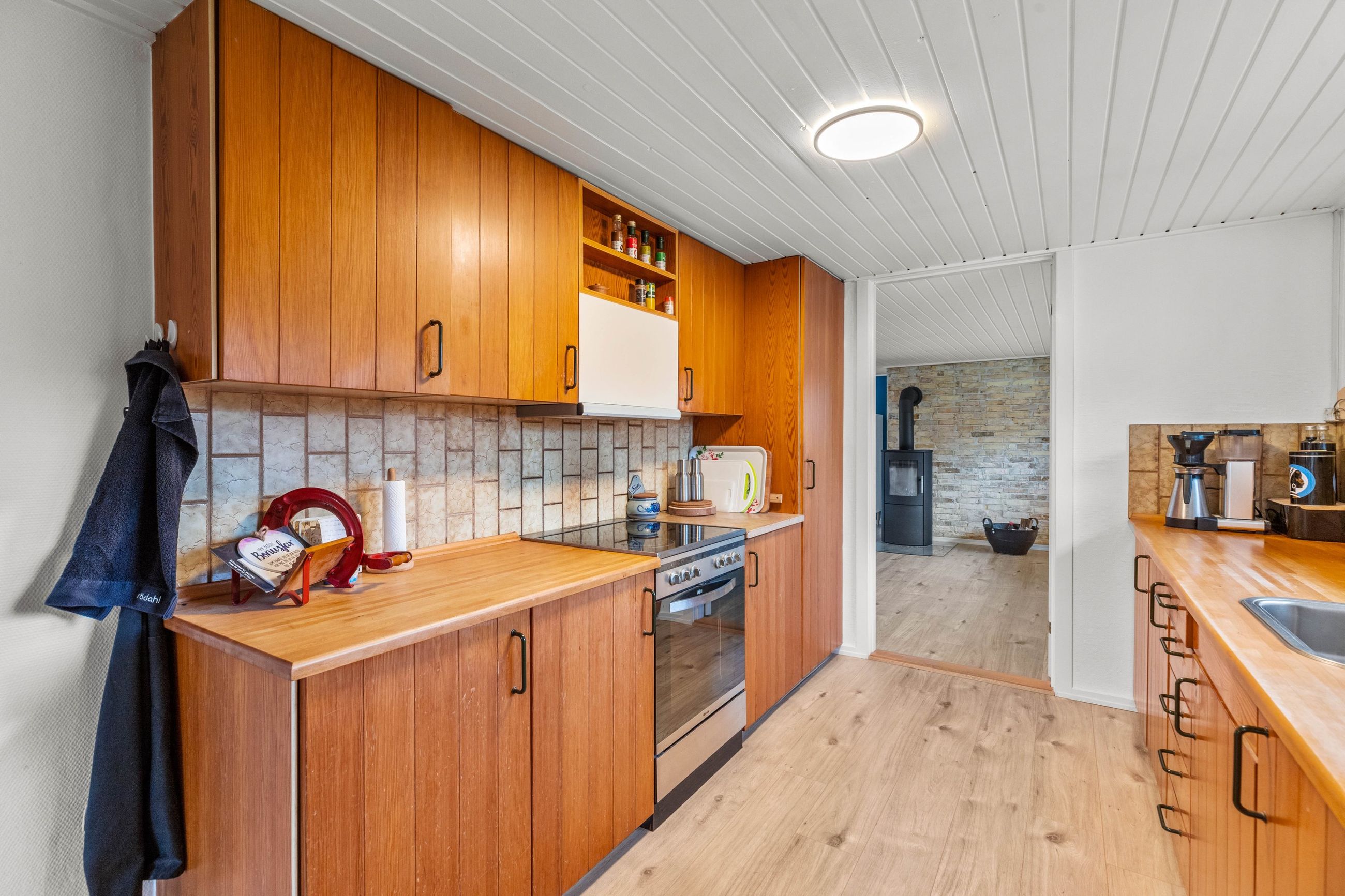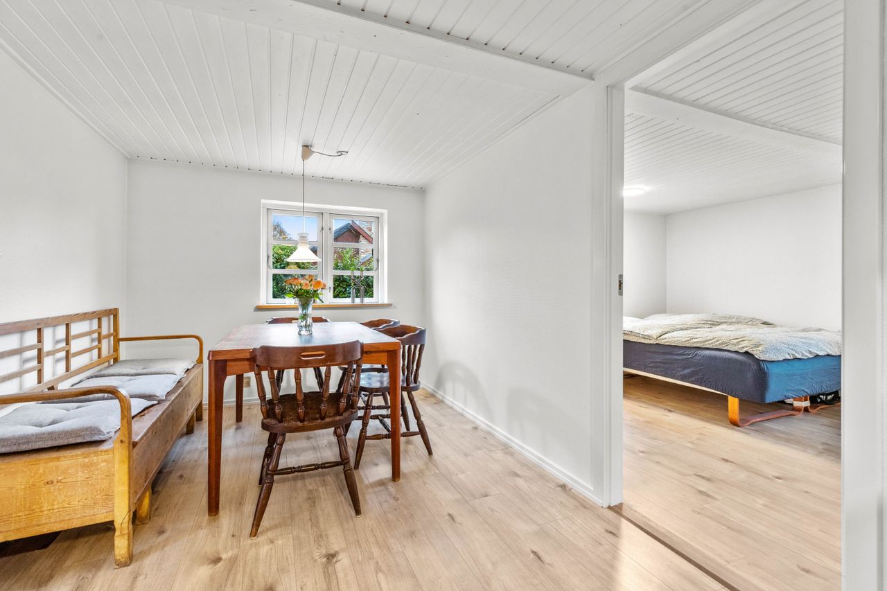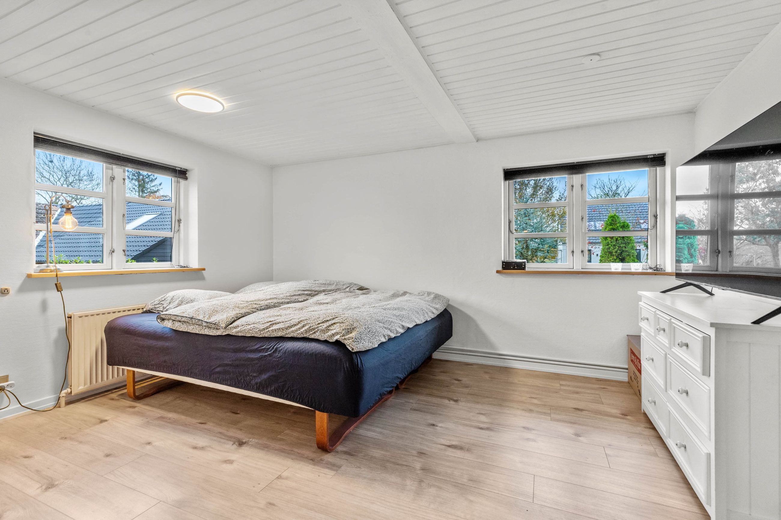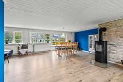 Indenfor finder du muligheden for at indrette fire rummelige værelser, hvilket gør villaen perfekt til både familier eller dem, der ønsker ekstra plads til kontor eller hobbyrum. Det hyggelige køkken har en dejlig spiseplads, hvor morgenkaffen kan nydes i ro og mag. Den store lyse stue er hjemmets hjerte med direkte adgang til en solrig terrasse – det perfekte sted at nyde lange sommeraftener.