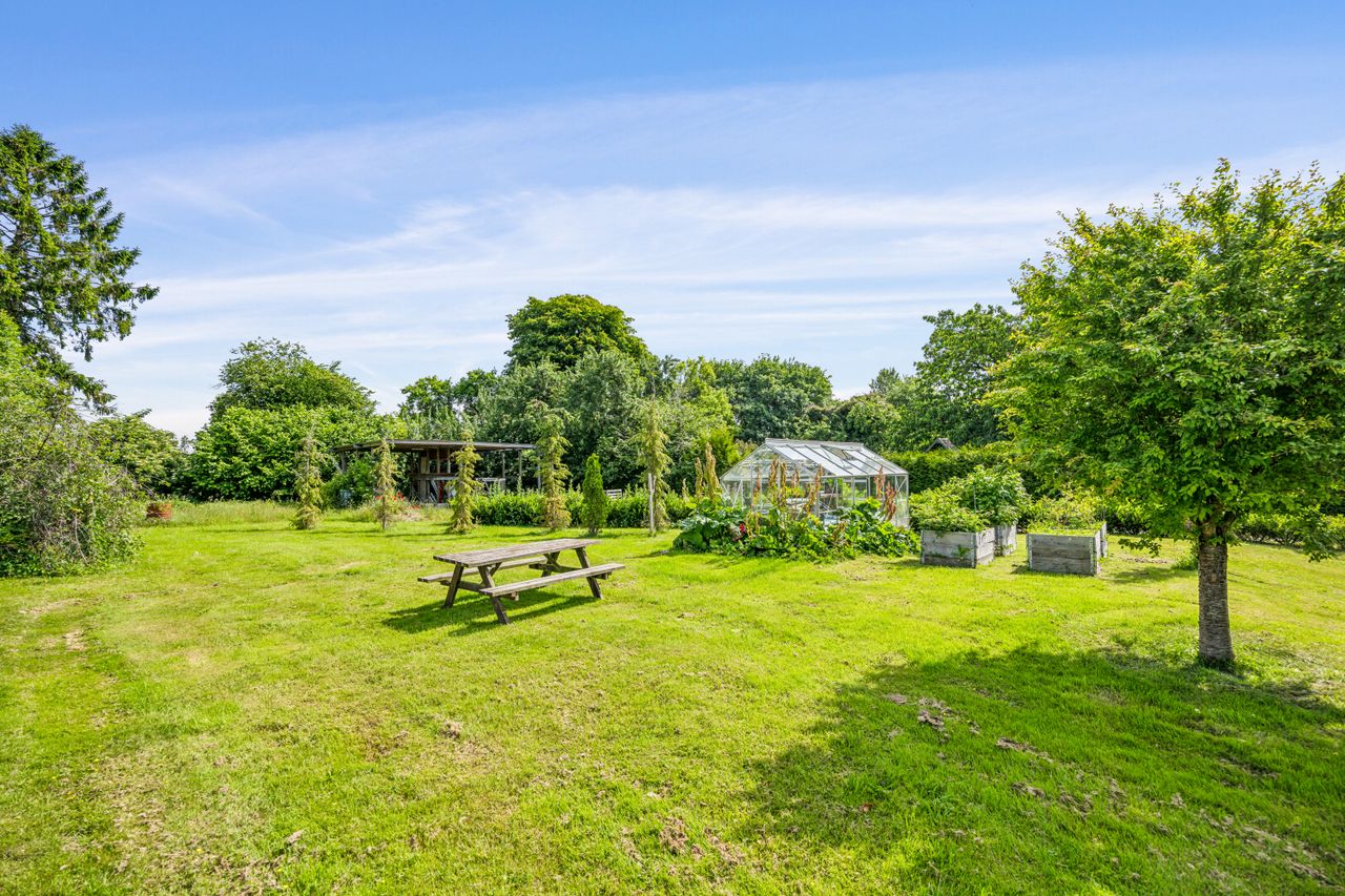 Ejendommen ligger på en stor grund, som åbner op for mange spændende udvidelsesmuligheder. Her kan du lade din kreativitet få frit spil og skabe dit drømmehjem i naturskønne omgivelser. Haven er ideel til både afslapning og leg, og der er rig mulighed for at anlægge smukke blomsterbede eller en køkkenhave.