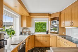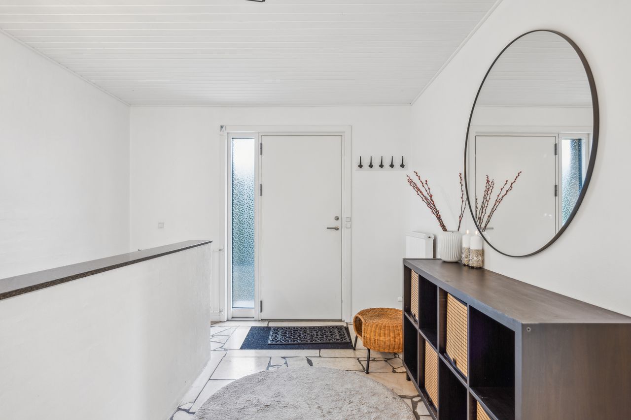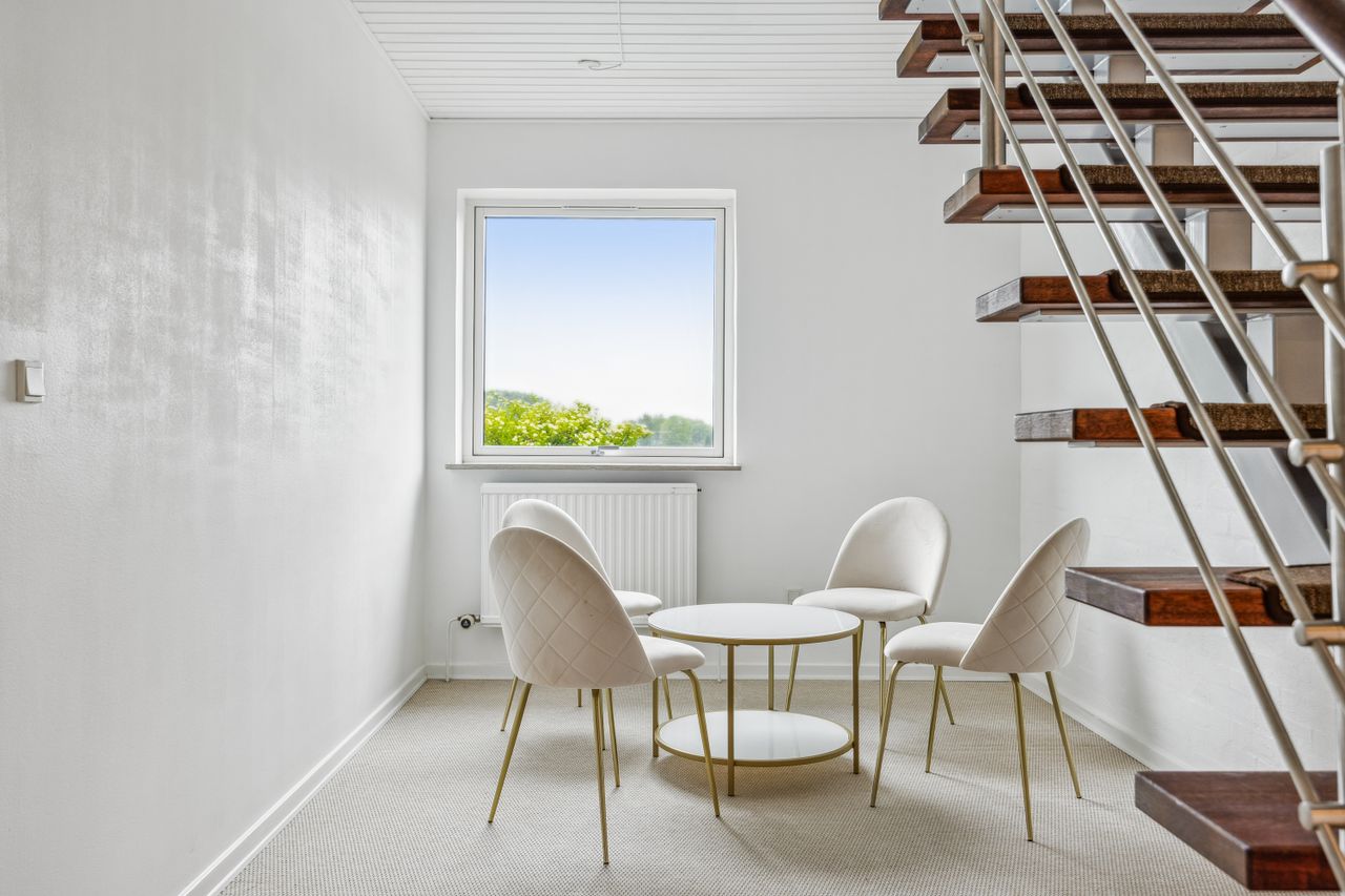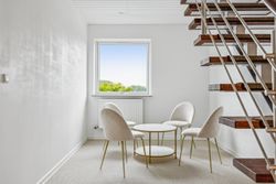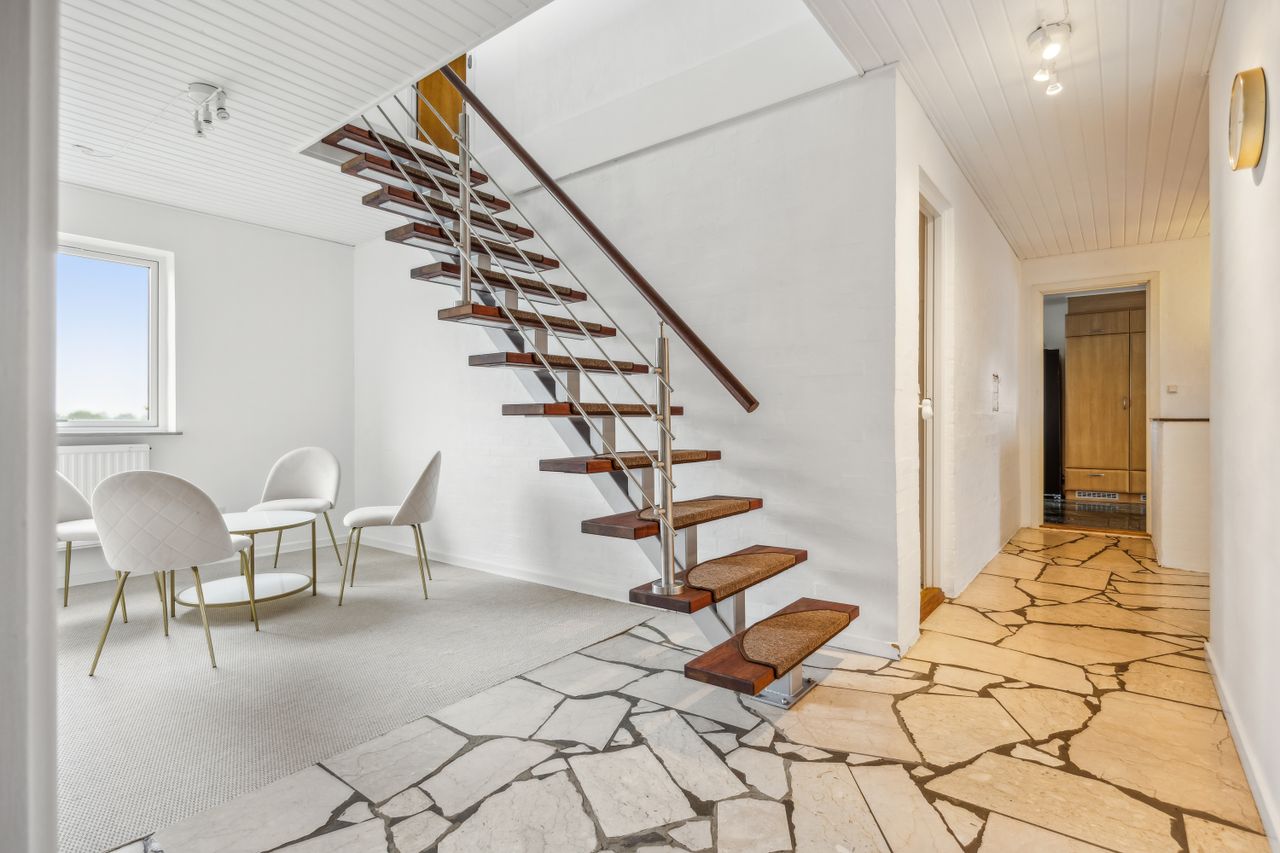 Når du træder ind ad døren, mødes du af en rummelig entré med rigelig plads til overtøj. Herfra ledes du videre til det smukke elementkøkken, der praler med grønlandsk marmor og en hyggelig spiseplads. Fra køkkenet er der direkte udgang til den store terrasse, hvor du kan nyde morgenkaffen mens du beundrer den fantastiske udsigt over Køge.