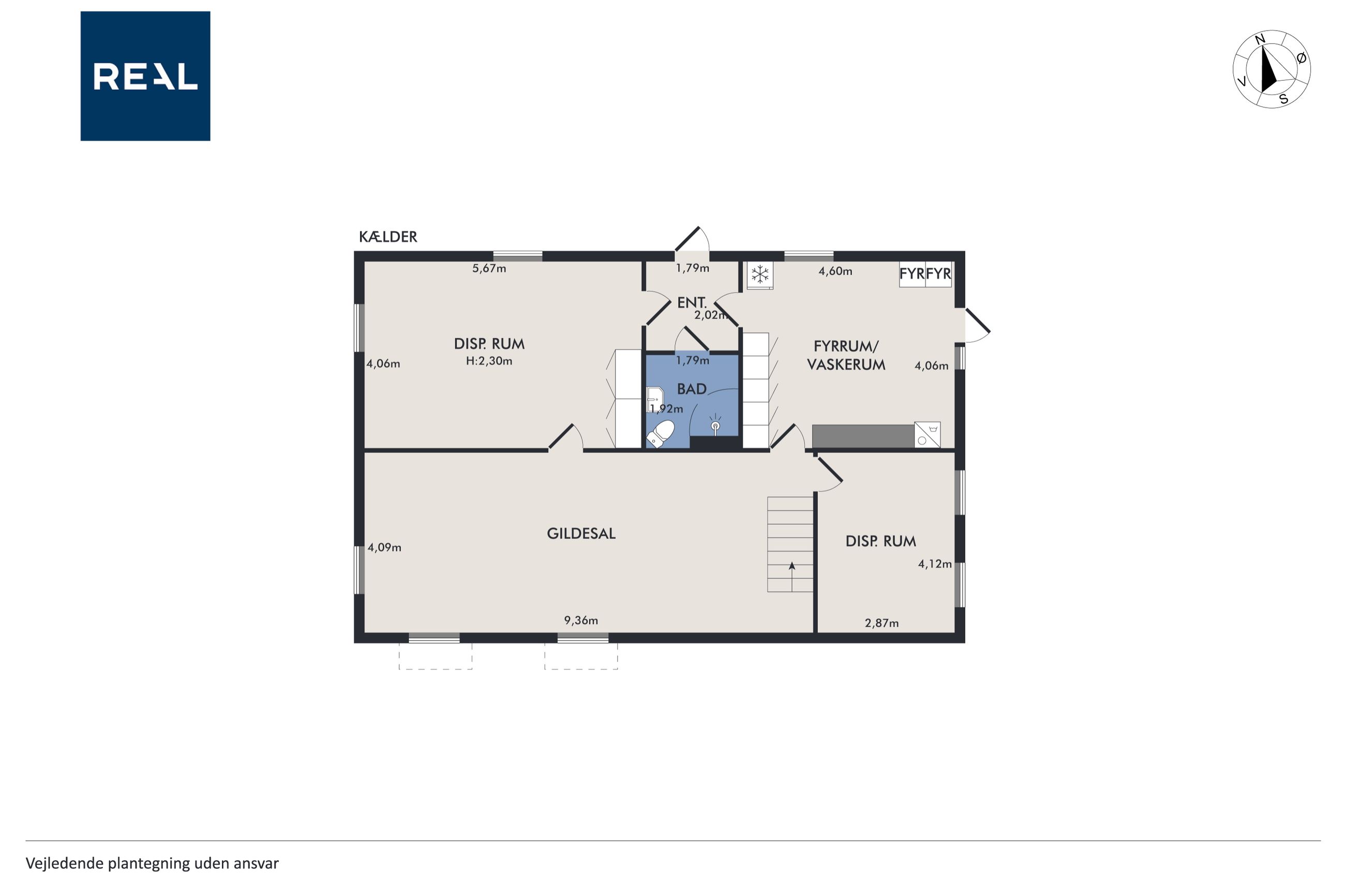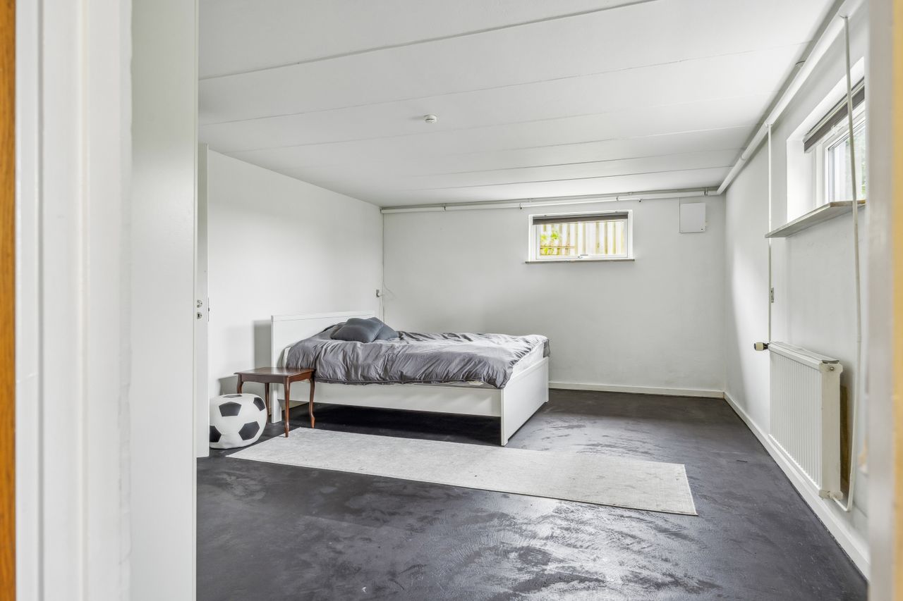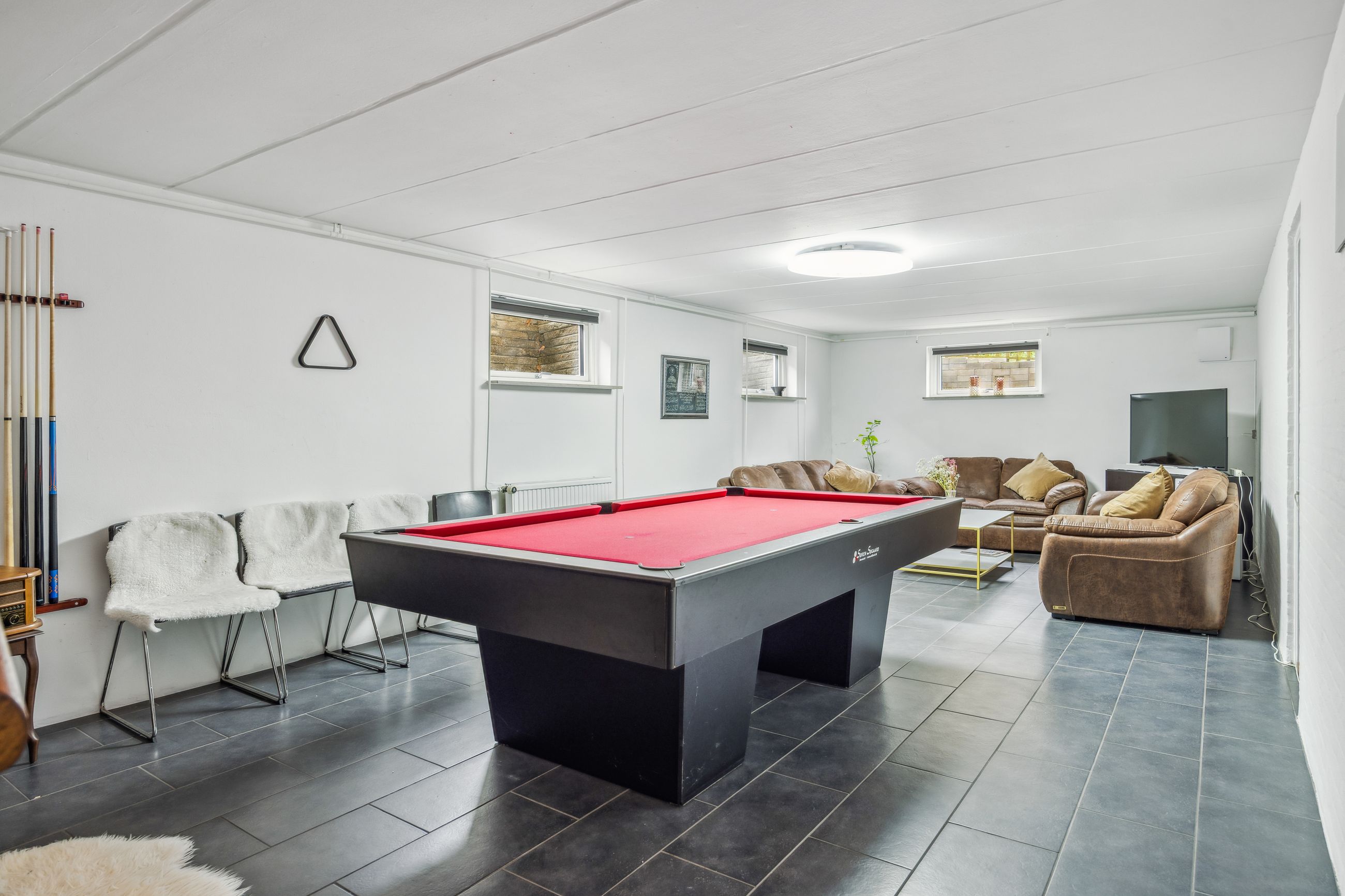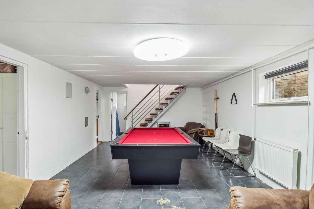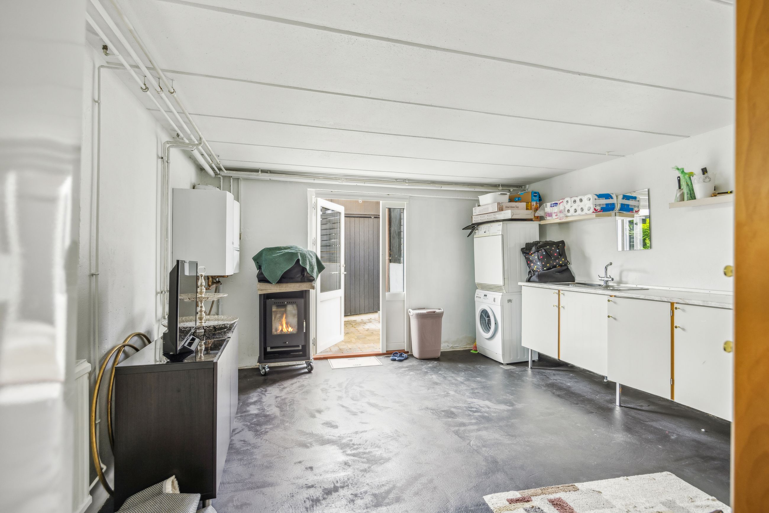 Kælderen er særdeles anvendelig med tre disponible rum, bryggers og endnu et badeværelse. Den høje loftshøjde gør kælderen yderst brugbar til både opbevaring eller som ekstra opholdsrum.