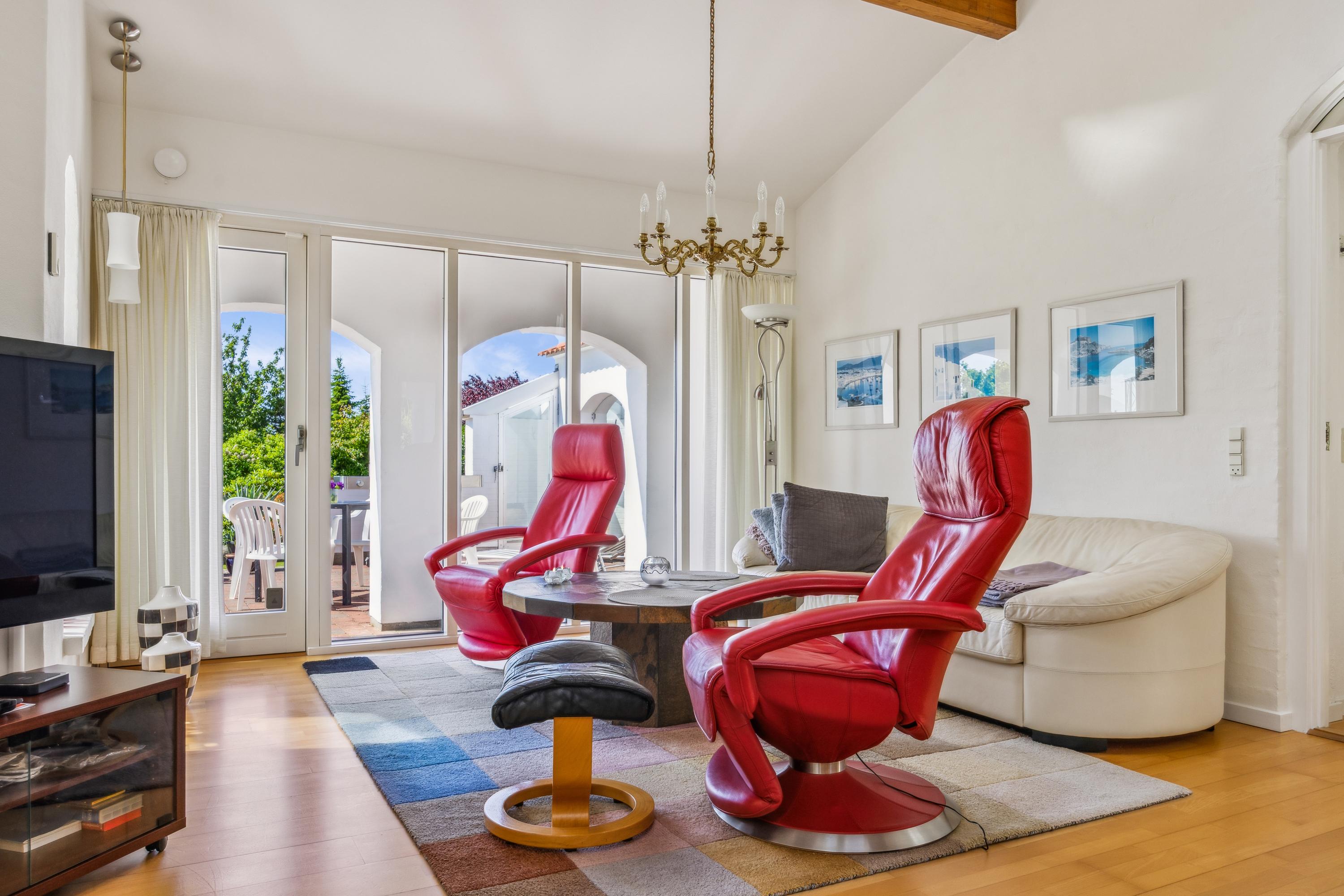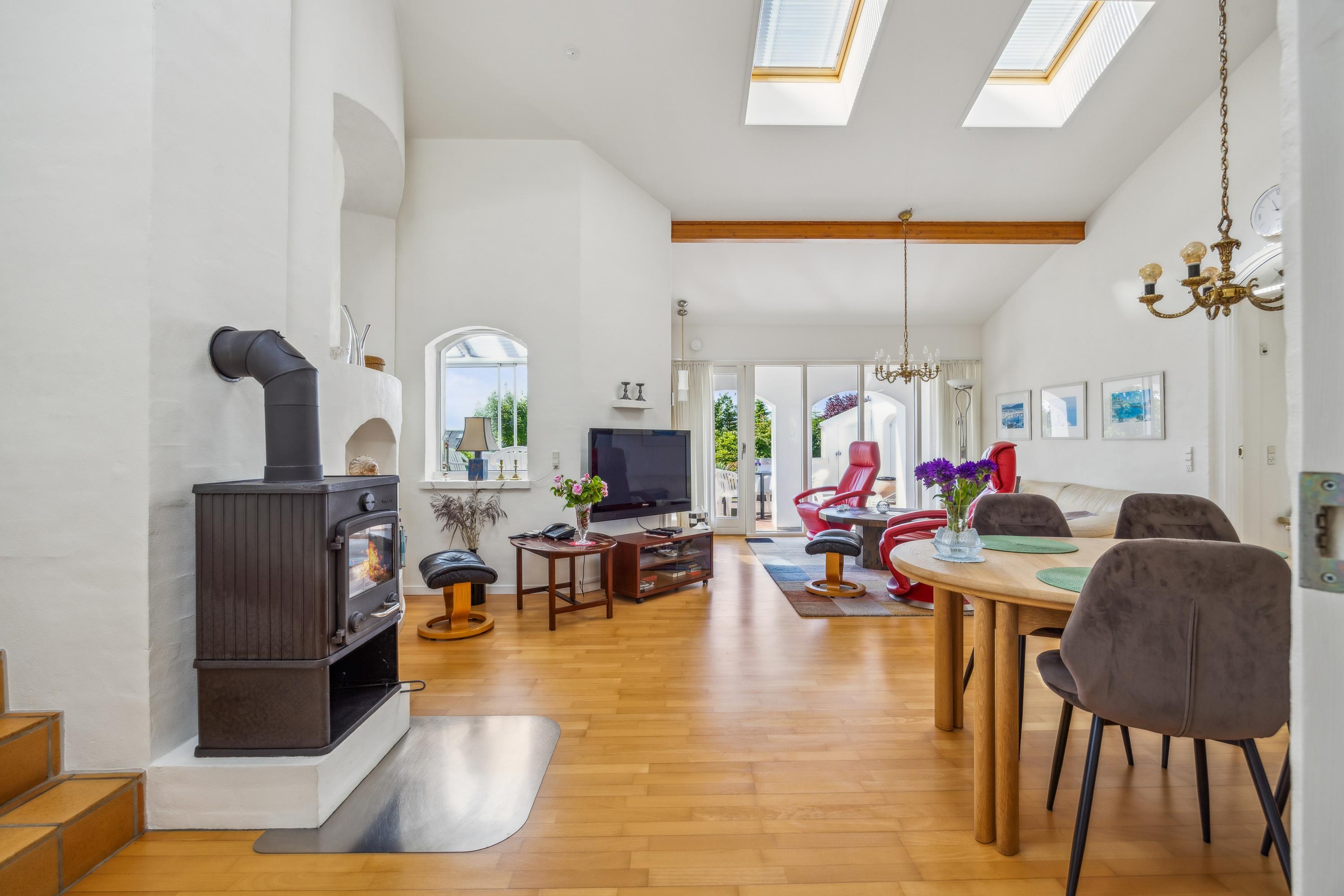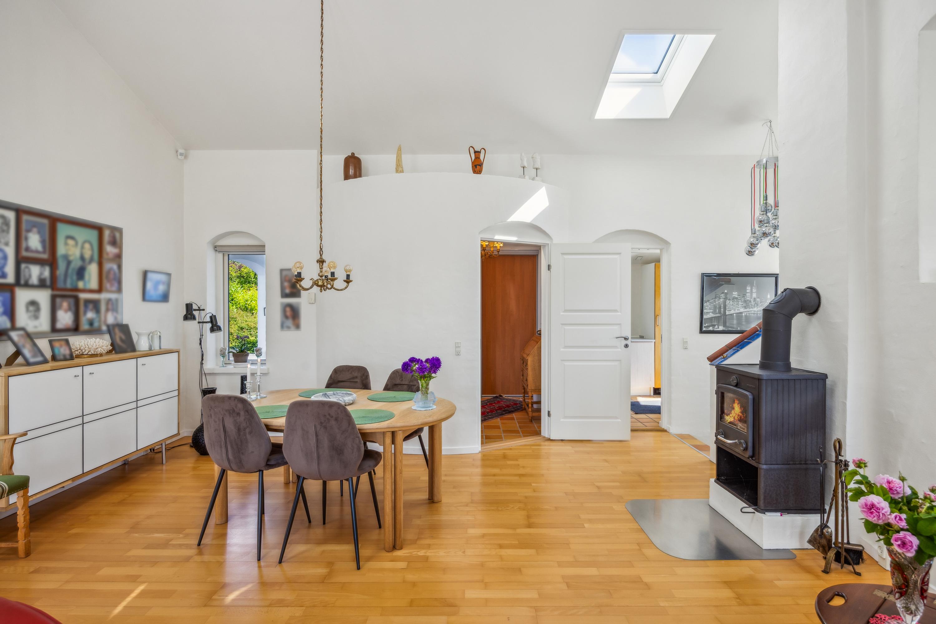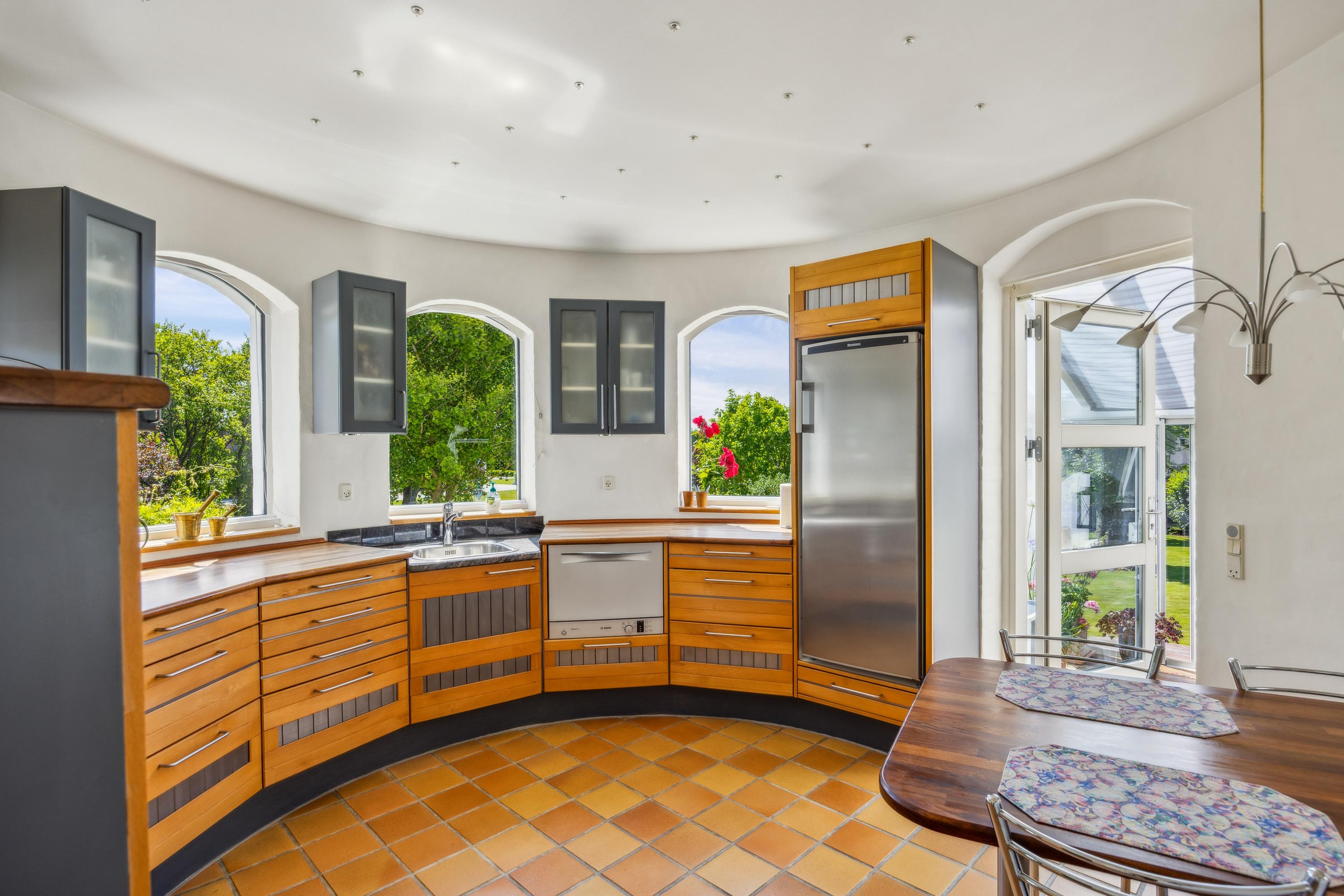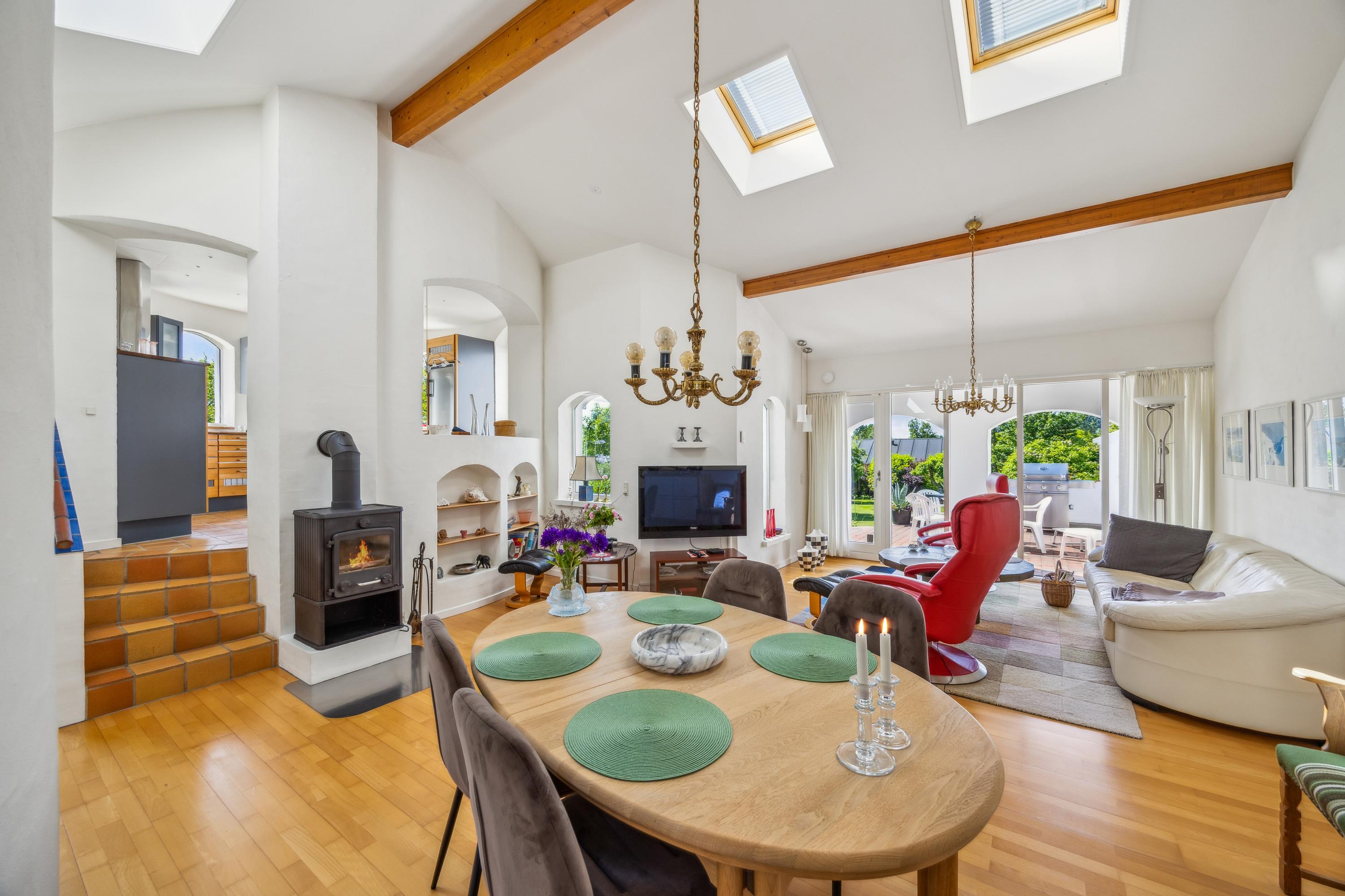 Velkommen til denne enestående ejendom, en sjældent udbudt villa beliggende i et fredeligt kvarter. Denne smukke bolig fra 1995 tilbyder et boligareal på hele 147 kvadratmeter, fordelt over ét plan med forskudte niveauer. Her får du et stort køkken med en betagende udsigt til den pragtfulde have