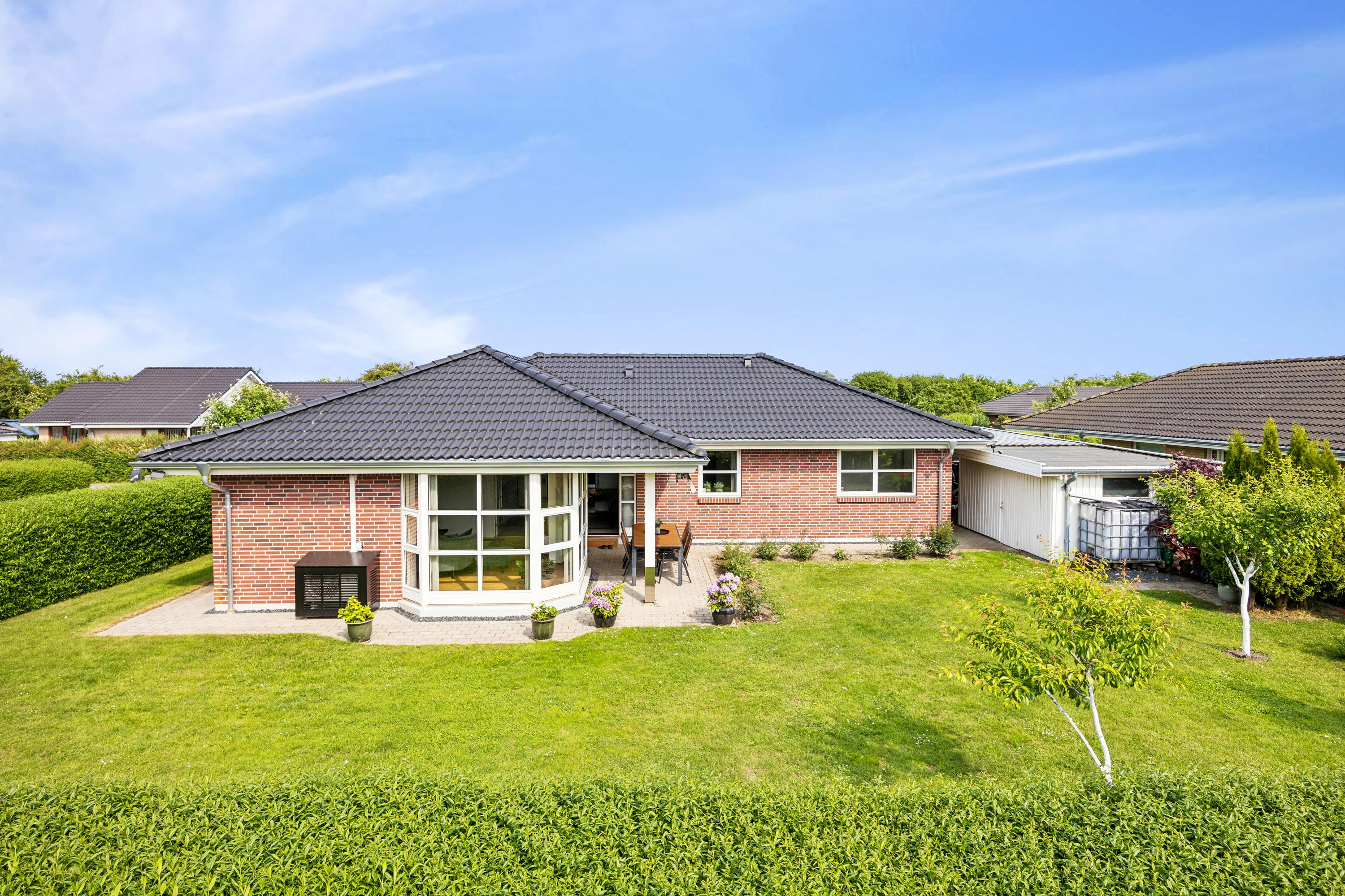 Velkommen til denne særdeles velholdte villa, opført i 2005 og fordelt på ét plan med 143 m2 bolig, der giver masser af plads og en funktionel indretning. Med energimærke A2010 er boligen både økonomisk og miljøvenlig i drift. Planløsningen er gennemtænkt med et stort køkken-alrum som det naturlige