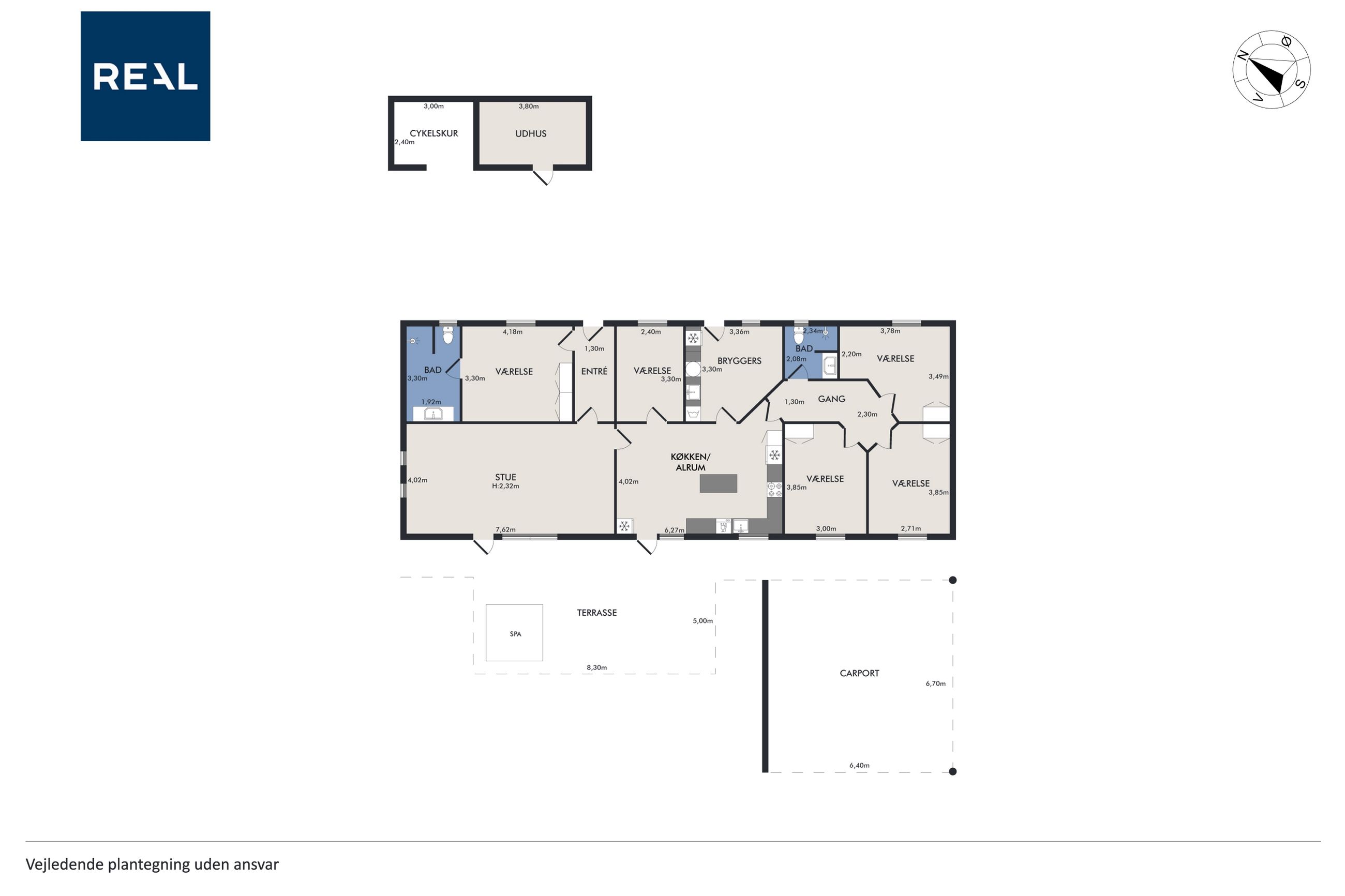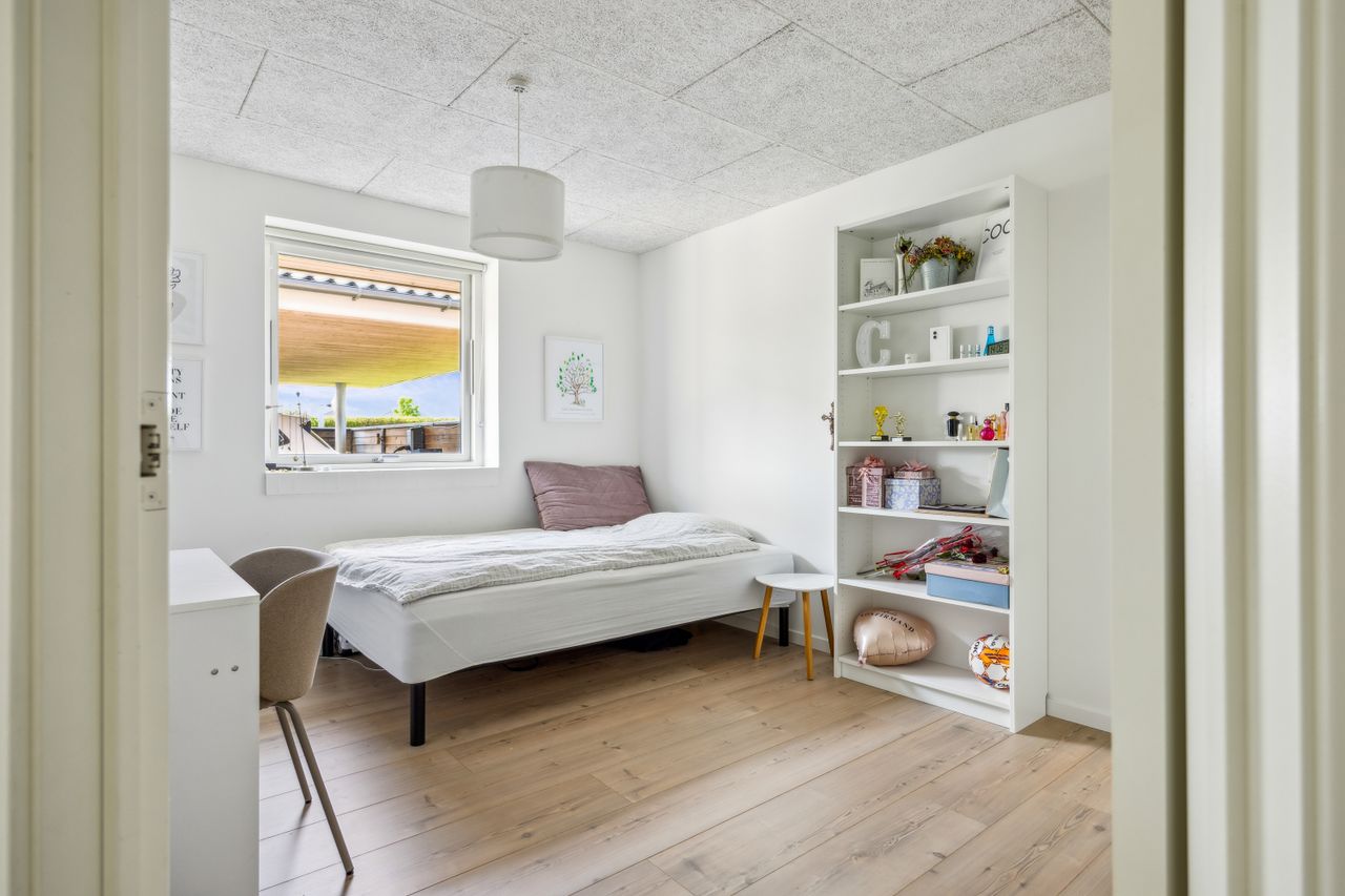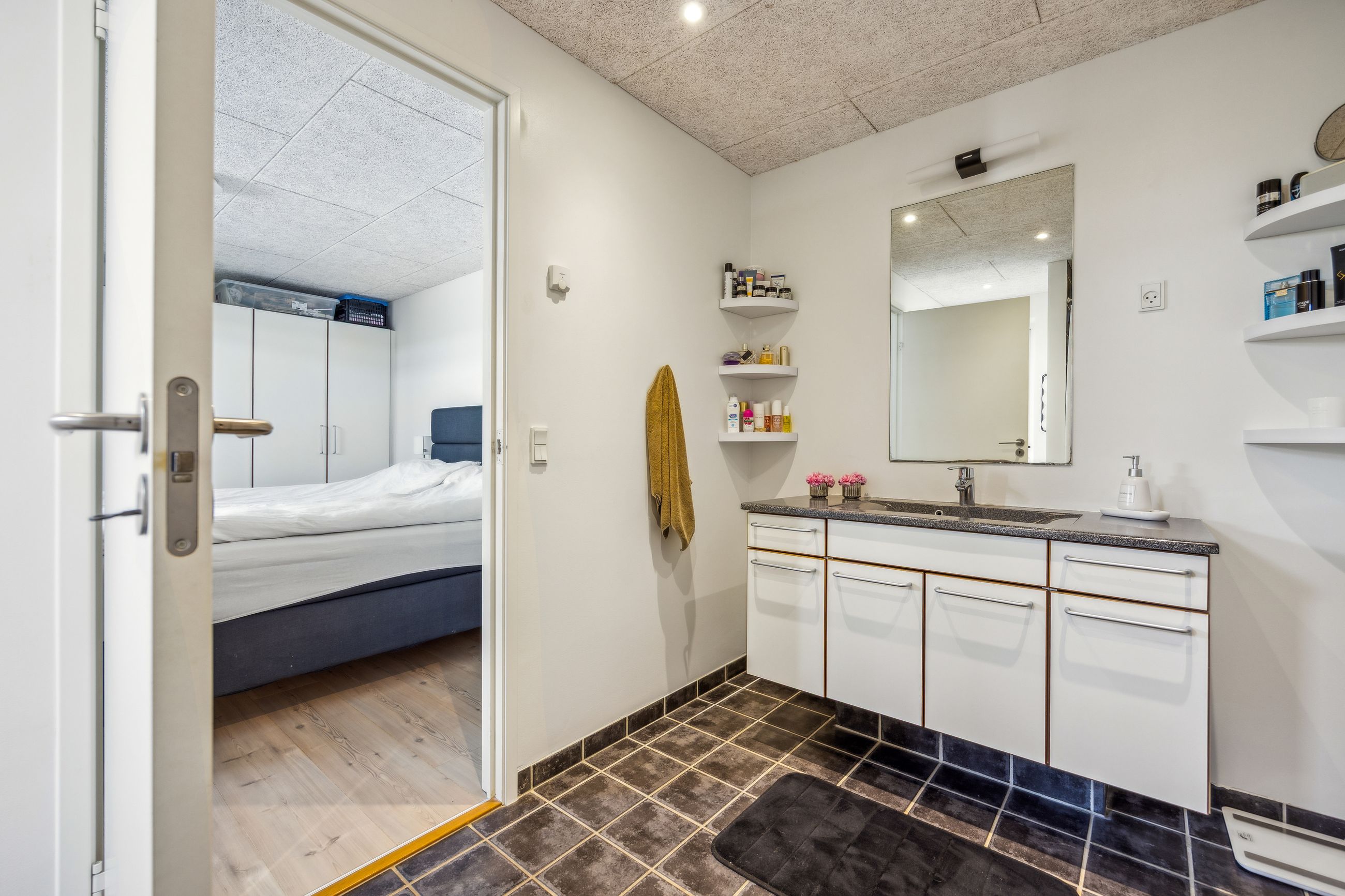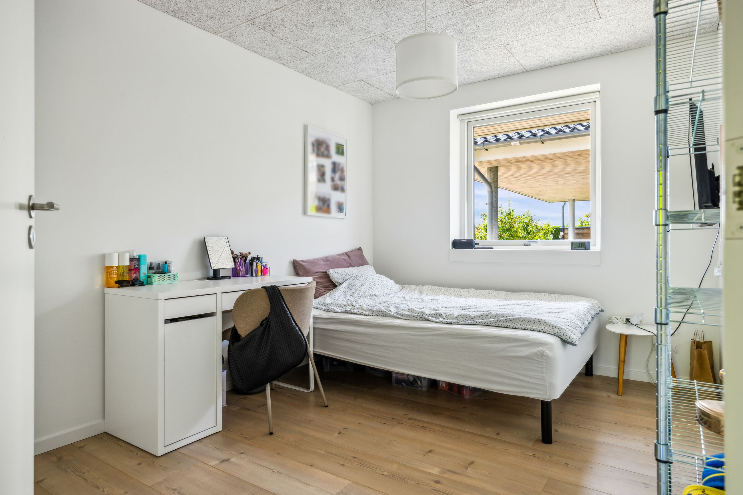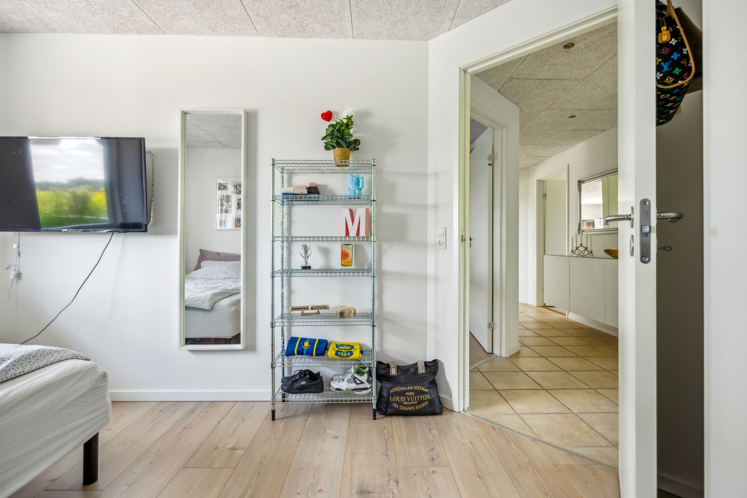 Boligen rummer fem store værelser, soveværelset har sit eget badeværelse for ekstra komfort. De tre andre værelser ligger adskilt fra soveværelset i husets modsatte ende og kan nemt anvendes som børneafdeling eller gæsteværelser. Et stort bryggers tilbyder praktisk opbevaringsplads samt vaskefaciliteter.