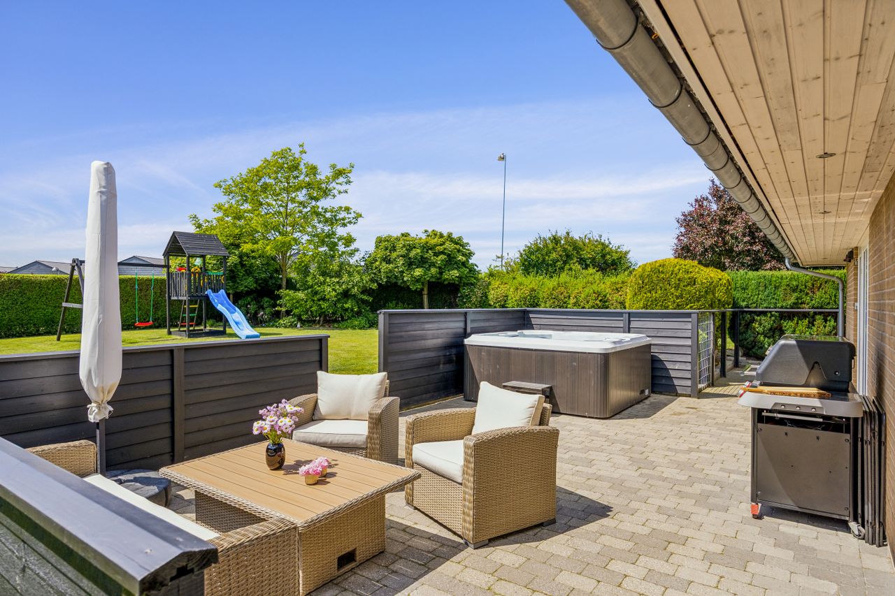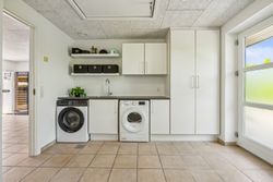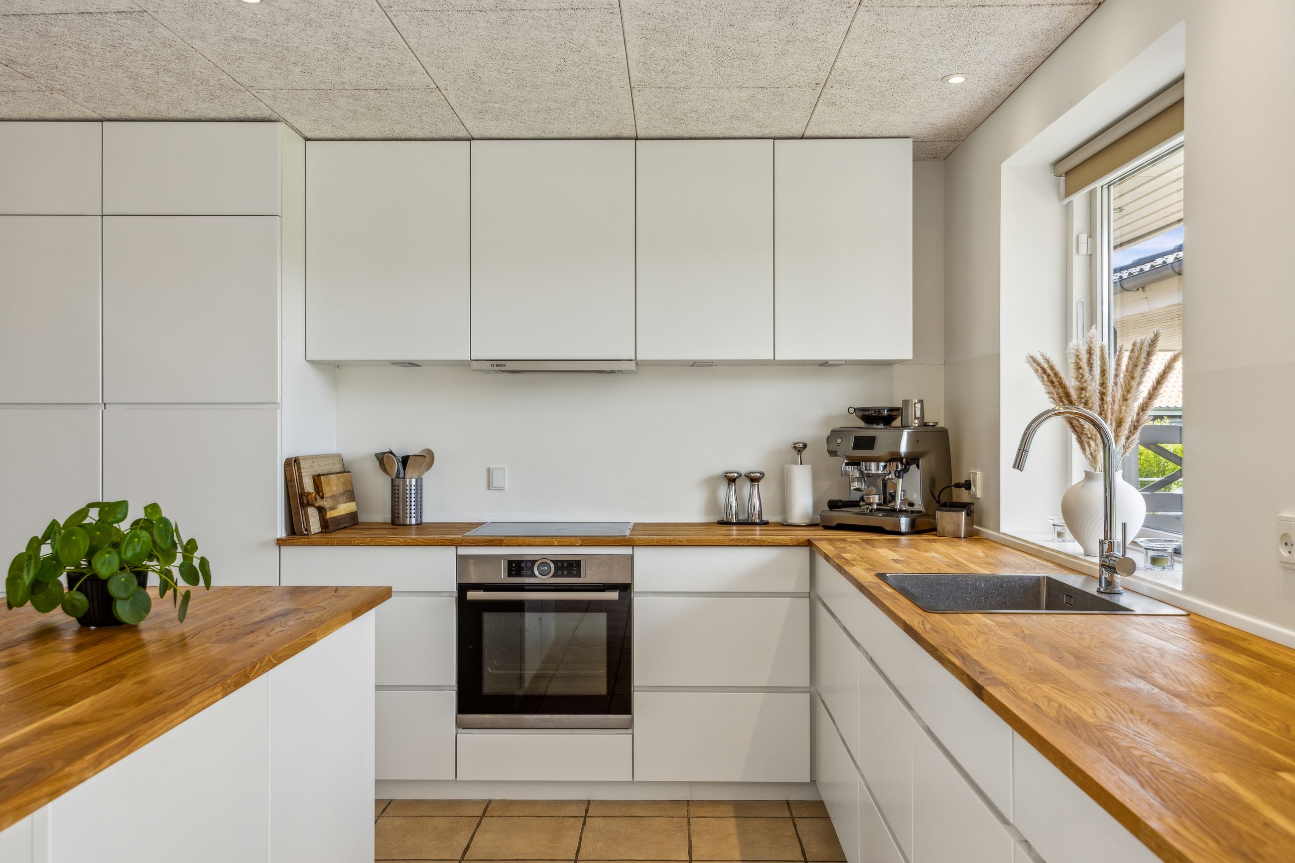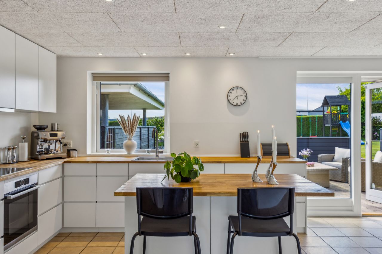 Hjertet af hjemmet er det store køkken-alrum, hvor du kan nyde et nyere køkken med alle tænkelige faciliteter. Herfra har du direkte adgang til en dejlig terrasse, perfekt til hyggelige stunder med familie og venner. Den lyse stue åbner op mod endnu en solterrasse, hvor du kan slappe af og nyde udsigten over den sydvestvendte have.