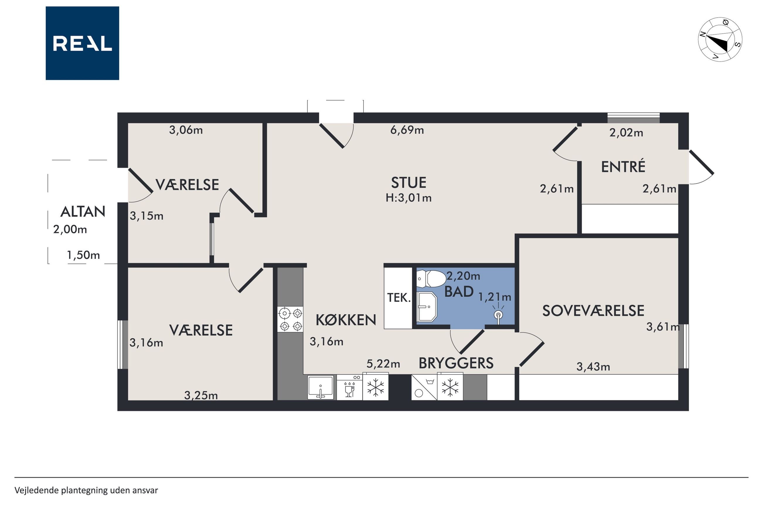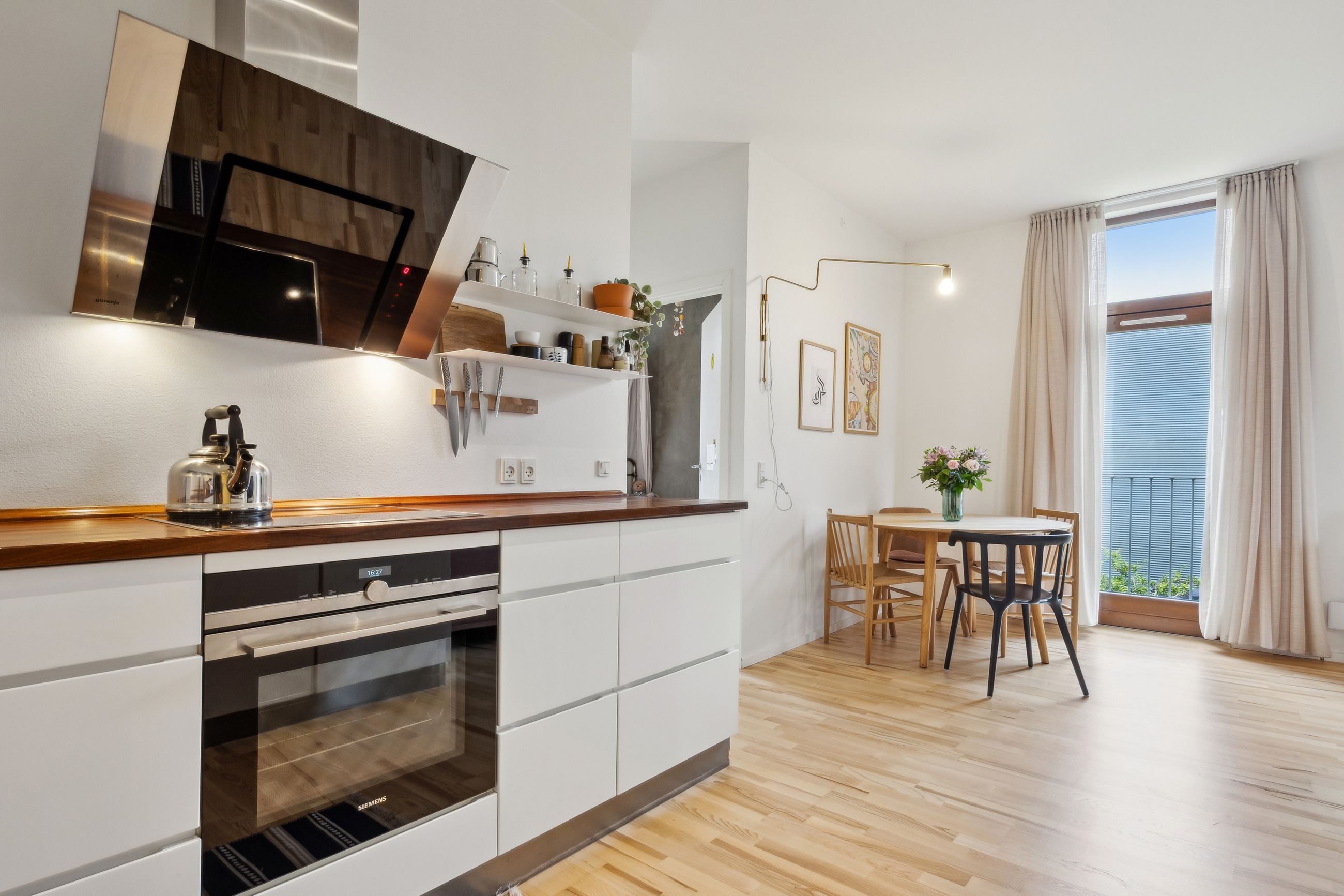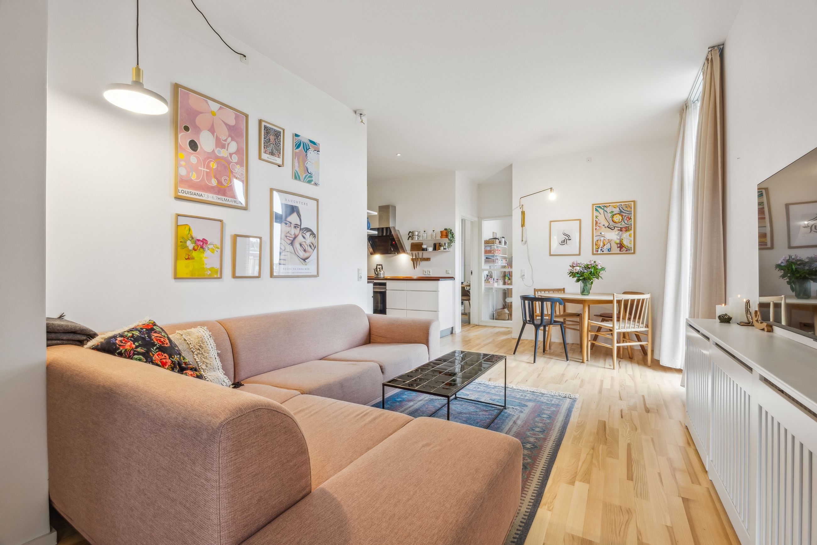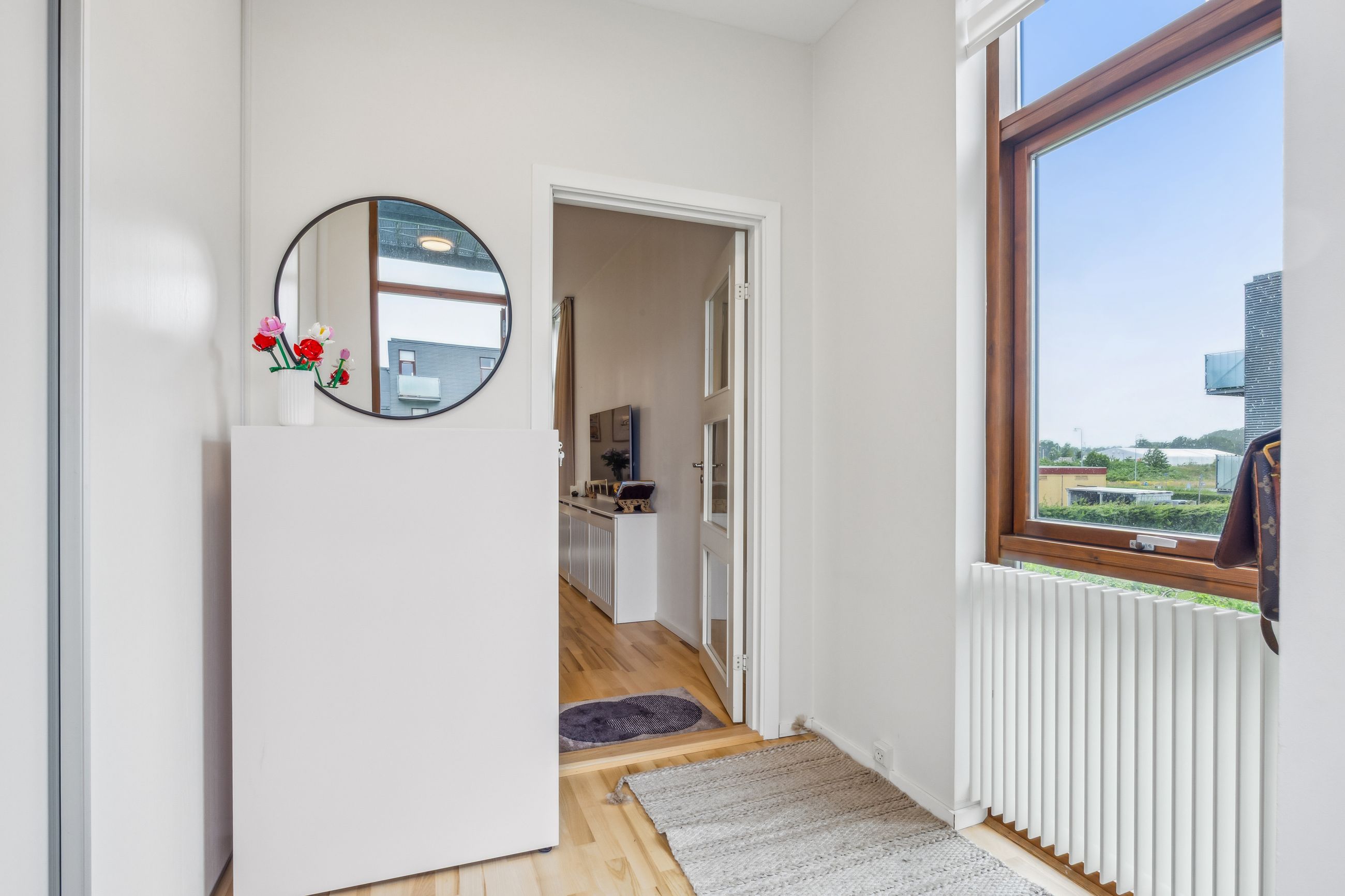 Når du træder ind i lejligheden, mødes du af en rummelig entré med rigelig plads til både sko og overtøj. Herfra åbner boligen sig op mod et stort køkkenalrum, der fungerer som hjemmets hjerte. Med spiseplads og sofahjørne er dette rum ideelt til både hverdagens måltider og hyggelige stunder med familie og venner. De tre gode værelser giver masser af muligheder for at indrette soveværelse, børneværelse eller hjemmekontor alt efter behov. Et af værelserne har endda adgang til en vestvendt altan, hvor du kan nyde aftensolen.