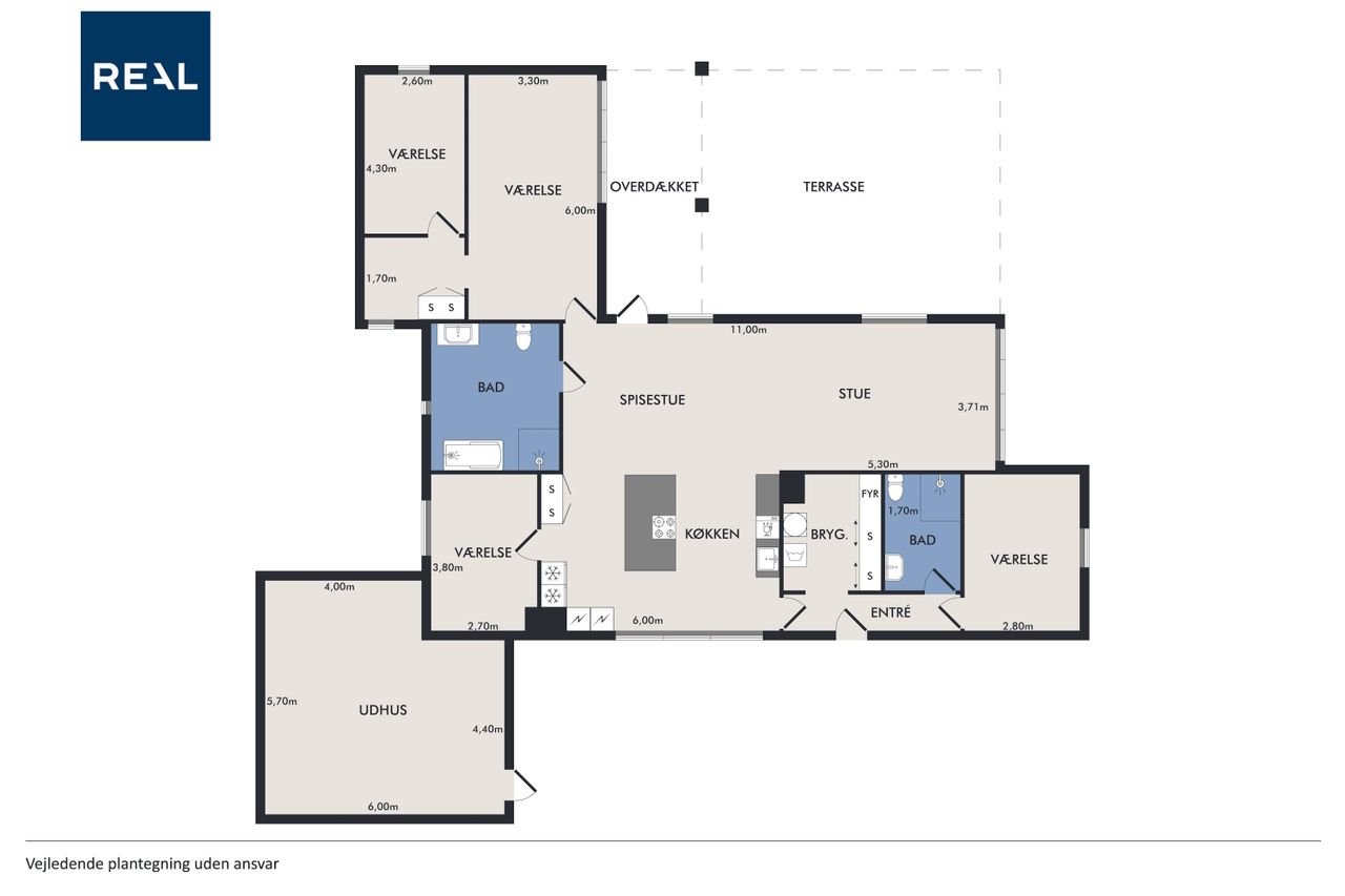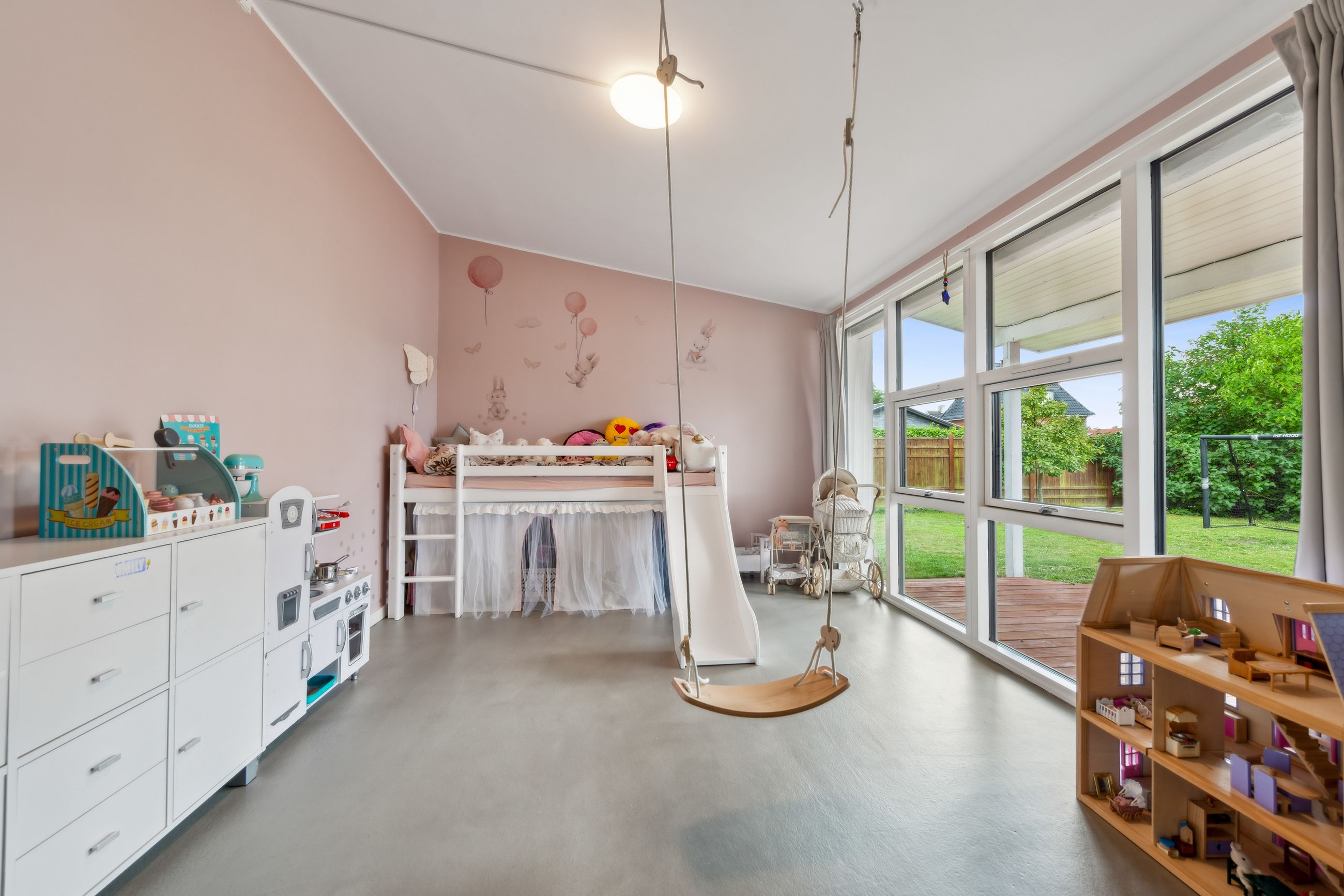 Planløsningen er optimal for familielivet og indeholder fire gode værelser. Det rummelige soveværelse har eget badeværelse og toilet, som skaber en privat voksenafdeling, mens boligens andet badeværelse giver god plads til resten af husstanden eller gæster.