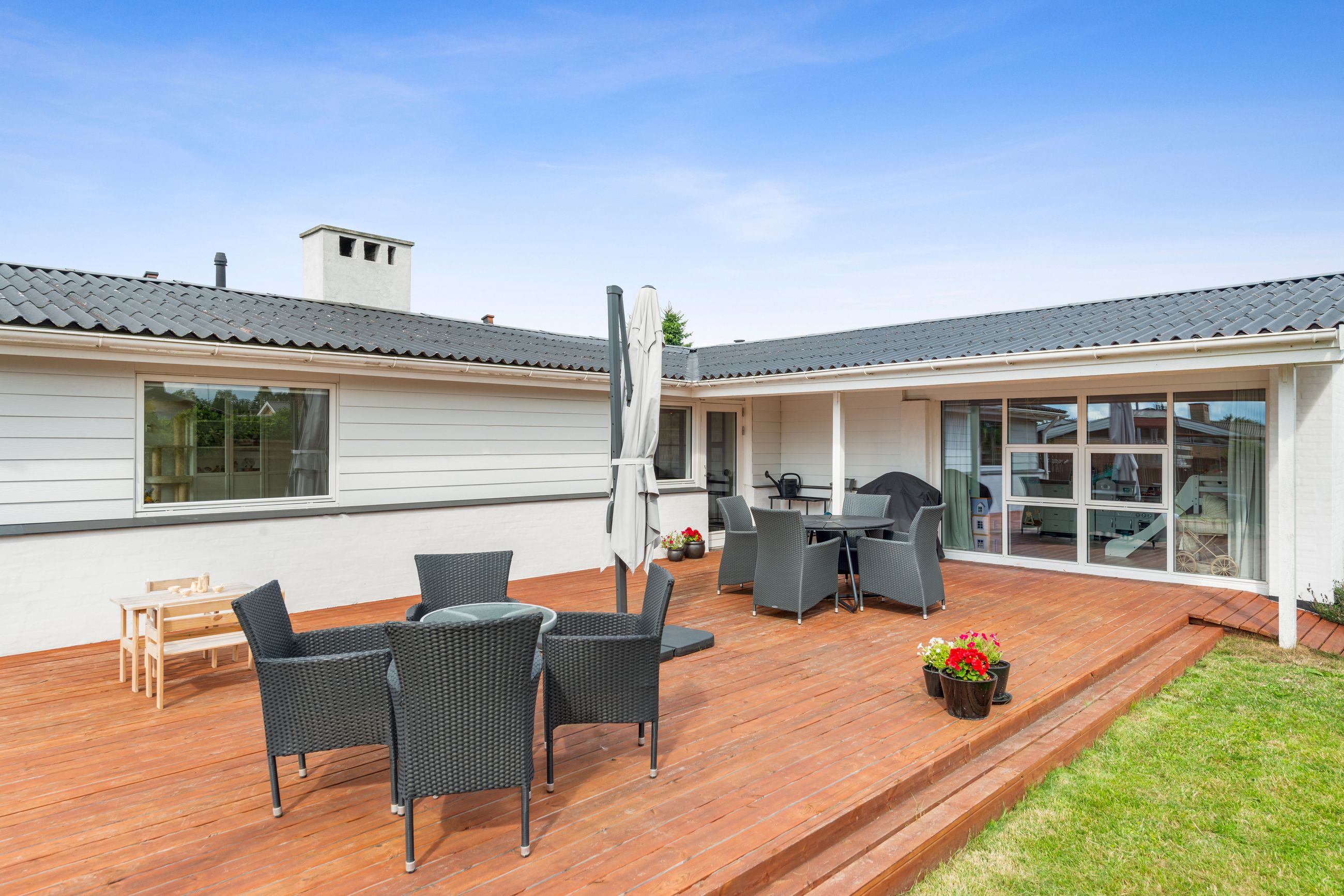 Køkken, køkken alrum og opholdsstue er smukt forbundet i ét stort og lyst rum, hvor samvær og funktionalitet går hånd i hånd. Herfra er der direkte udgang til en stor sydvestvendt træterrasse – et skønt ude område, hvor solen kan nydes det meste af dagen, og som giver perfekte rammer for både afslapning og sociale stunder.