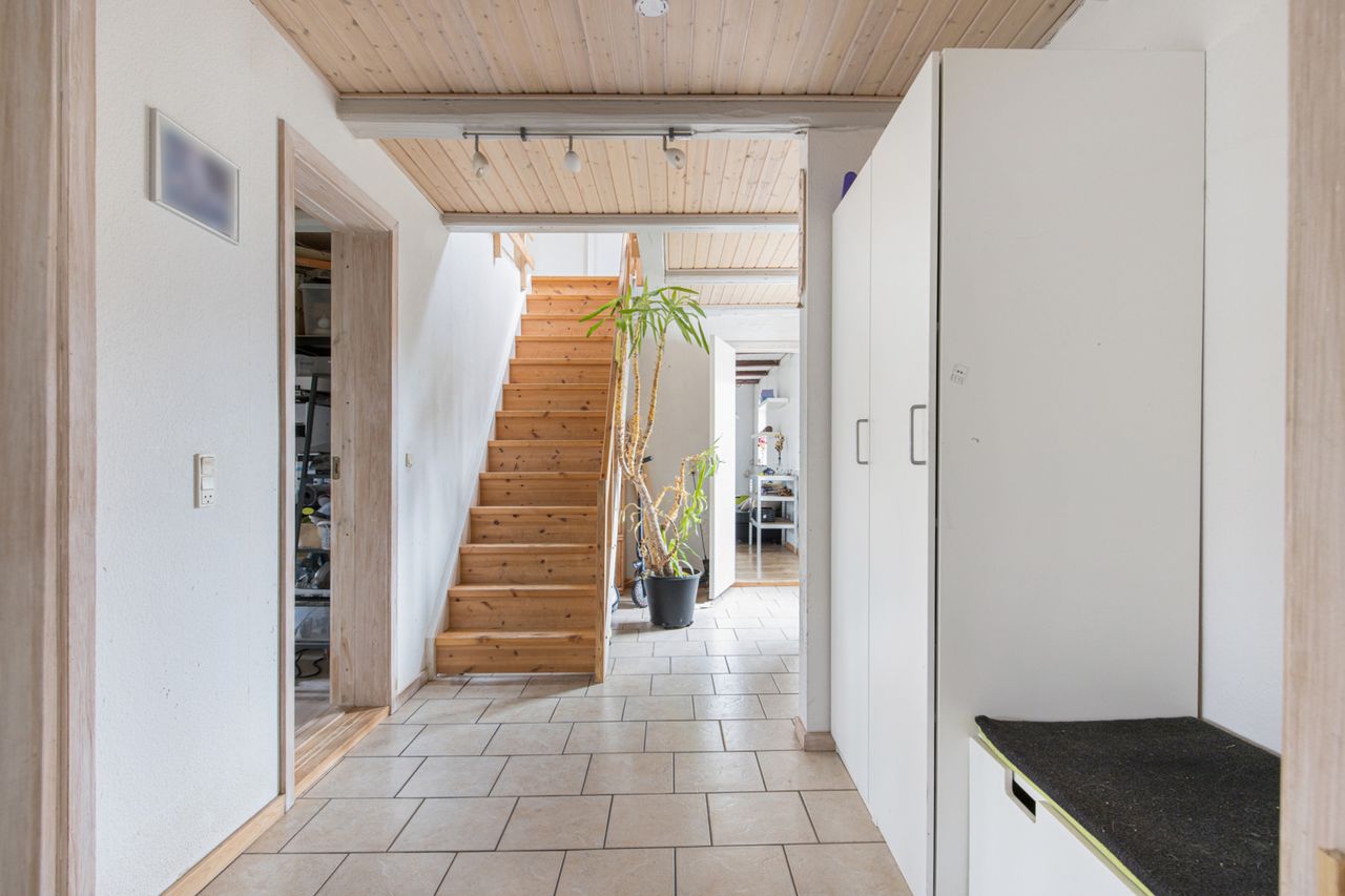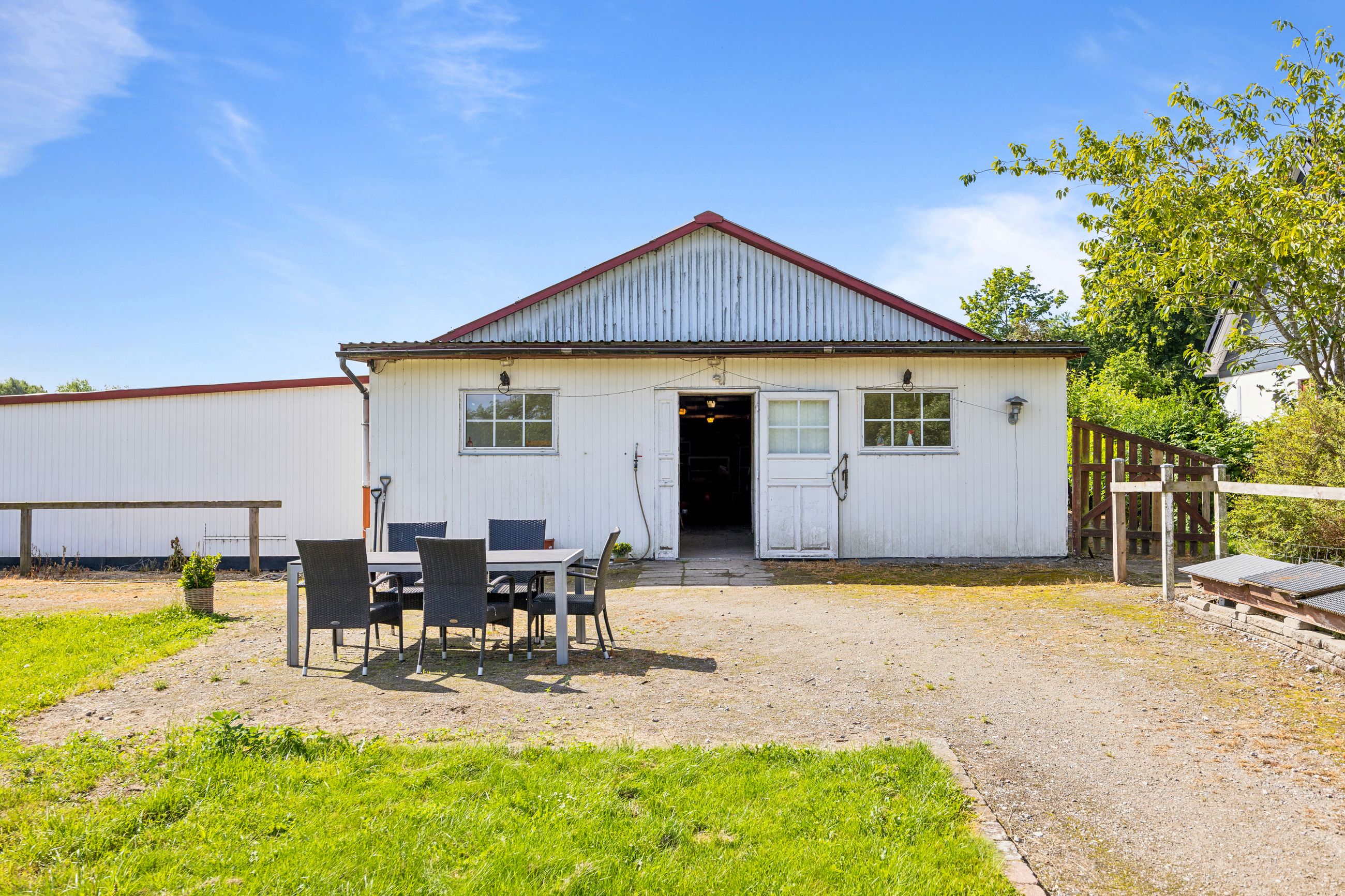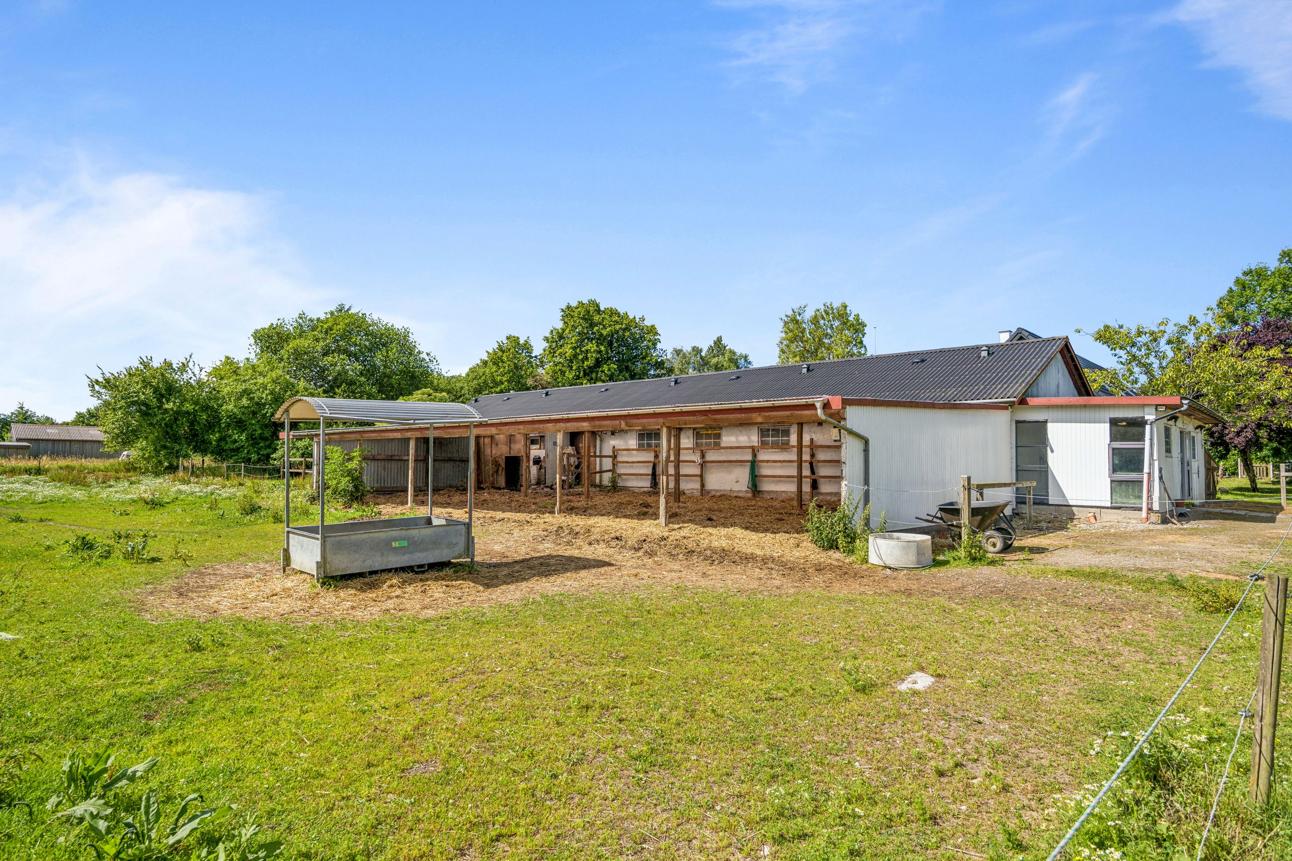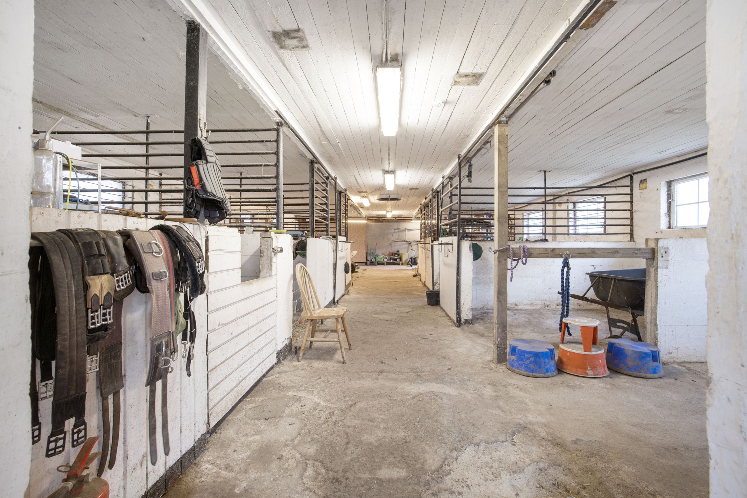 er sat i stand hvor der nemt kan etableres flere værelser. I den ene ende af hestestalden