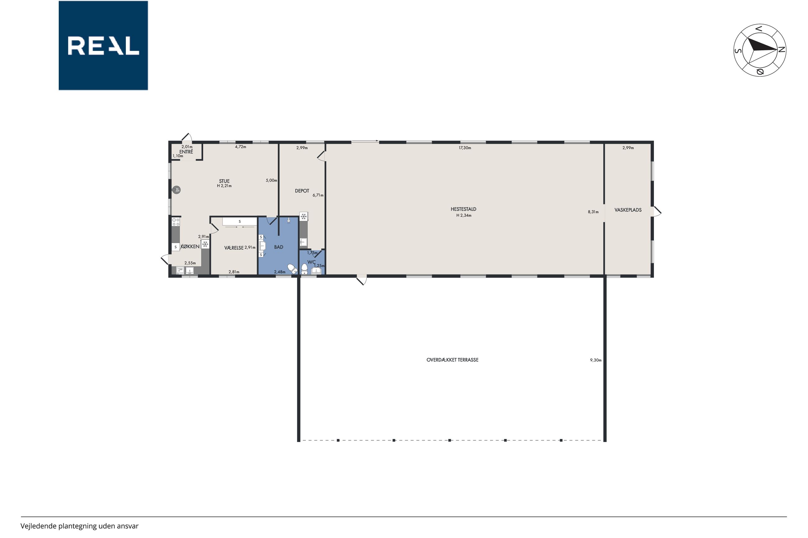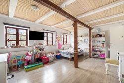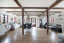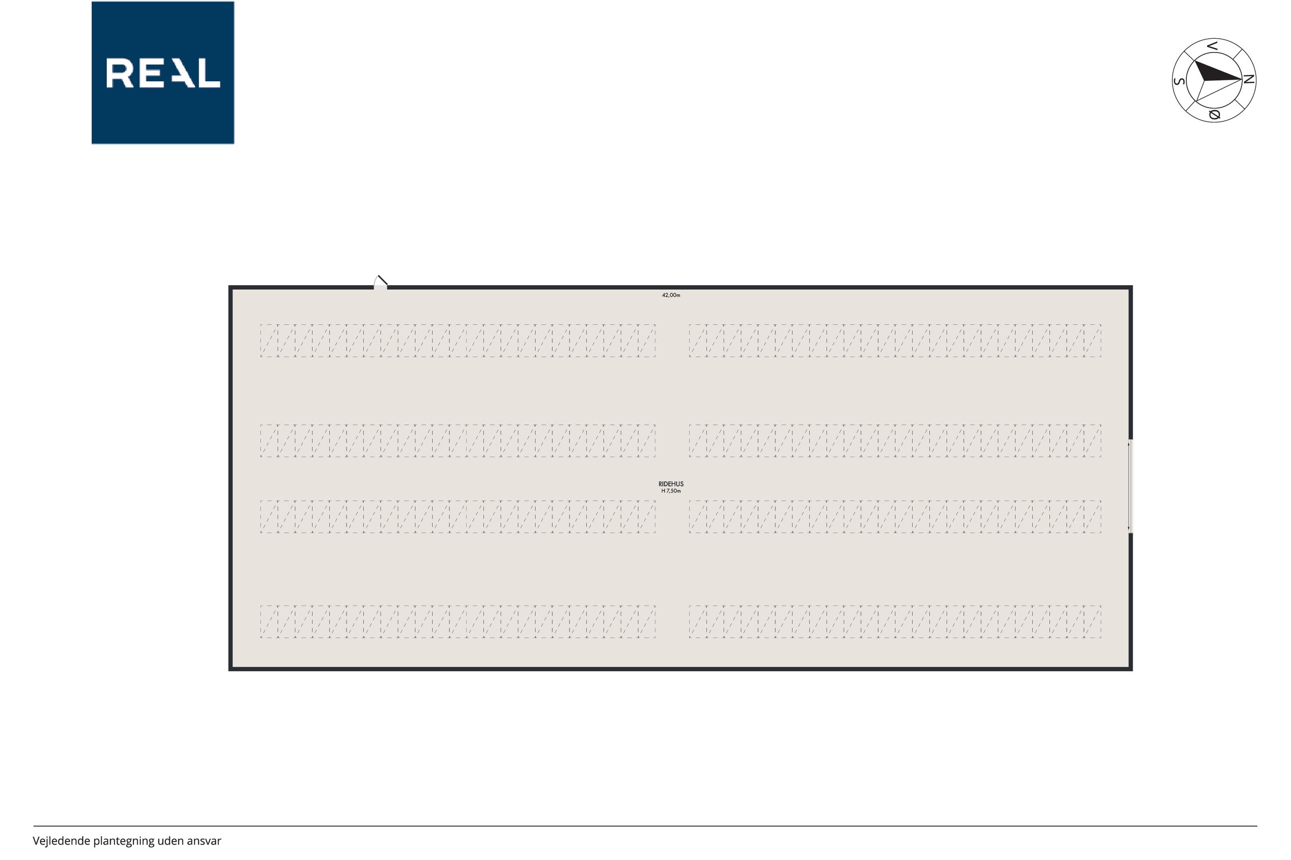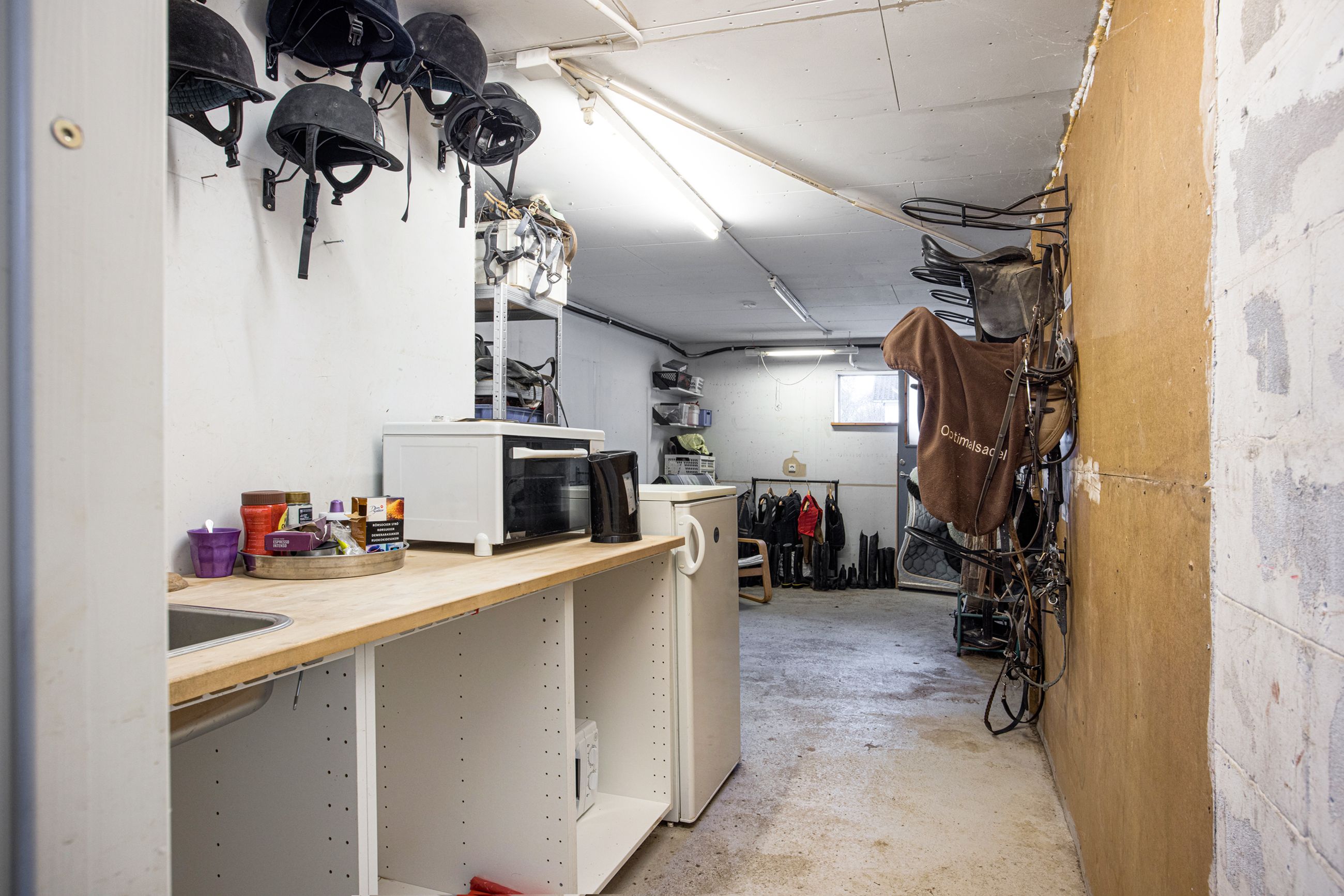 er sat i stand hvor der nemt kan etableres flere værelser. I den ene ende af hestestalden