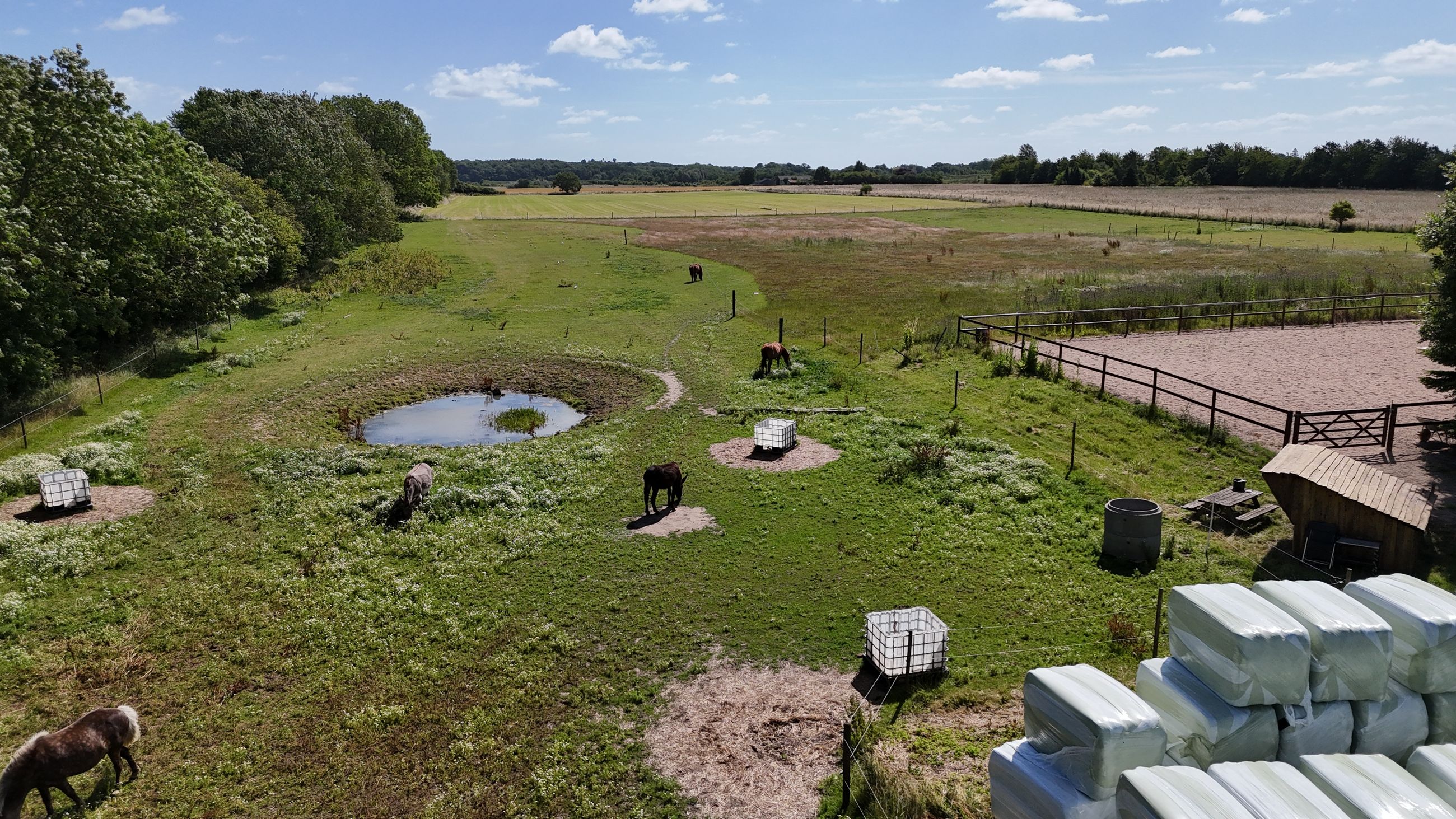 nyanlagt ridebane 2023 med dræn og belysning, og hvis I og hestene trænger til frisk luft, er
