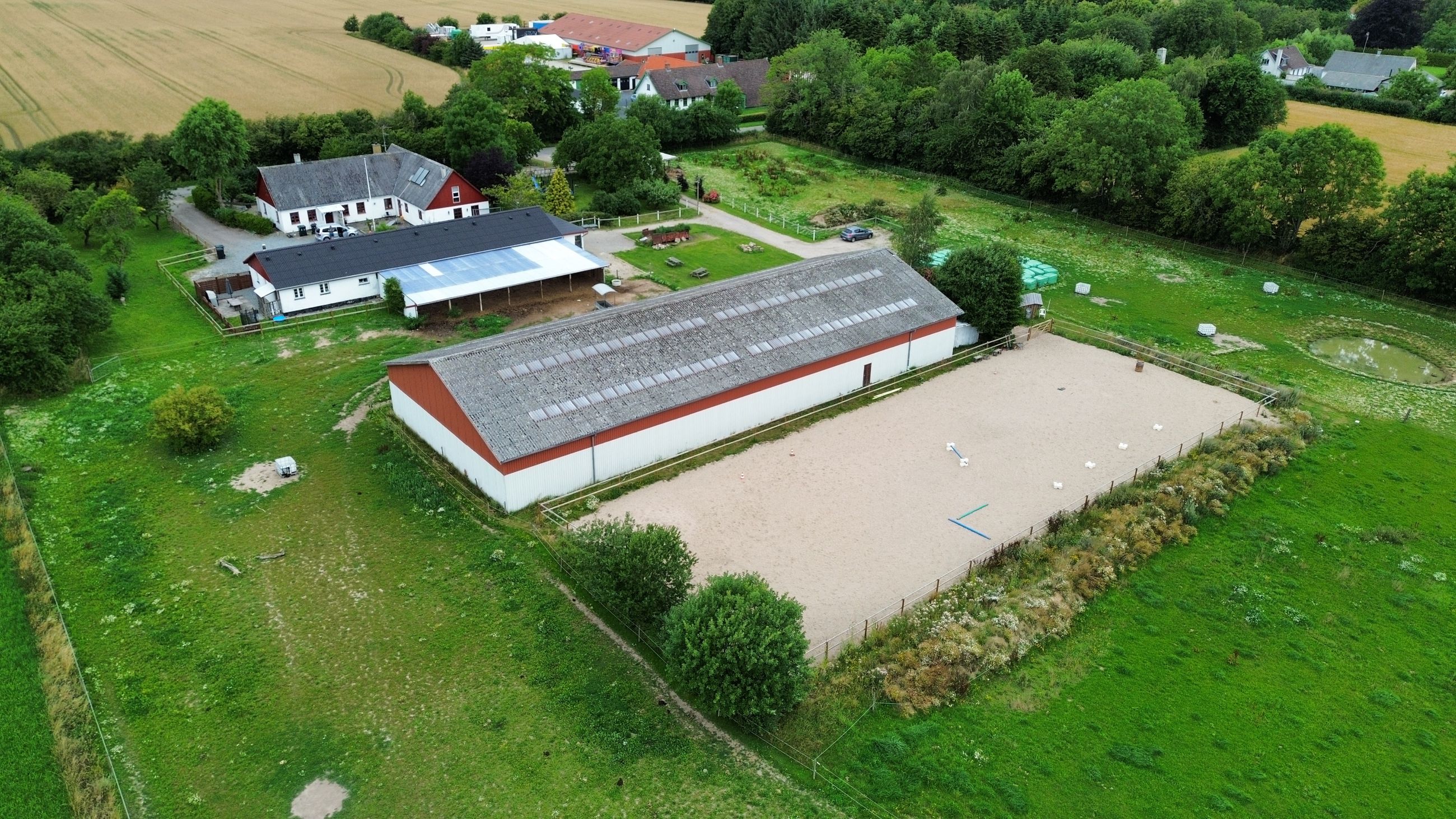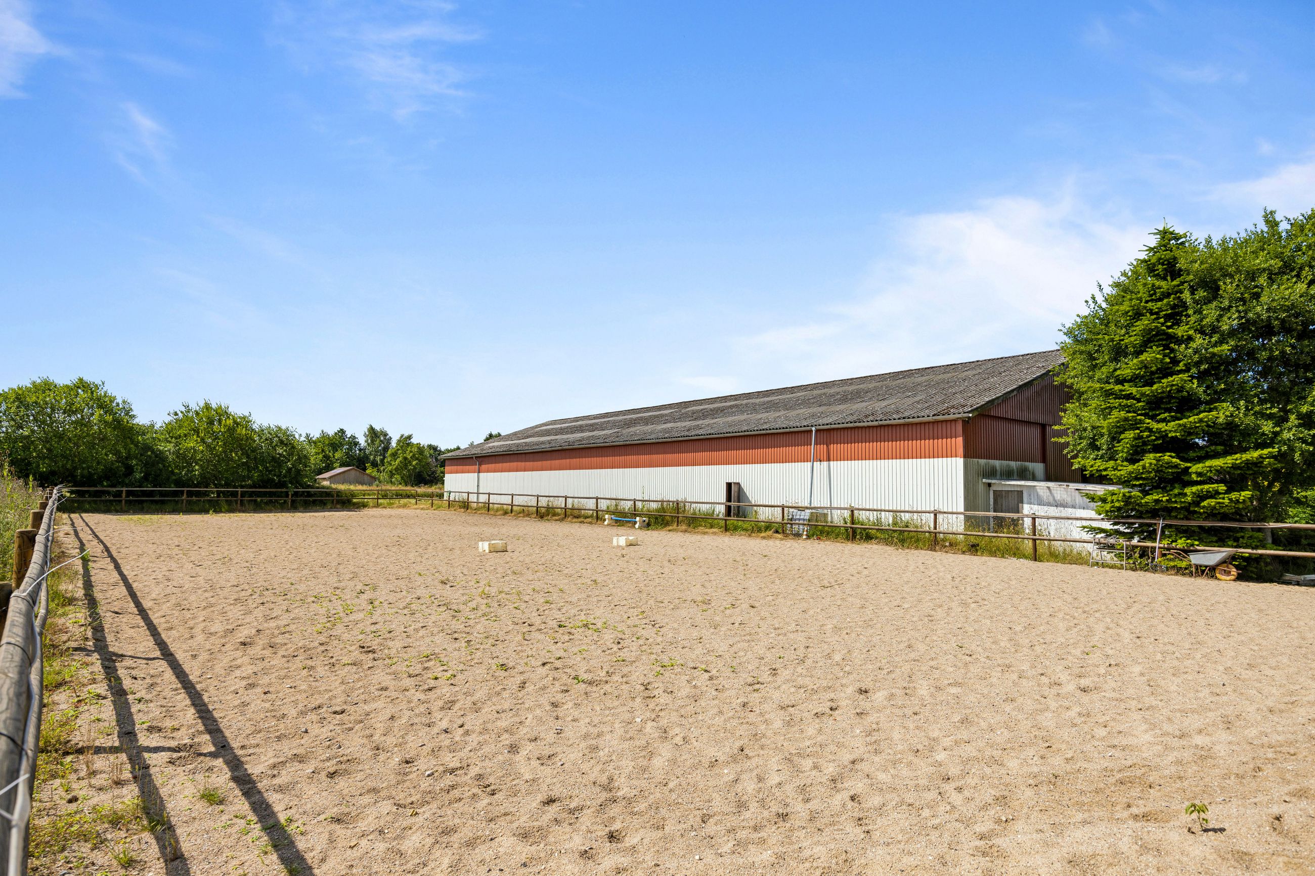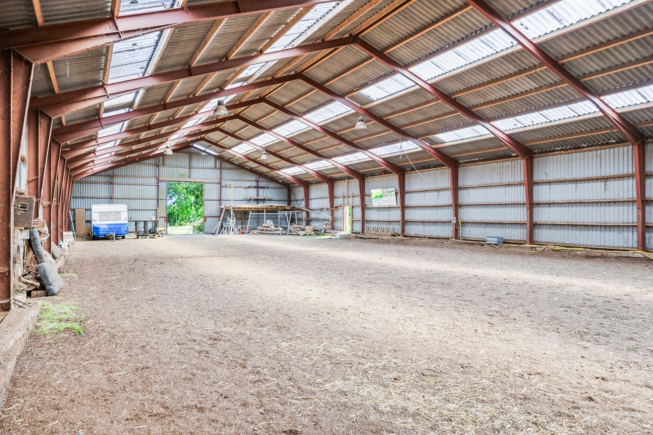 hestestald med flere bokse. Hestene får også fri leg i den store ridehal hvor der også er