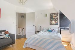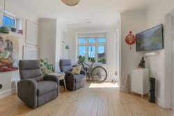 På første sal finder du tre gode soveværelser med god loftshøjde og masser af plads til opbevaring. Her er også endnu et toilet, hvilket gør hverdagen nemmere for hele familien. Værelserne er perfekte som børneværelser, gæsteværelse eller hjemmekontor alt efter dine behov.