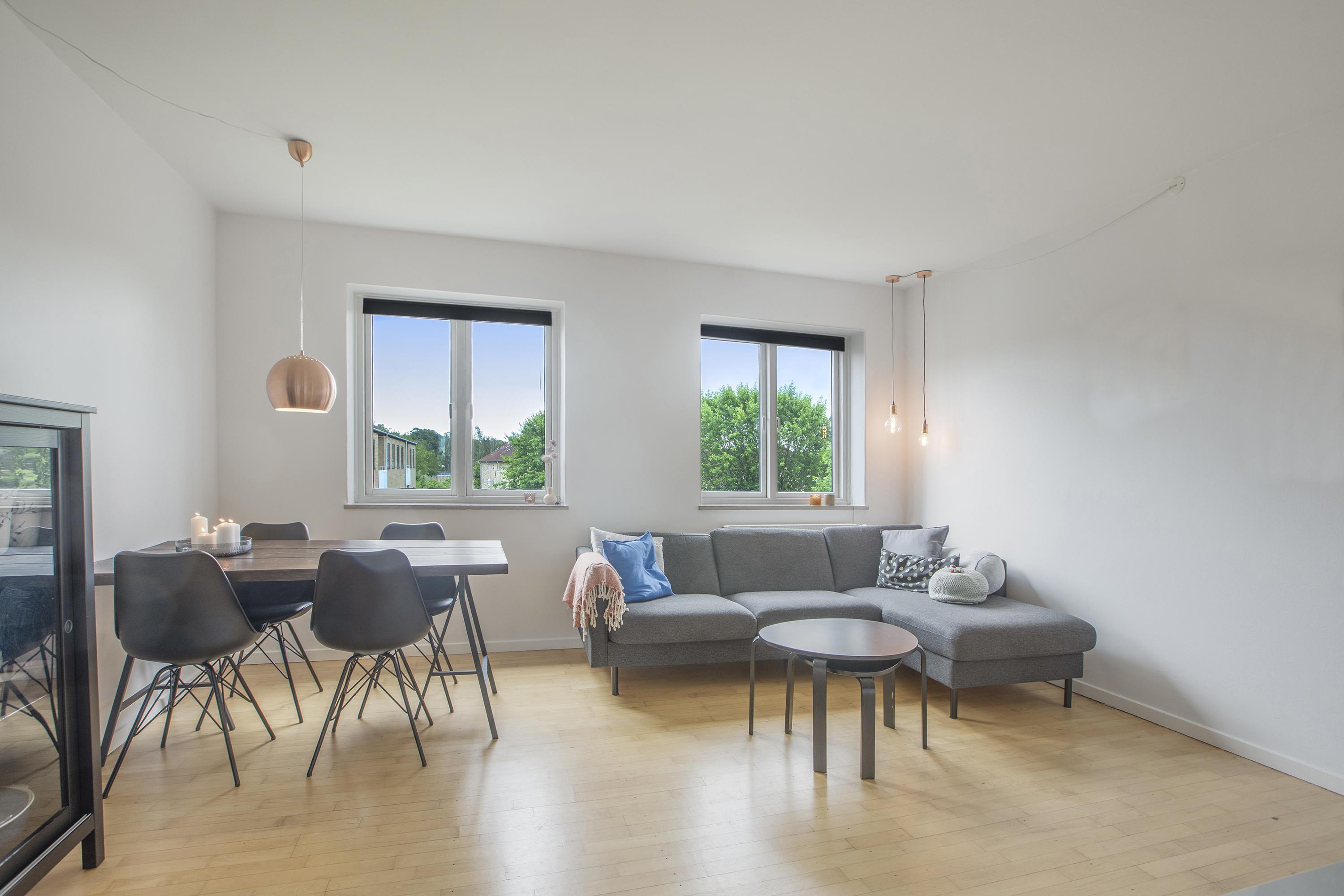Velkommen til denne skønne ejerlejlighed, der er perfekt for dig, der ønsker en kombination af bylivets bekvemmeligheder og naturens ro. Beliggende øverst oppe på 2. sal i en velholdt gulstensejendom, får du her en bolig med et langt frit udsyn til begge sider, hvilket giver en følelse af