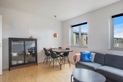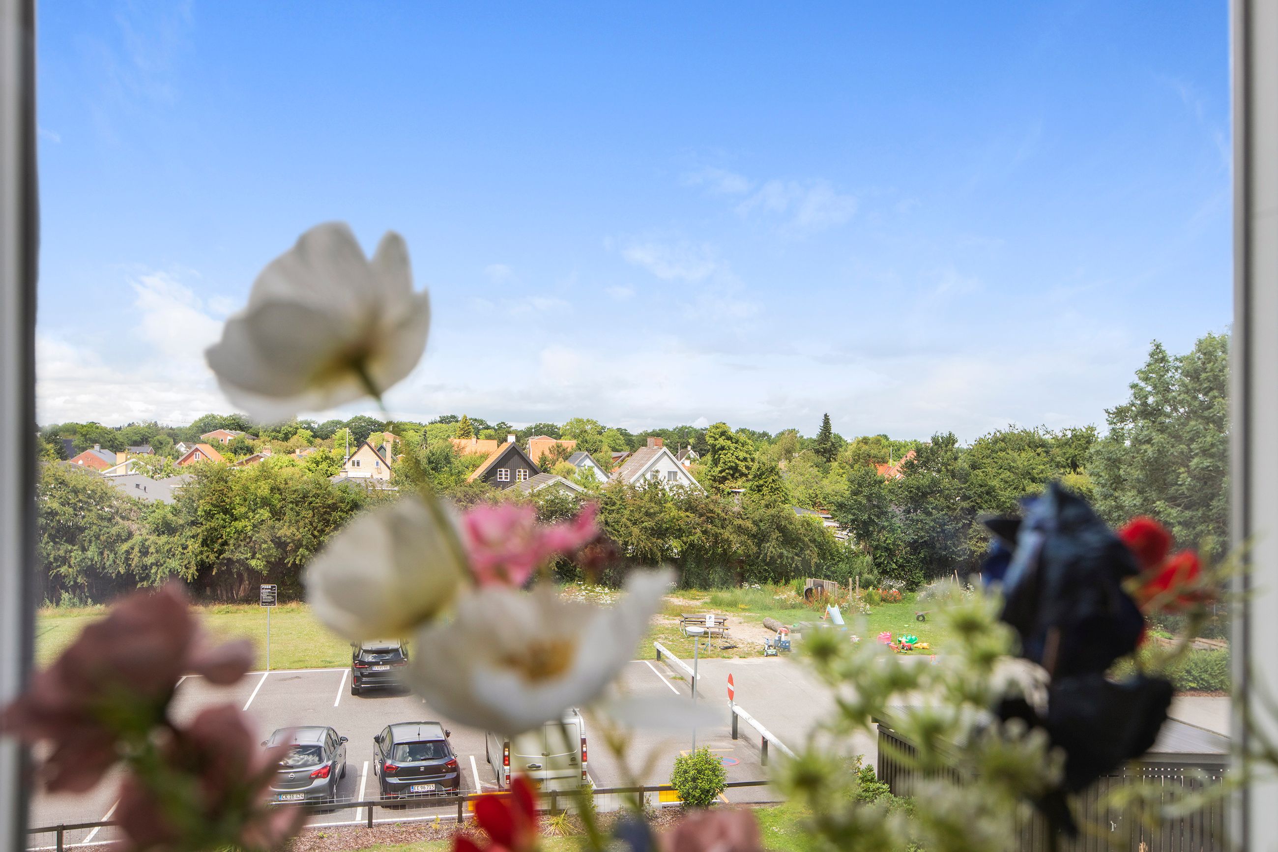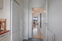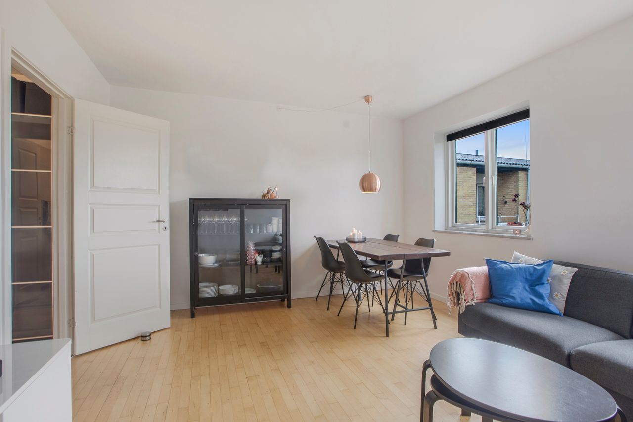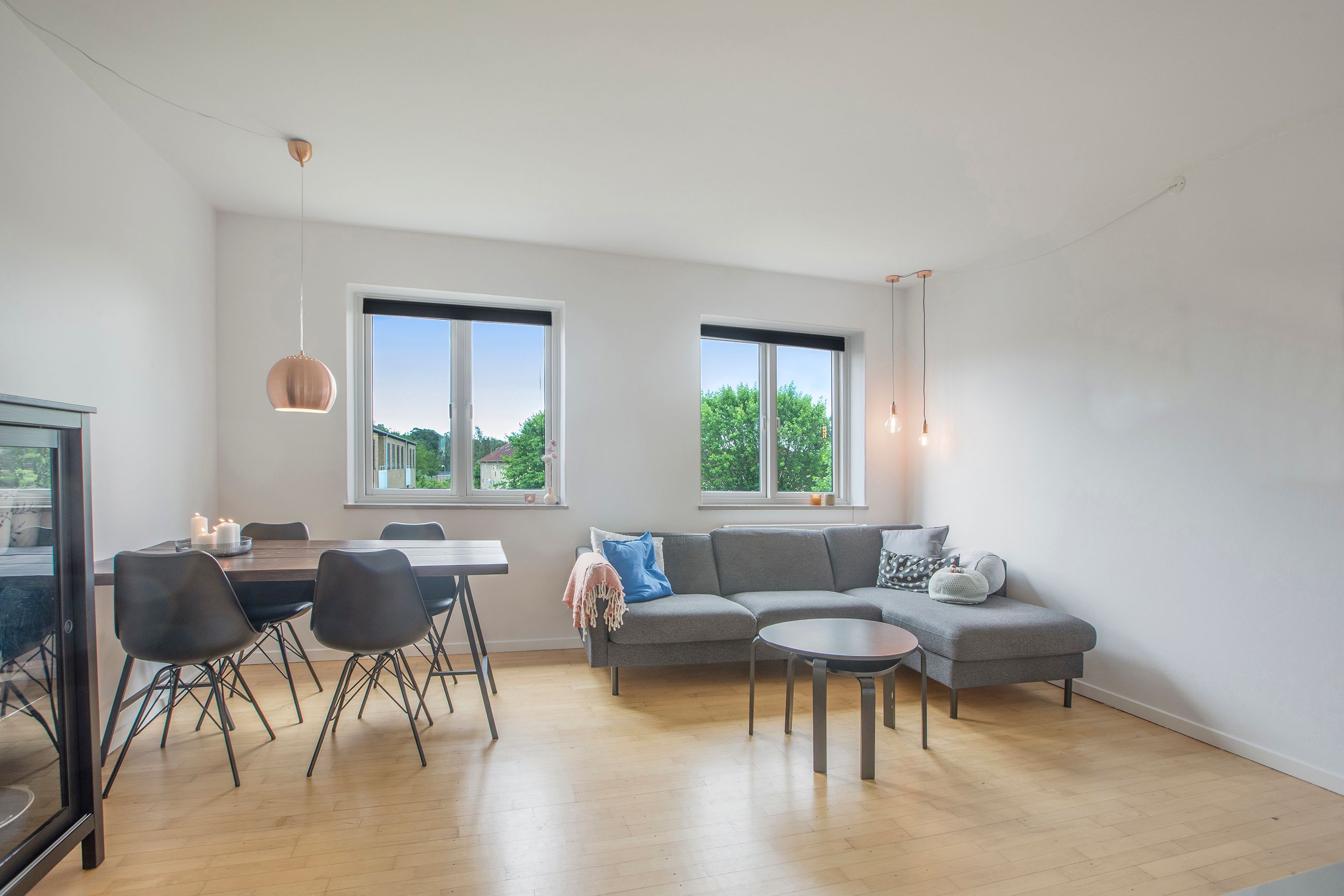 Velkommen til denne skønne ejerlejlighed, der er perfekt for dig, der ønsker en kombination af bylivets bekvemmeligheder og naturens ro. Beliggende øverst oppe på 2. sal i en velholdt gulstensejendom, får du her en bolig med et langt frit udsyn til begge sider, hvilket giver en følelse af rummelighed og lys. Fra fordelingsentréen har du adgang til alle lejlighedens rum.