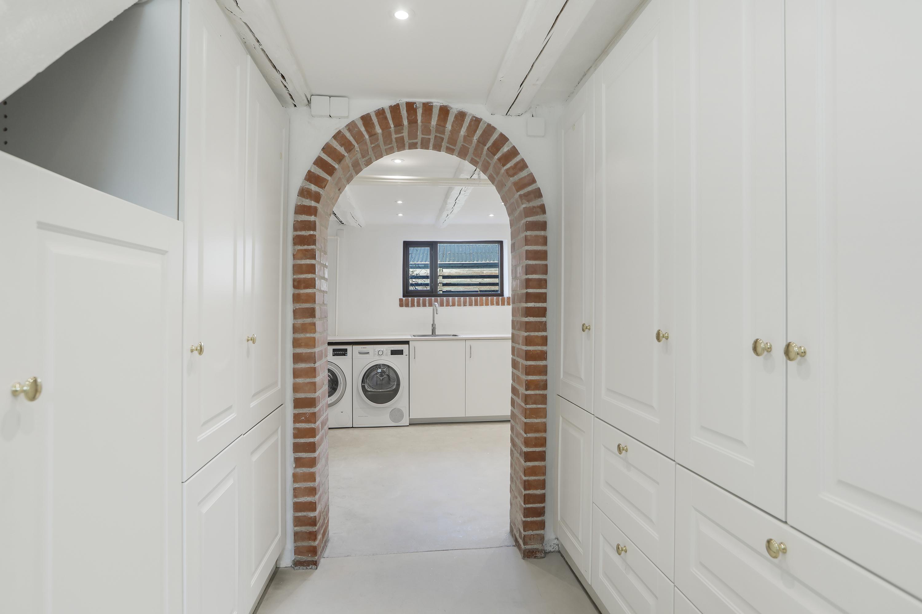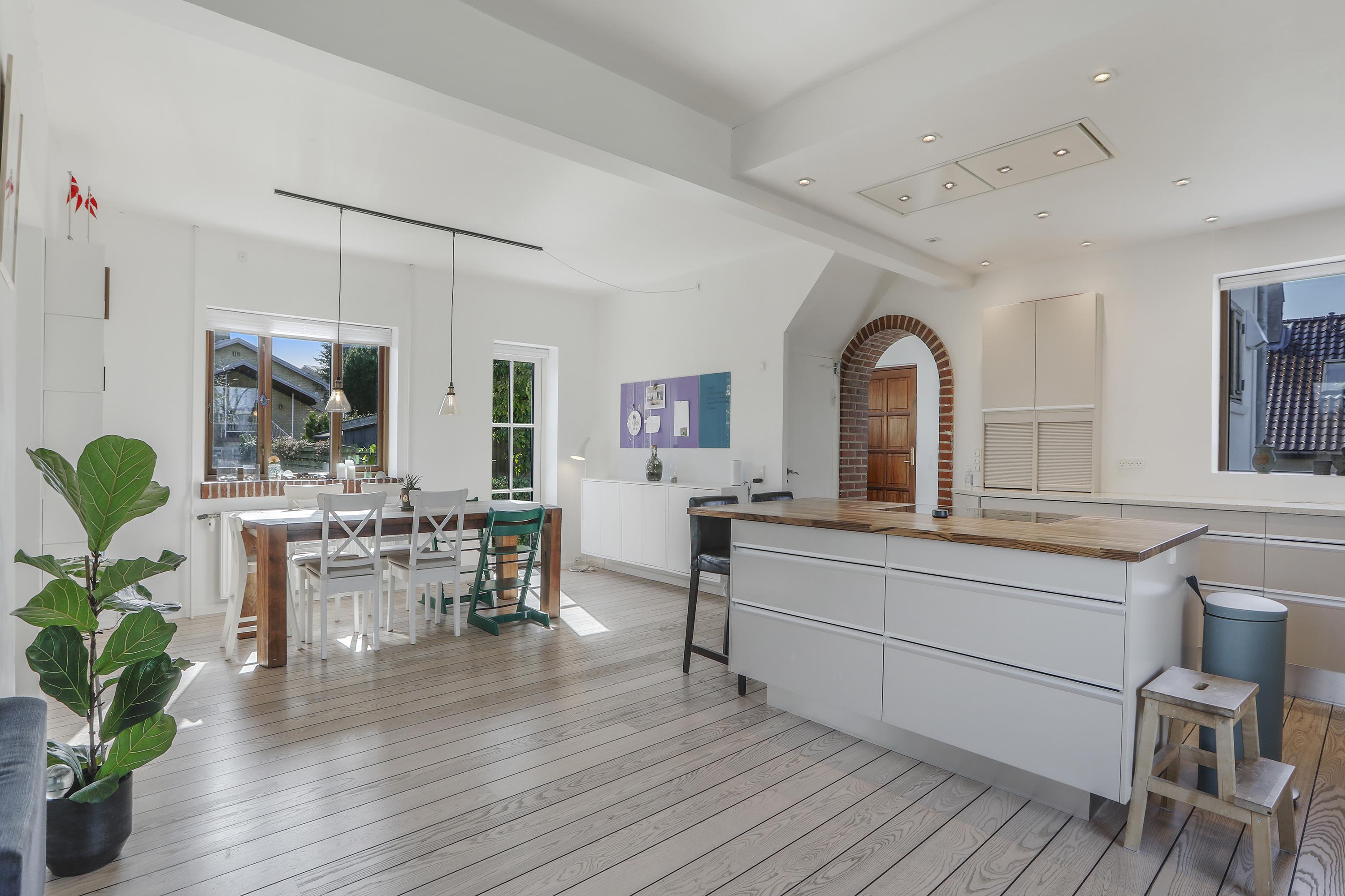 Velkommen til denne fantastiske villa beliggende i et fint hjørne af Søborg, hvor du får en unik kombination af klassisk charme og moderne komfort. Ejendommen, der er opført i 1913, stråler med sin palæagtige fremtoning og hvidpudsede facade, som sammen med de glaserede teglsten og to elegante