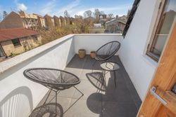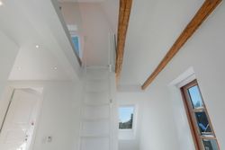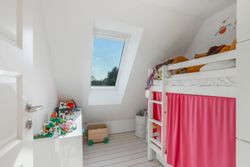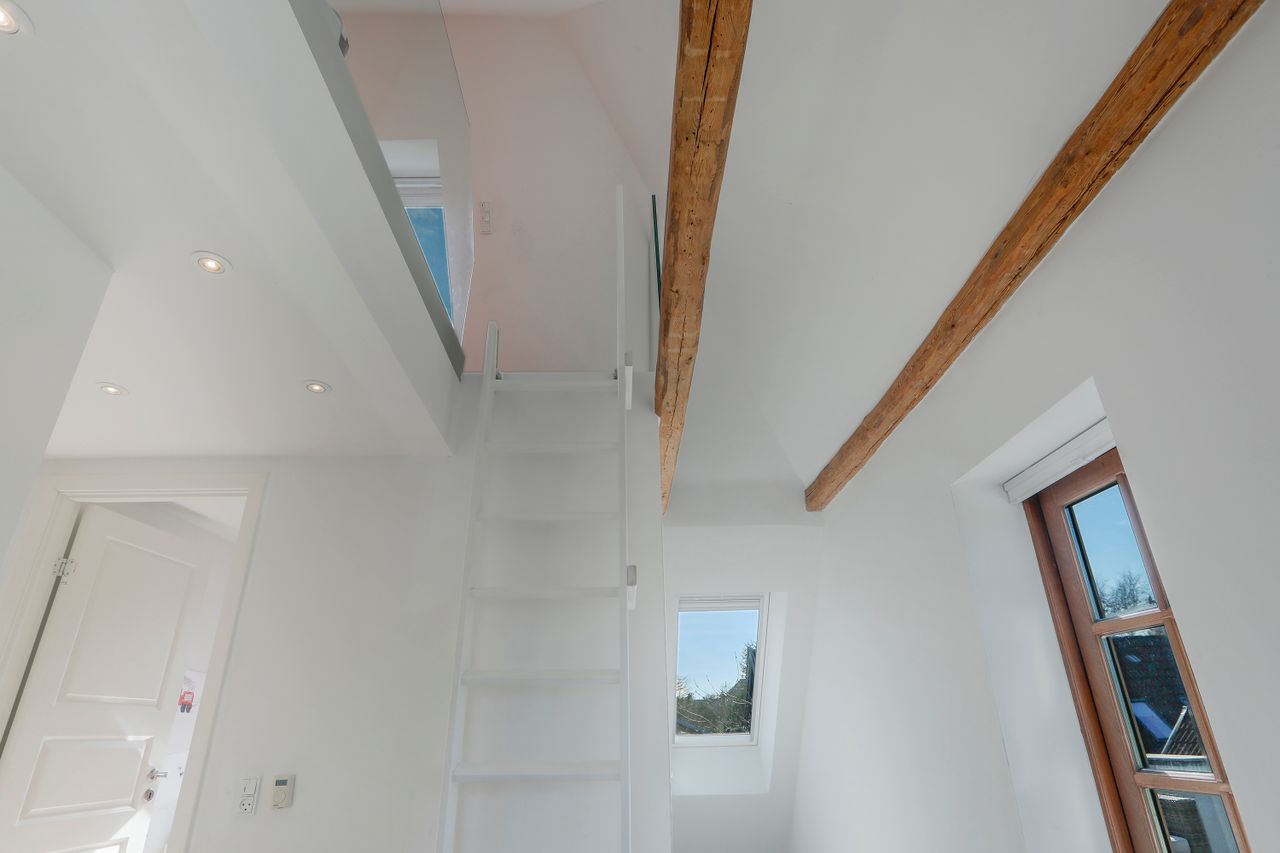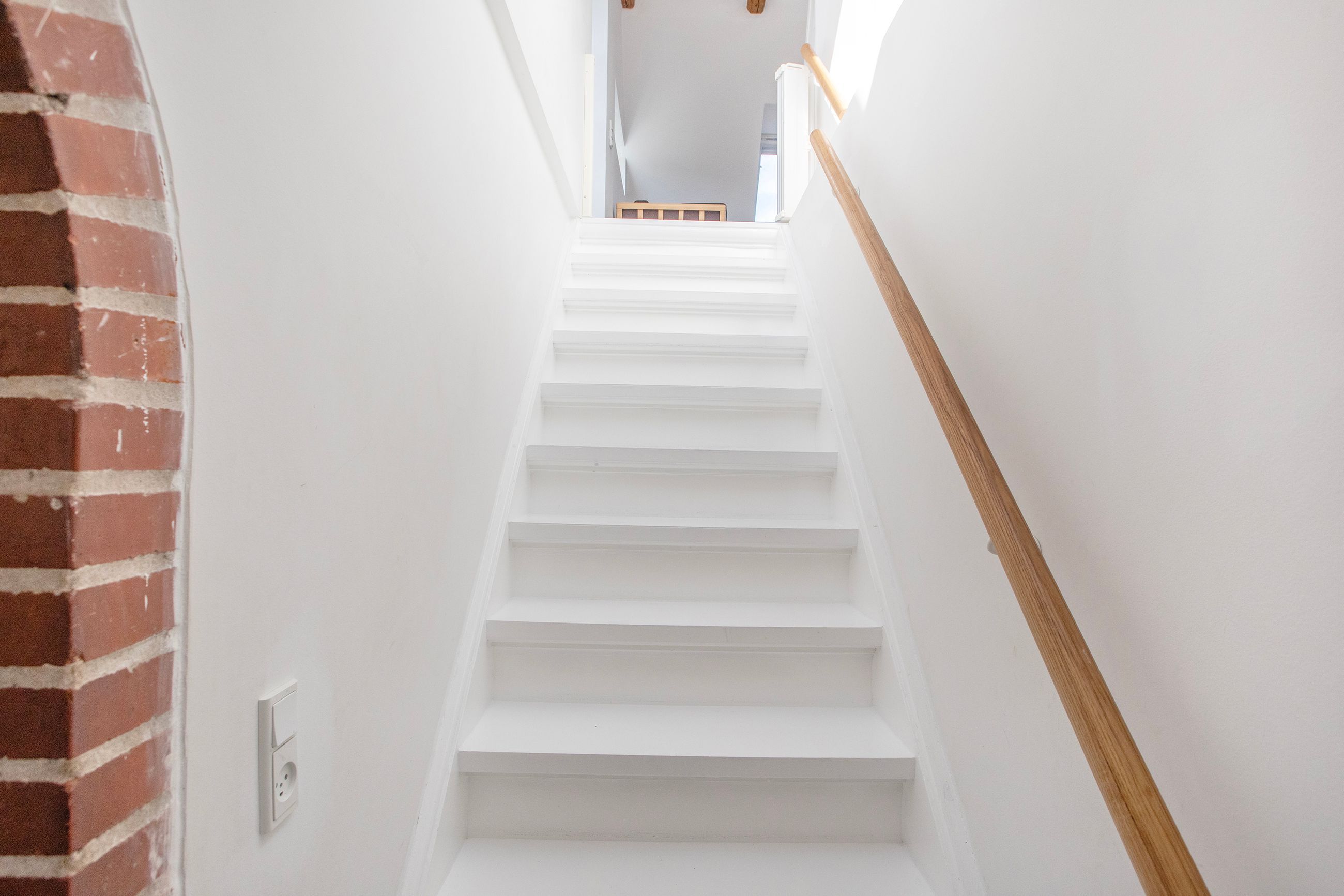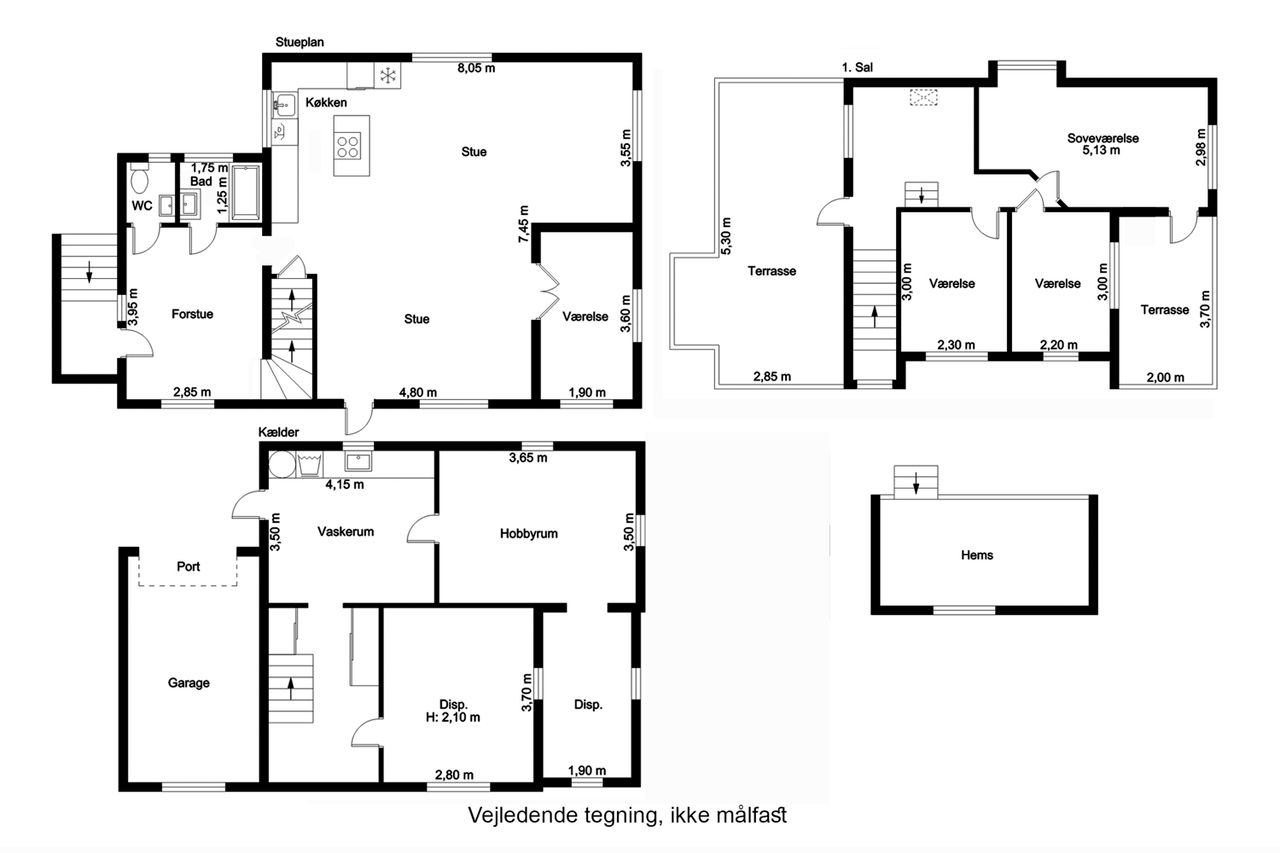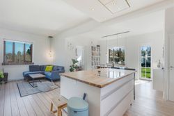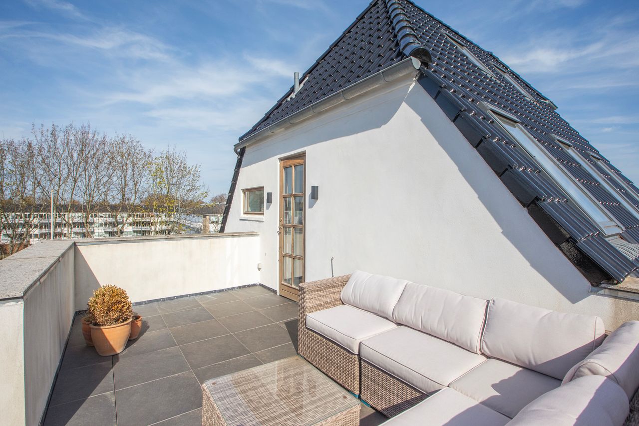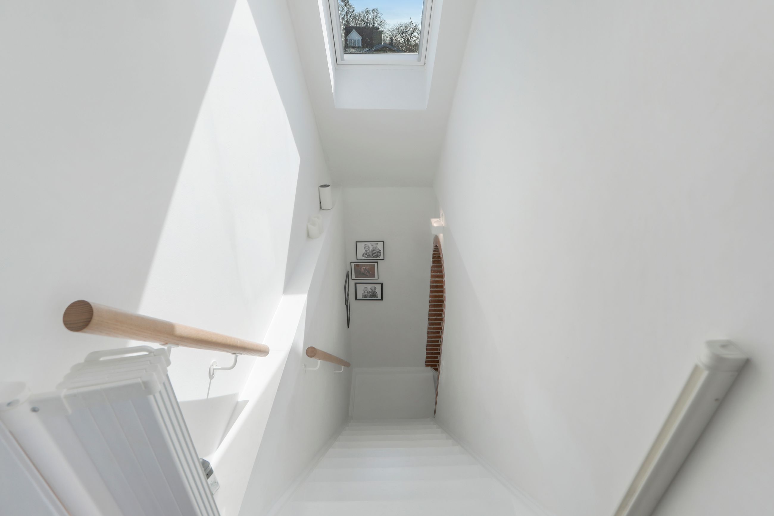 På førstesalen mødes du af tre rummelige værelser samt et åbent kontorområde, foruden en skøn hems med gulvvarme. Hele denne etage er udstyret med gulvvarme for optimal komfort året rundt. Fra første sal har du adgang til to store solrige terrasser, hvorfra du kan nyde udsigten over kvarterets grønne omgivelser.