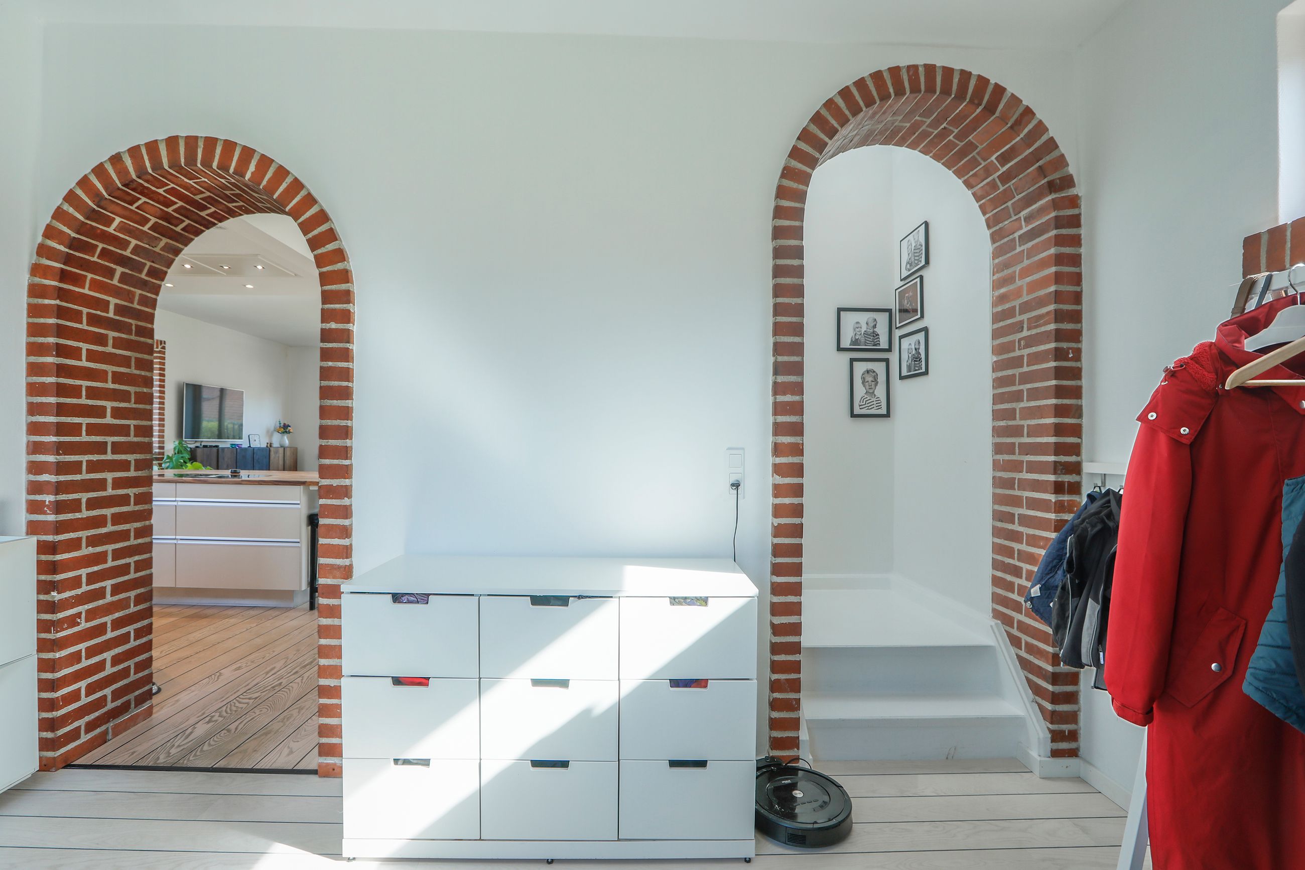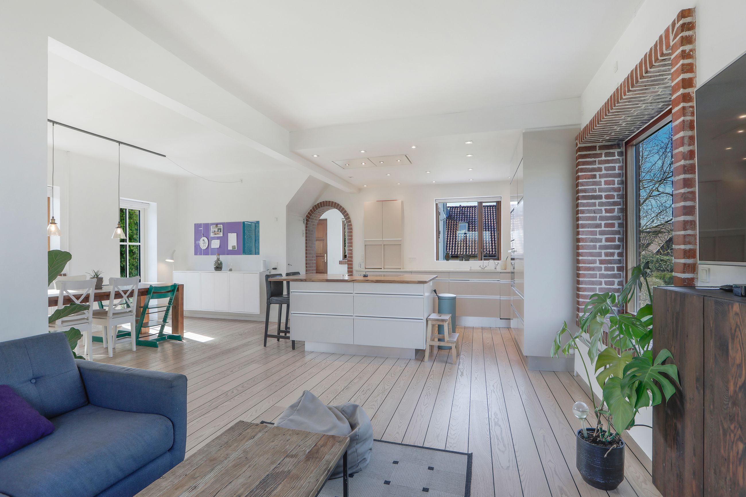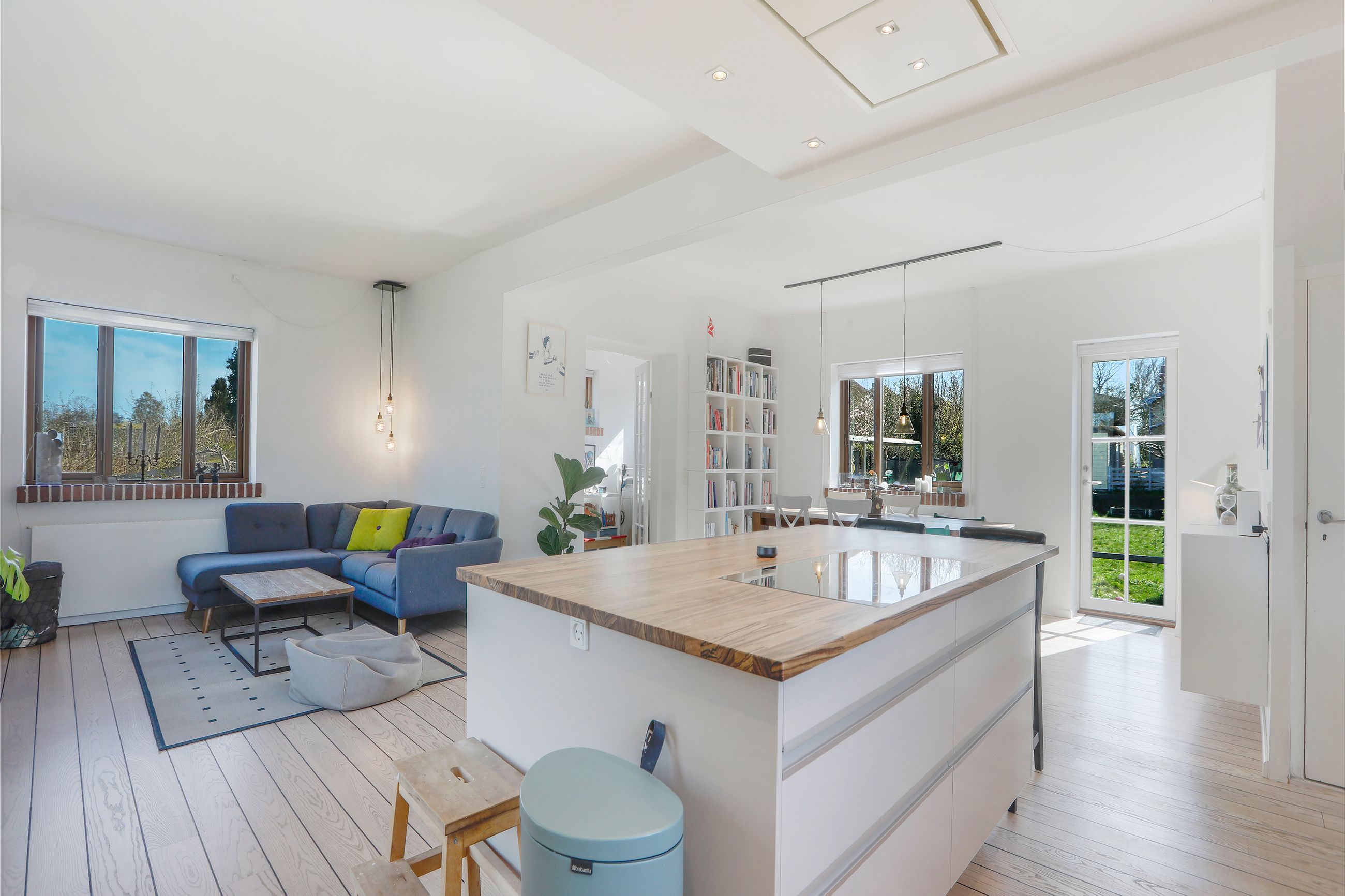 Indenfor venter et boligareal på hele 142 kvadratmeter fordelt på en yderst gennemtænkt planløsning. I stueplan finder du et stort køkken-alrum med direkte udgang til en dejlig terrasse – perfekt til hyggelige familie middage eller afslappende stunder i solen. Derudover byder stueetagen på et ekstra værelse samt badeværelse og toilet.