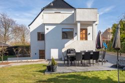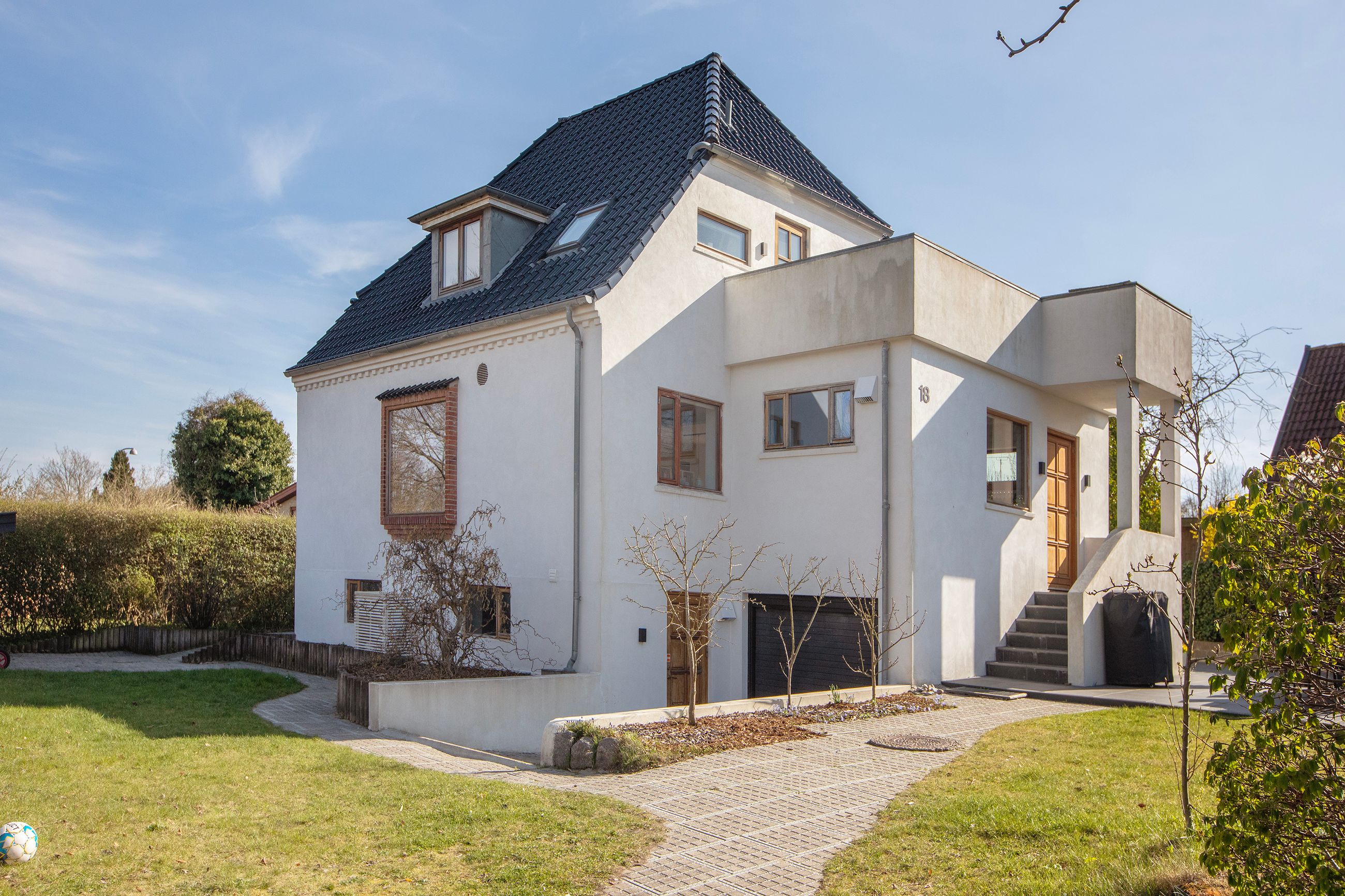 Velkommen til denne fantastiske villa beliggende i et fint hjørne af Søborg, hvor du får en unik kombination af klassisk charme og moderne komfort. Ejendommen, der er opført i 1913, stråler med sin palæagtige fremtoning og hvidpudsede facade, som sammen med de glaserede teglsten og to elegante balkoner giver et storslået førstehåndsindtryk.
