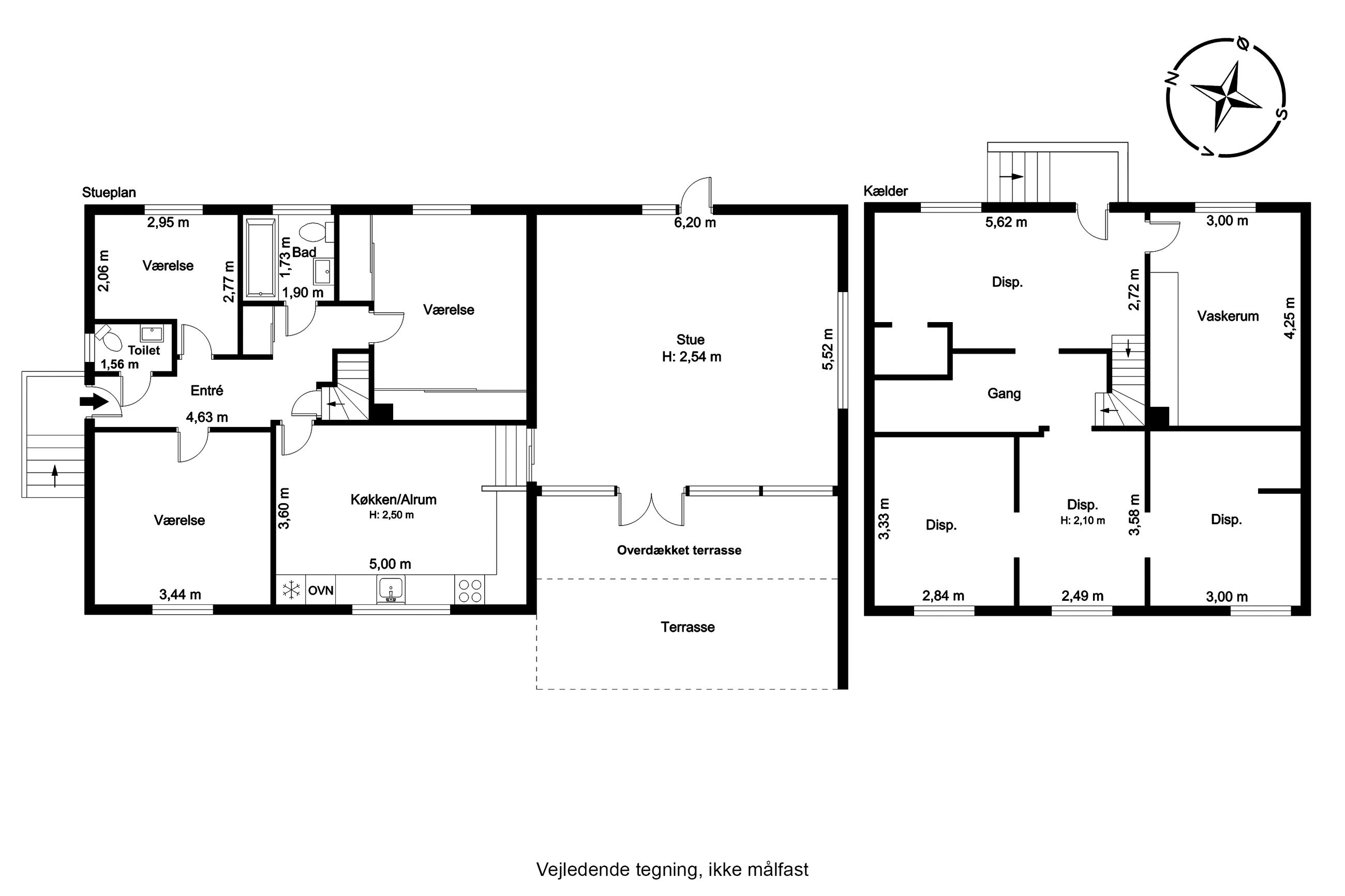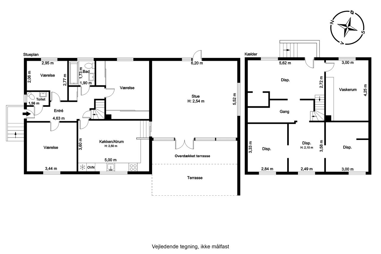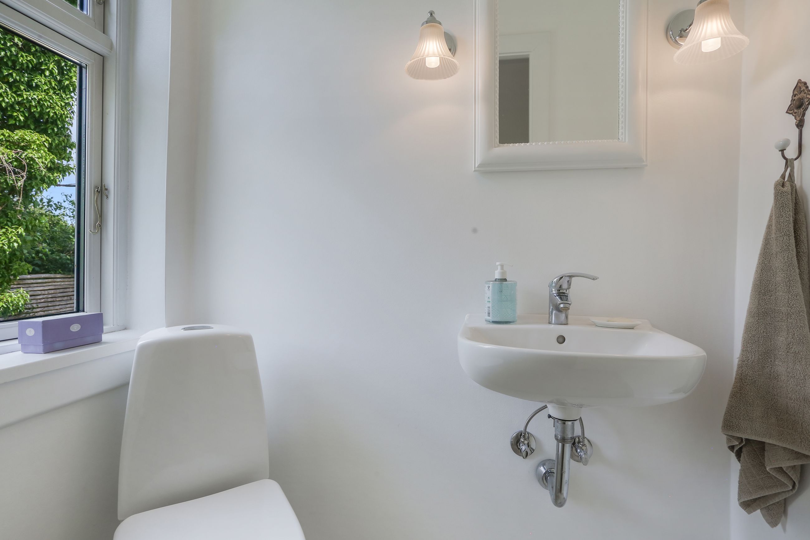 Ejendommen byder desuden på både et gæstetoilet og et badeværelse, hvilket gør det nemt at håndtere hverdagens travlhed uden kø ved badeværelset om morgenen. Kælderen er yderst funktionel med flere disponible rum samt et praktisk bryggers – ideelt til opbevaring eller hobbyprojekter.