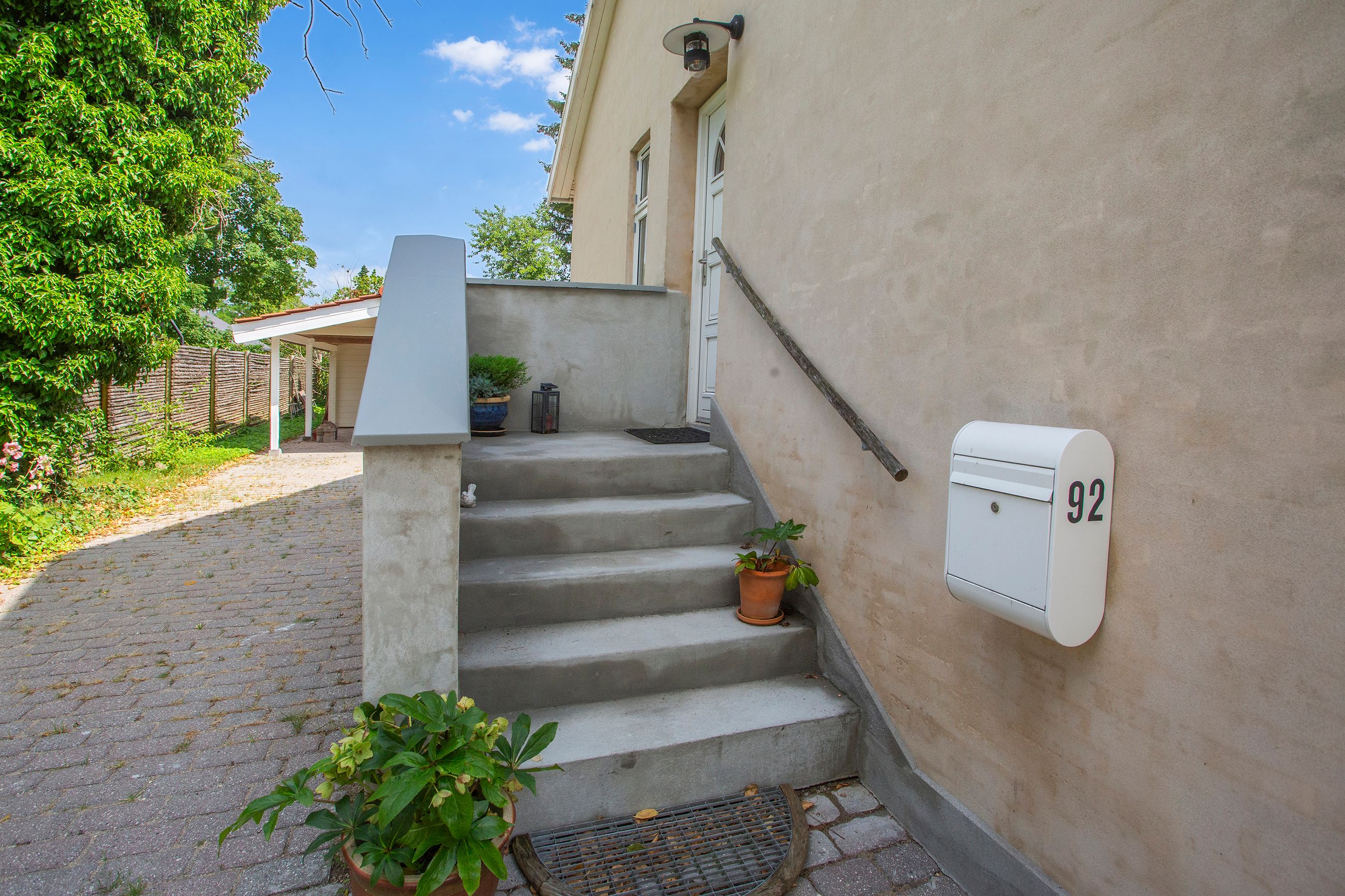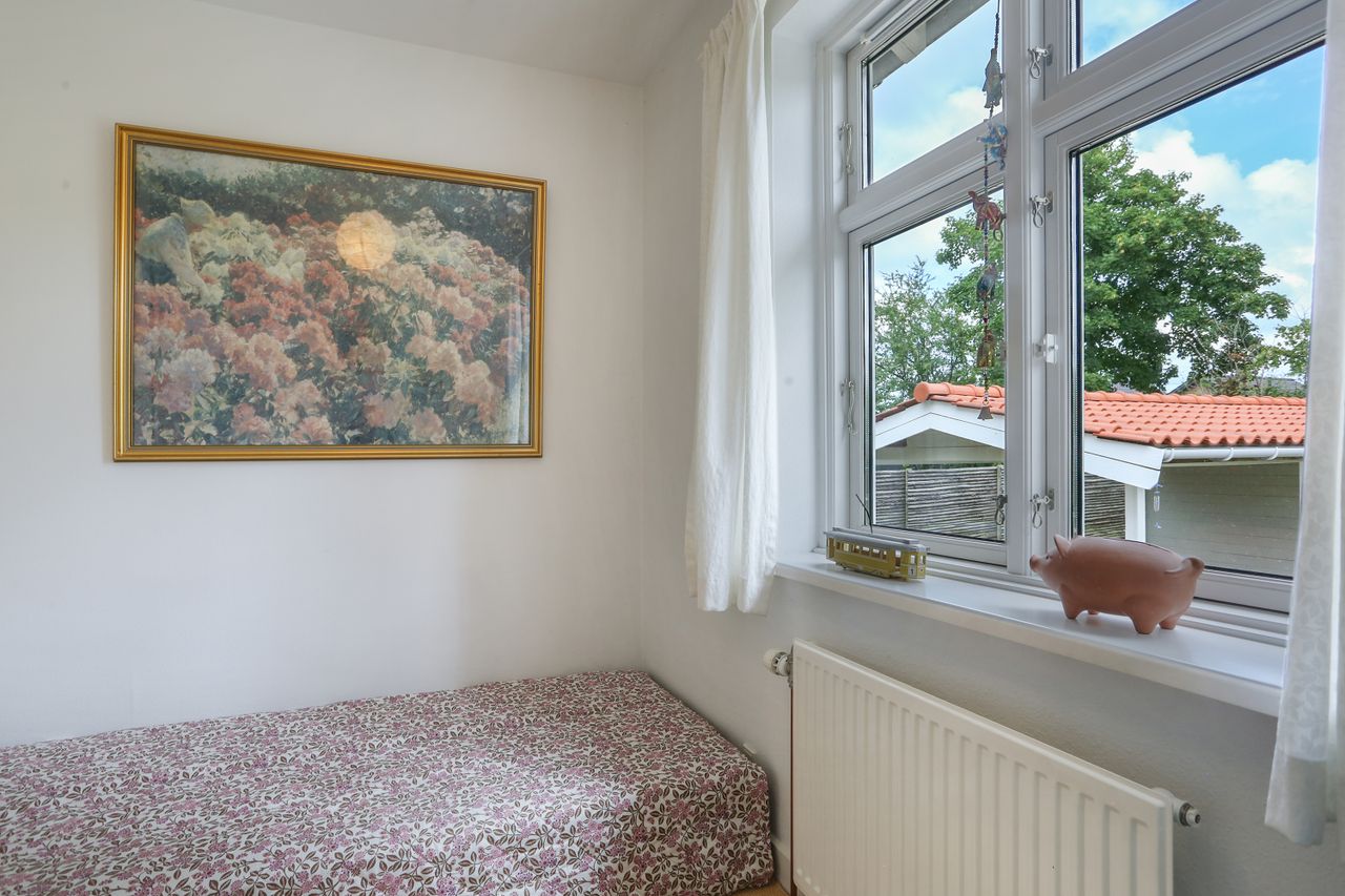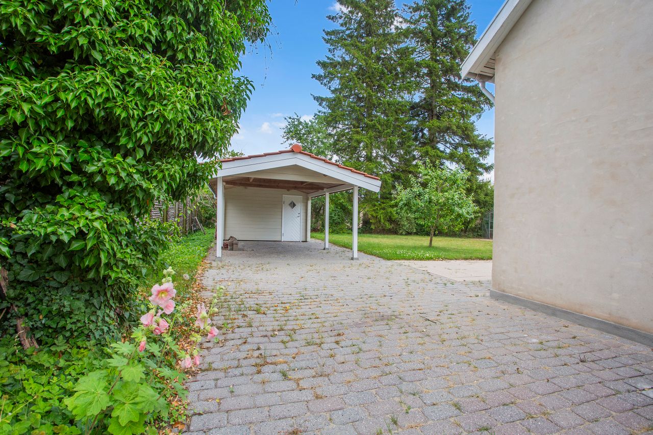Den solrige have inviterer til leg og afslapning med masser af plads til boldspil eller blomsterbede for dem med grønne fingre. Her finder du også en carport samt et redskabsskur – perfekt for familiens cykler eller haveredskaber.