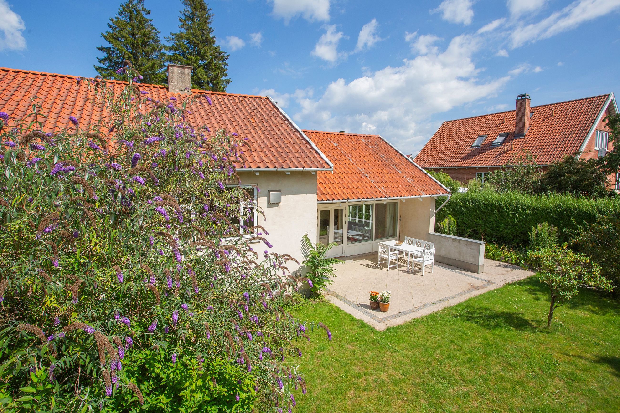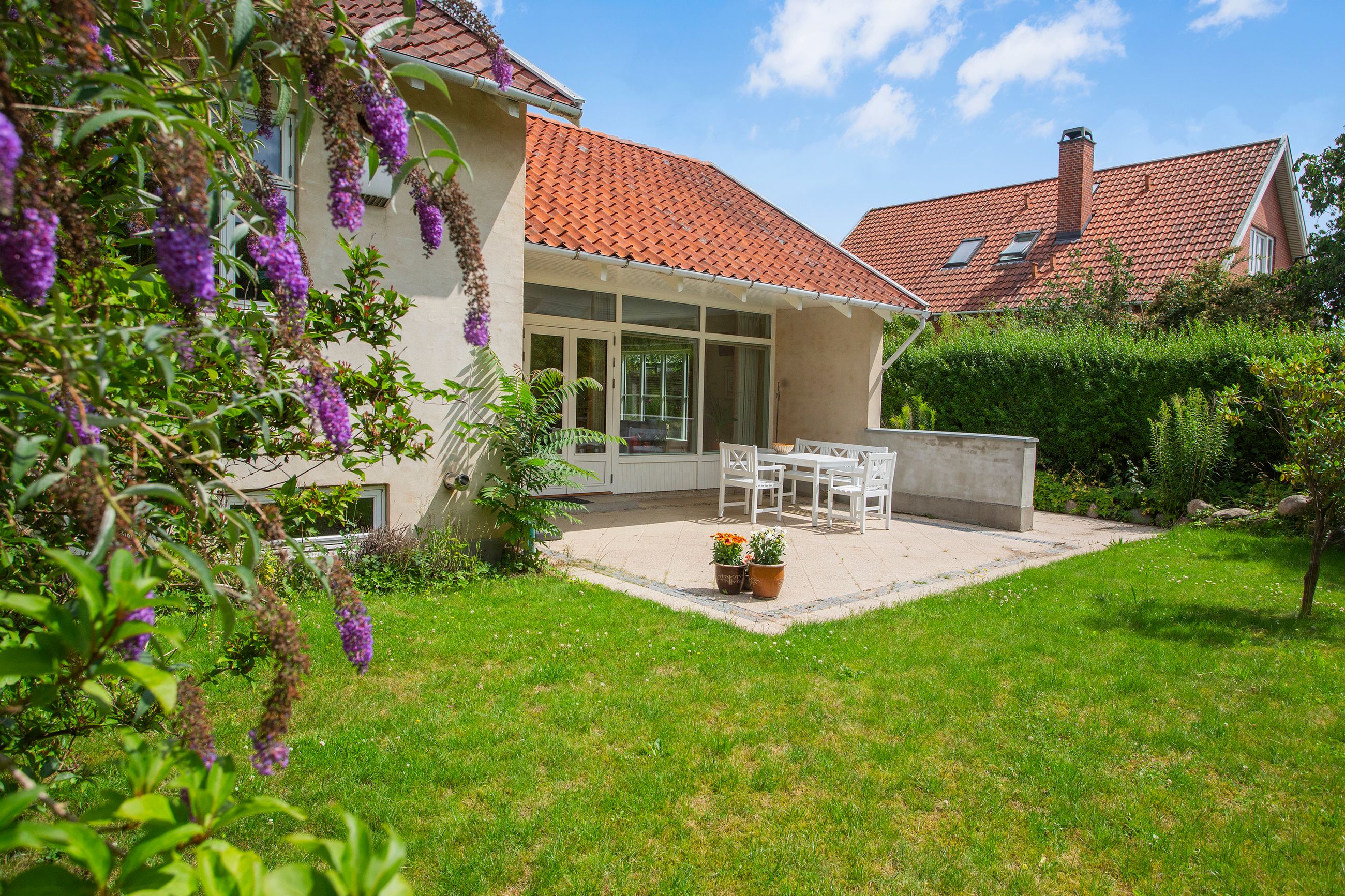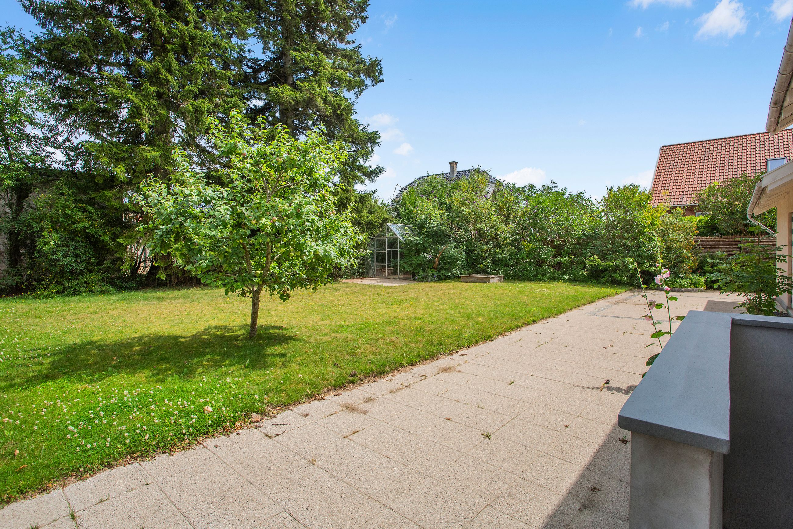Den solrige have inviterer til leg og afslapning med masser af plads til boldspil eller blomsterbede for dem med grønne fingre. Her finder du også en carport samt et redskabsskur – perfekt for familiens cykler eller haveredskaber.