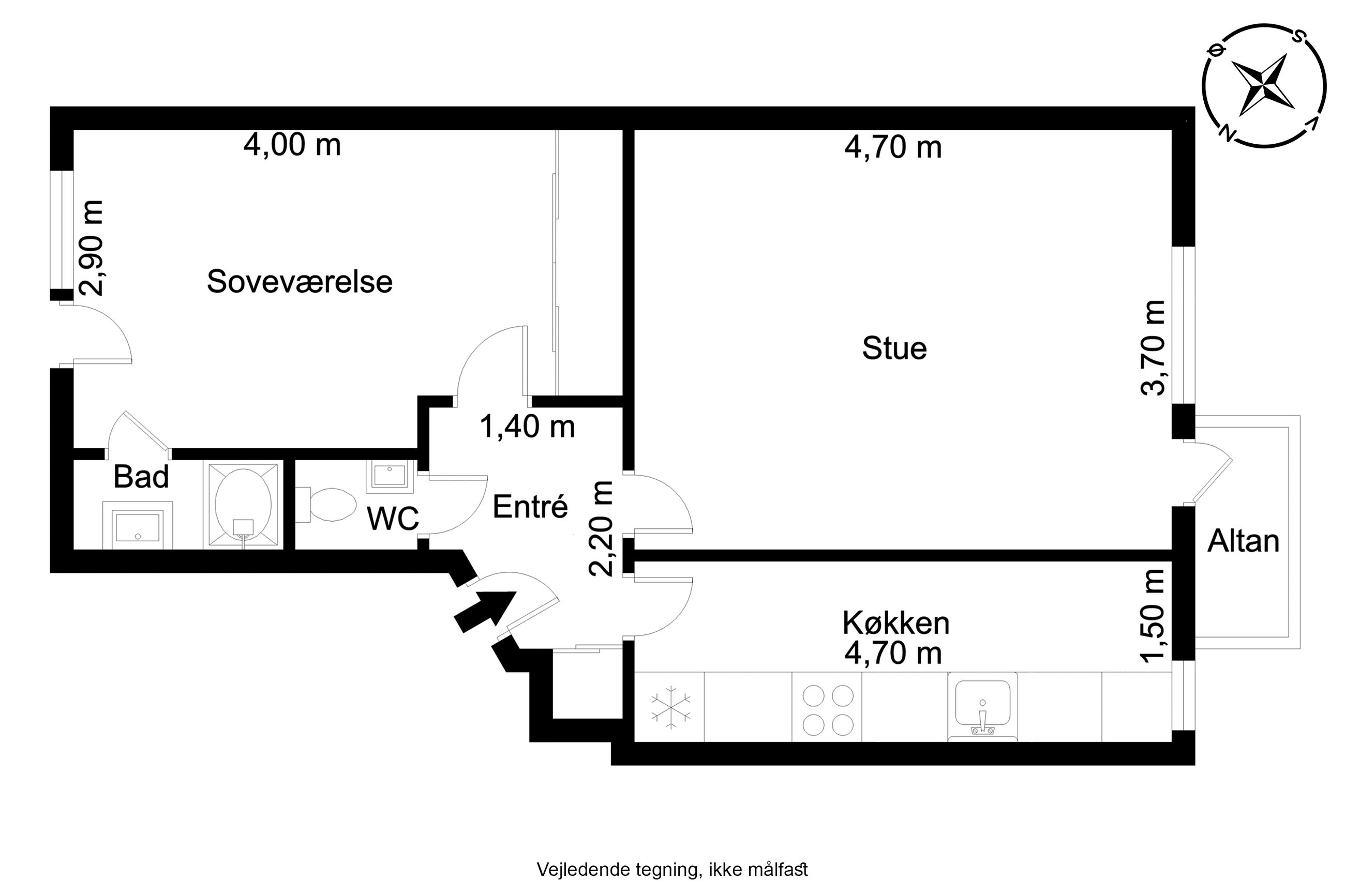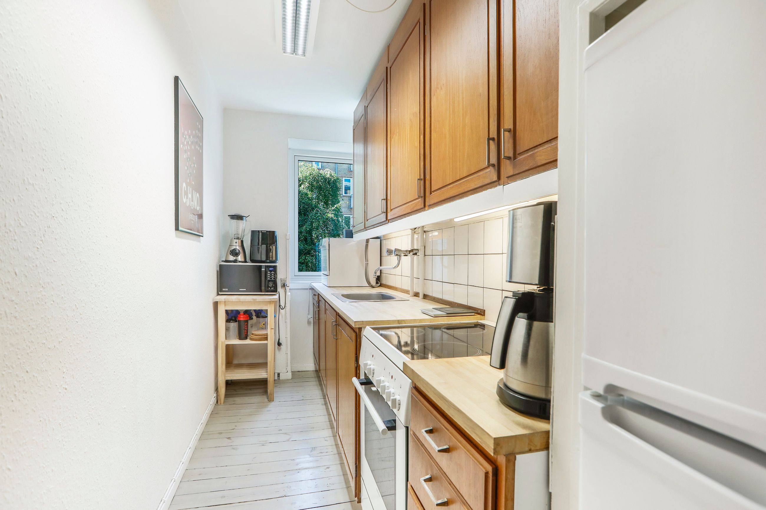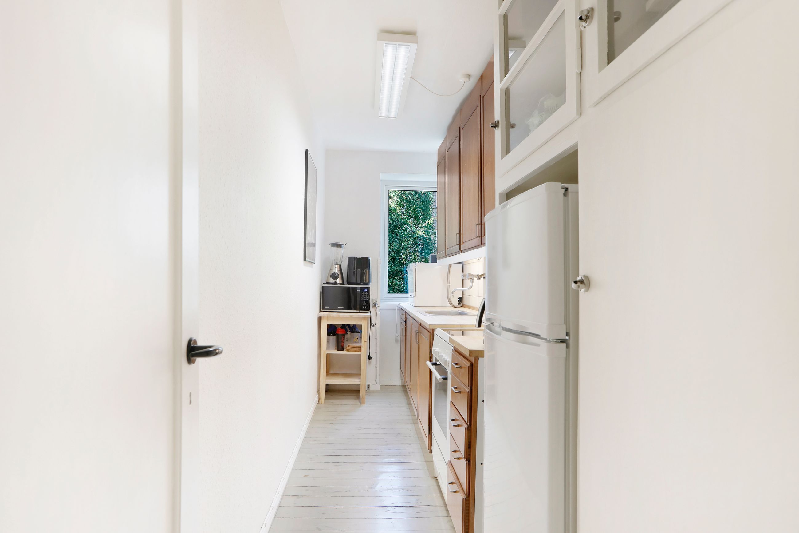 En af de store fordele ved denne bolig er muligheden for at åbne op mellem stue og køkken for at skabe et lyst køkken-alrum - perfekt for dem der elsker åbne rum og social madlavning. Lejligheden er meget velholdt, så du kan flytte ind som den er eller sætte dit eget præg.
