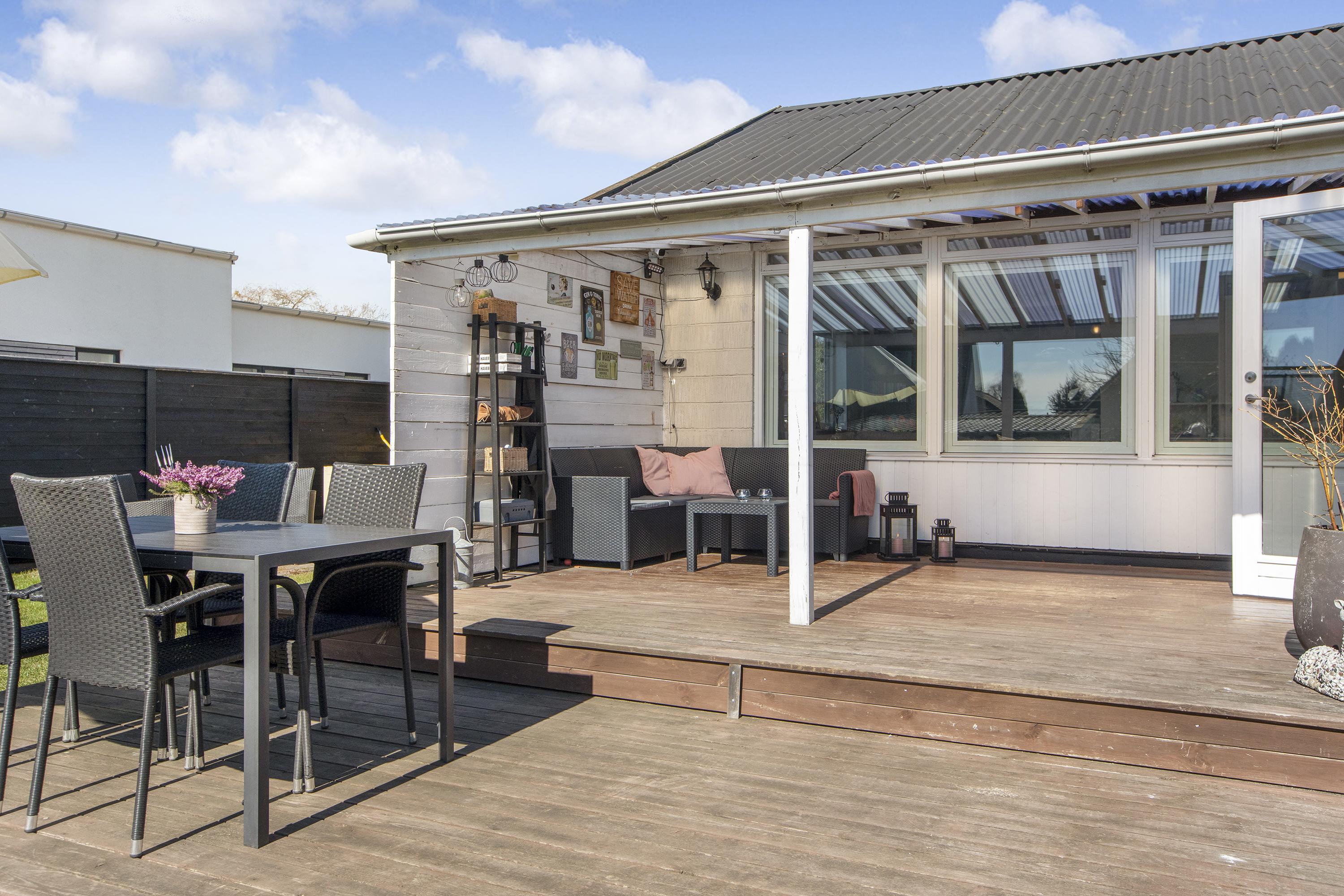Indflytningsklar villa med stor træterrasse i børnevenligt kvarter