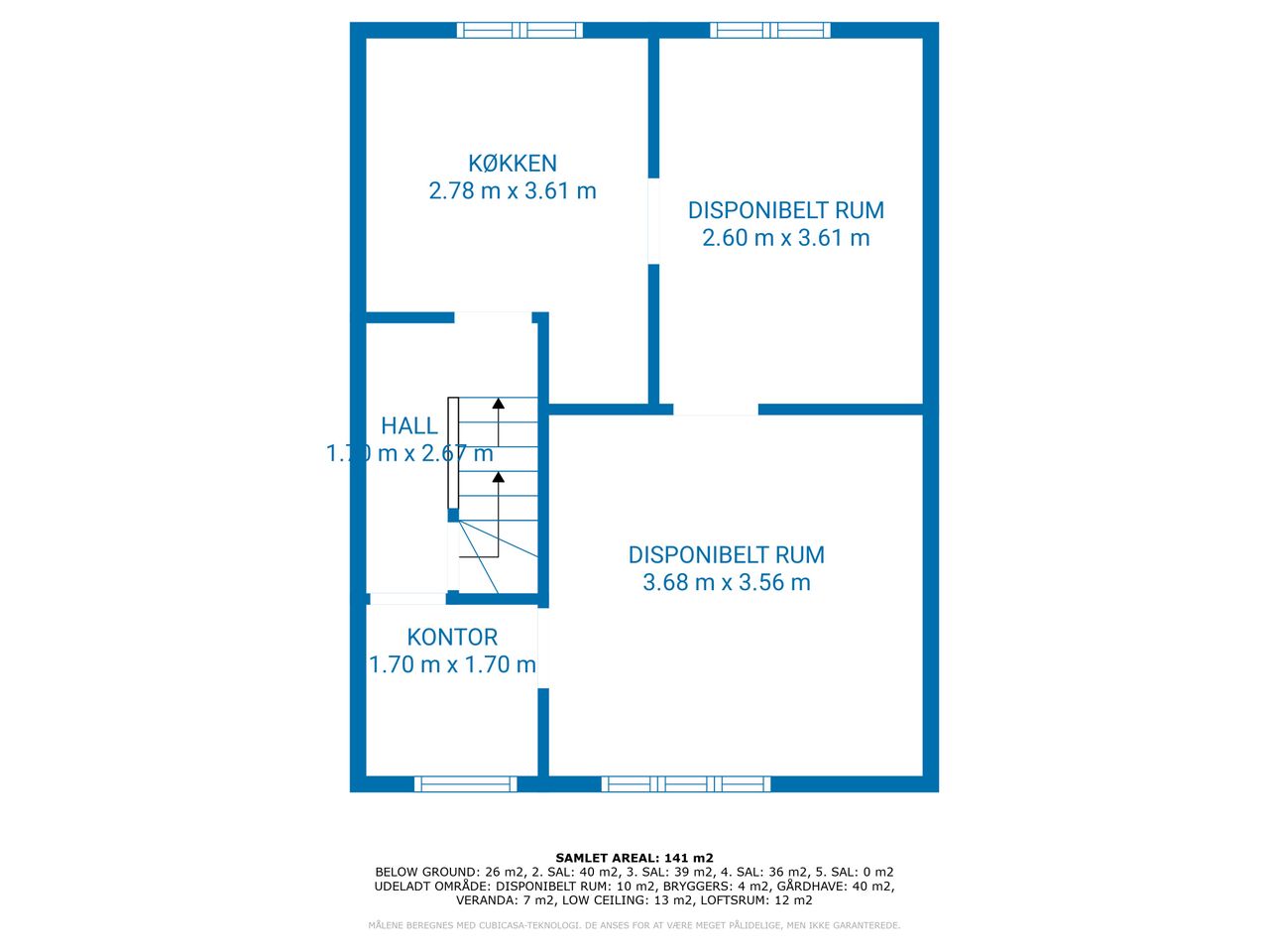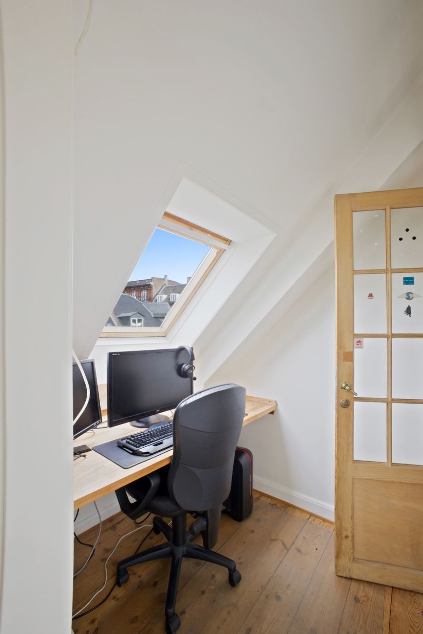 På første sal finder du et lyst badeværelse og to gode soveværelser med plads til skabe og med udsigt til grønne omgivelser. Anden sal rummer to værelser, et kontor samt et ekstra køkken, der giver mulighed for fx teenageafdeling, gæsteetage eller hjemmearbejdszone. Øverst finder du et anvendeligt loftsrum med potentiale og god opbevaringsplads.