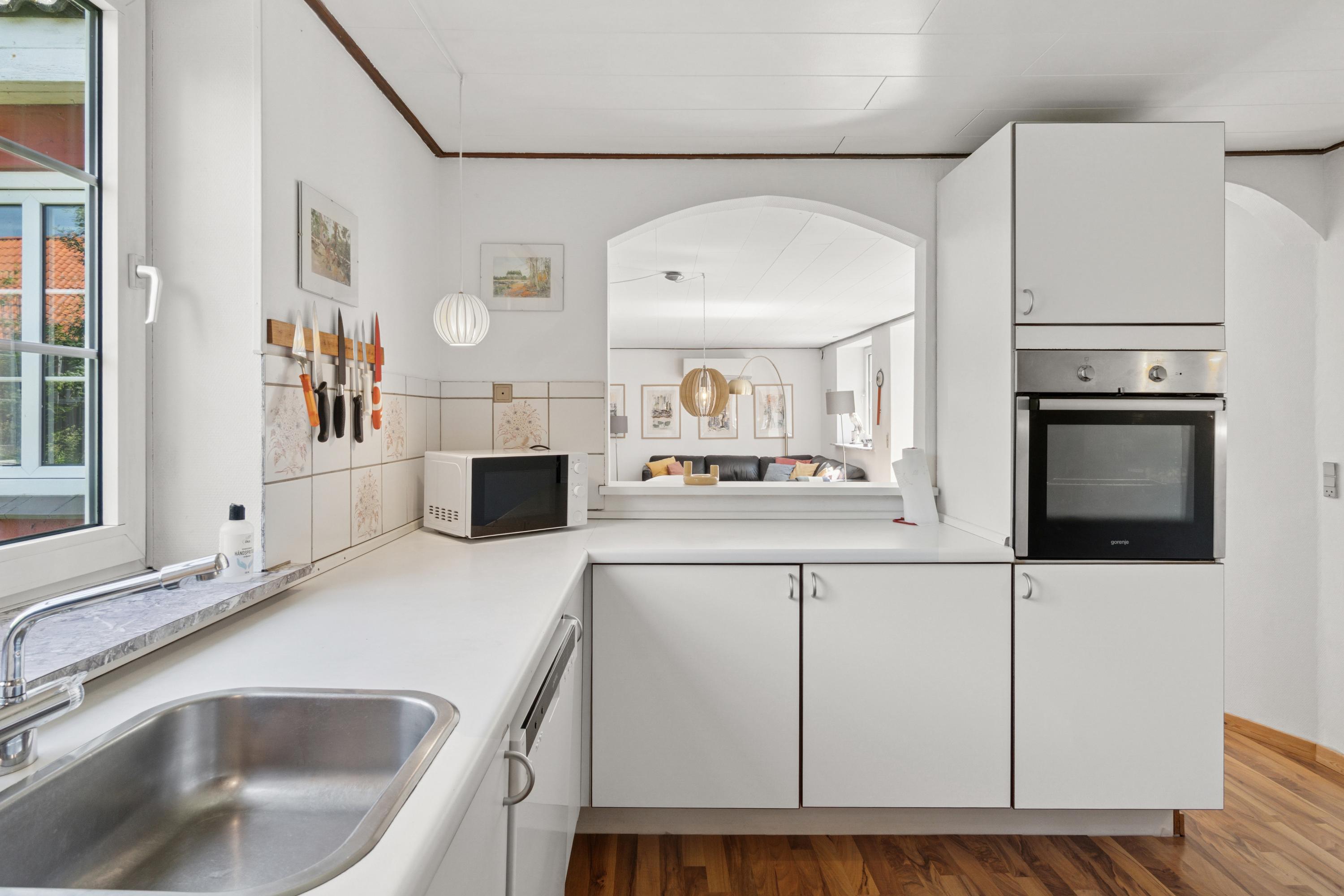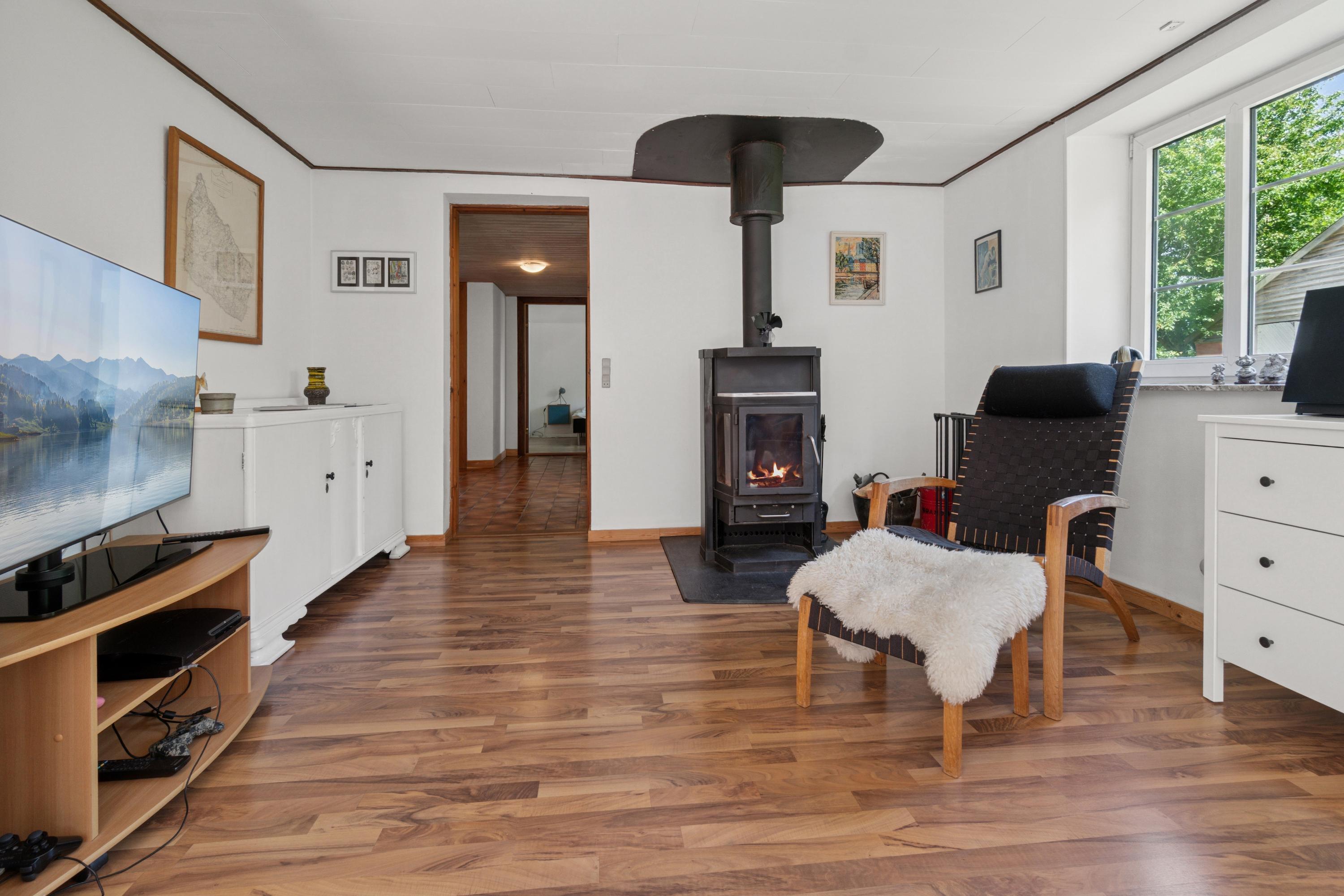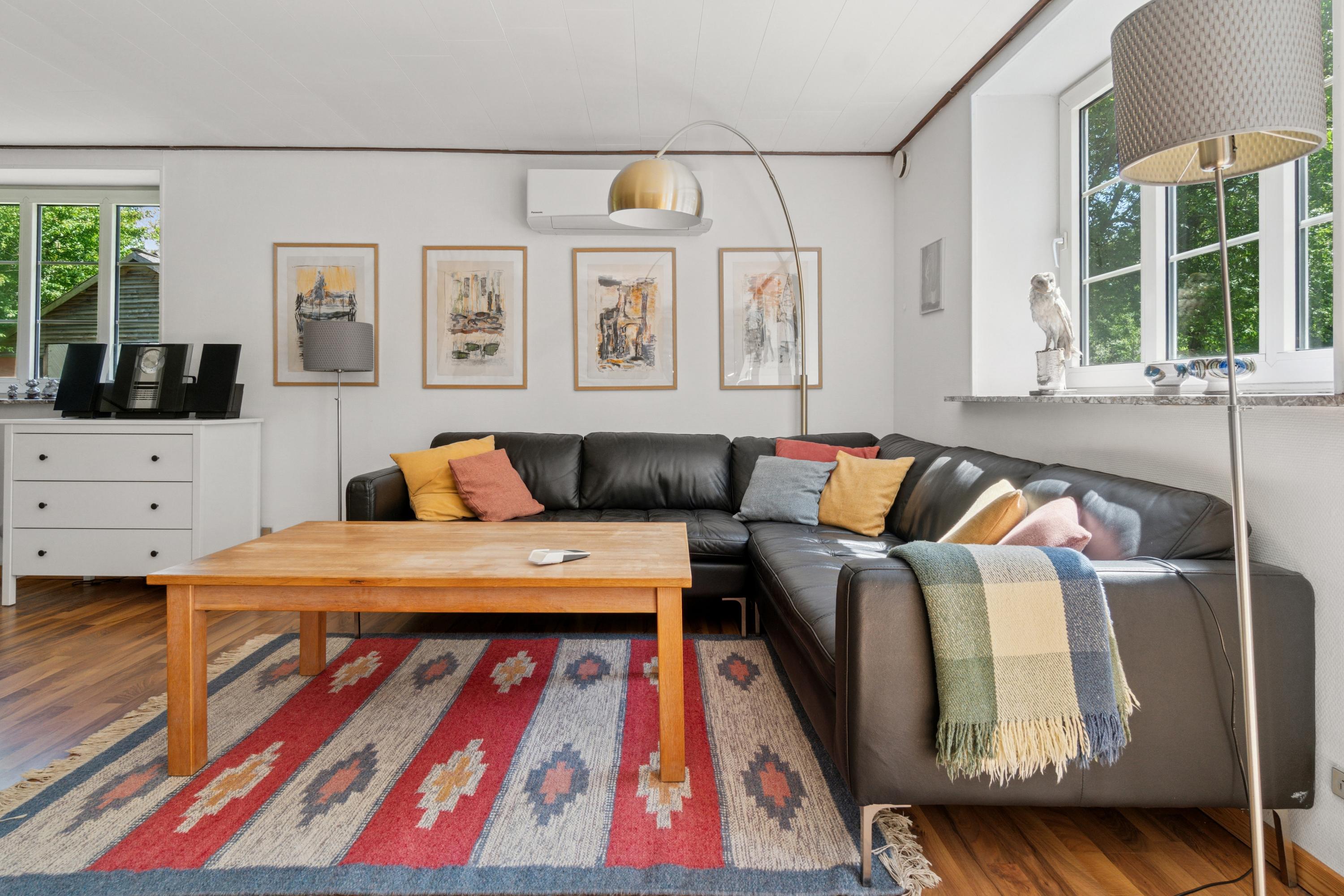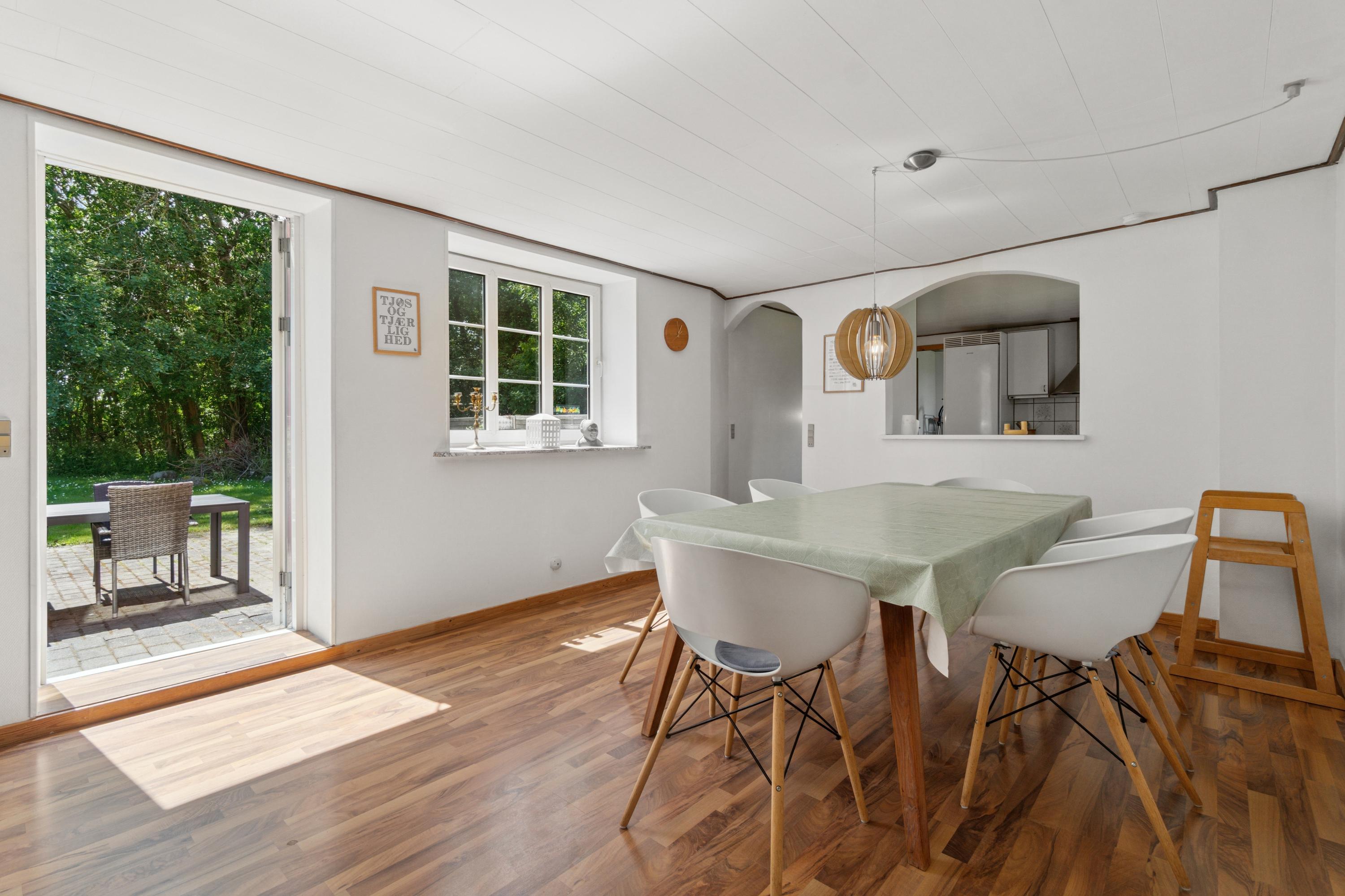 Huset ligger tilbagetrukket fra vej, hvor man uforstyrret har privatlivets fred.