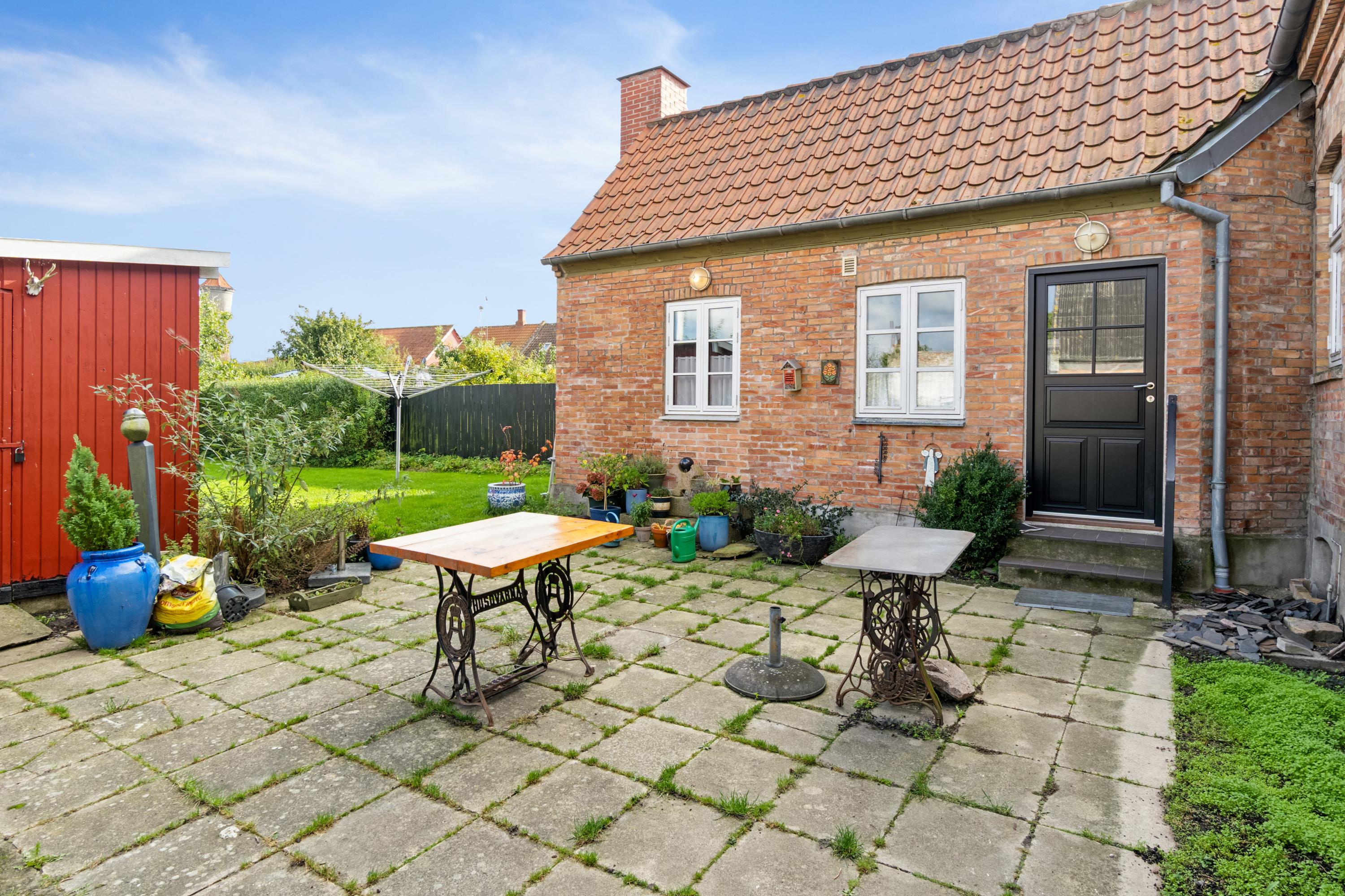 Byhus centralt i Aakirkeby med dejlig lukket have og tilbagetrukket fra gaden.