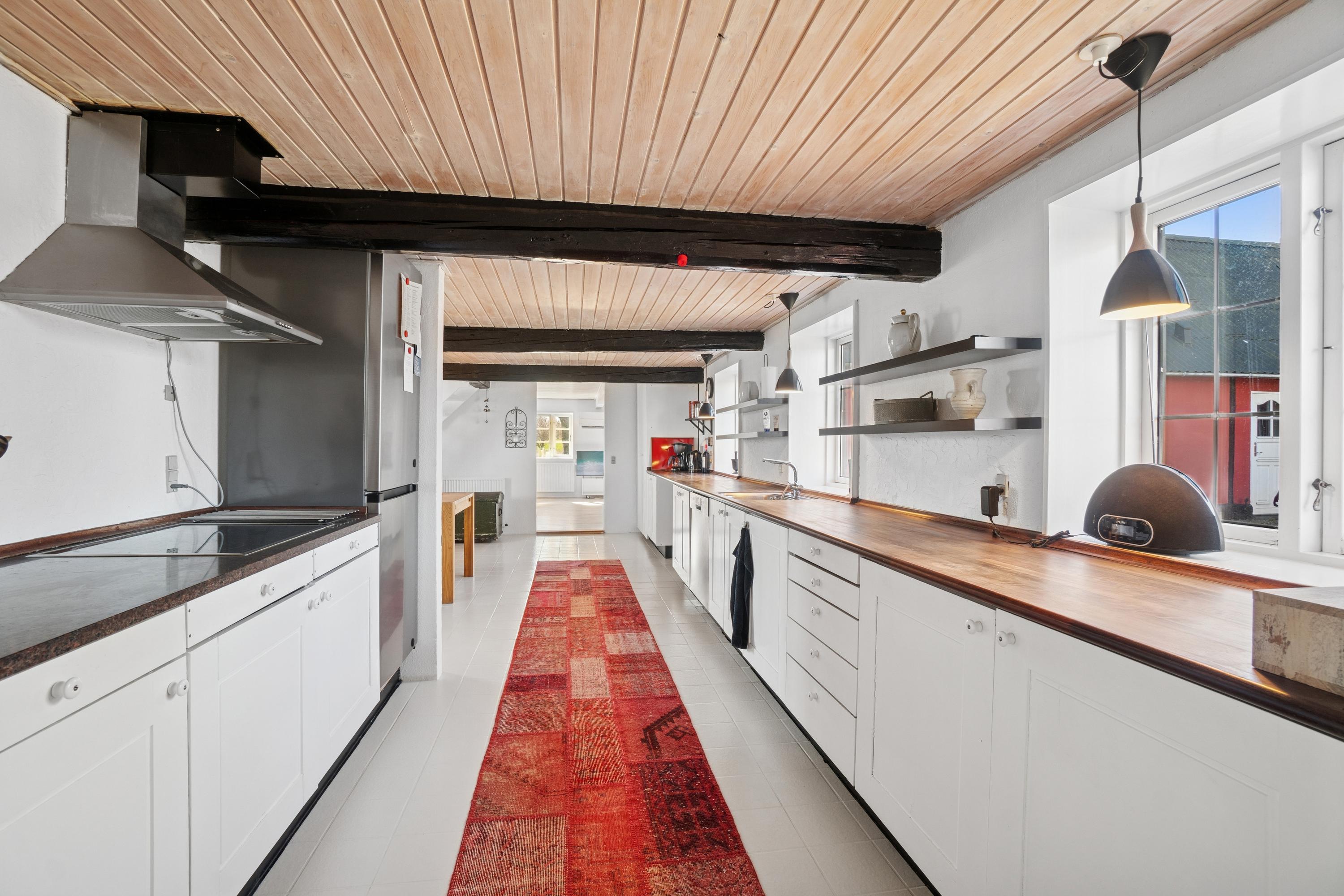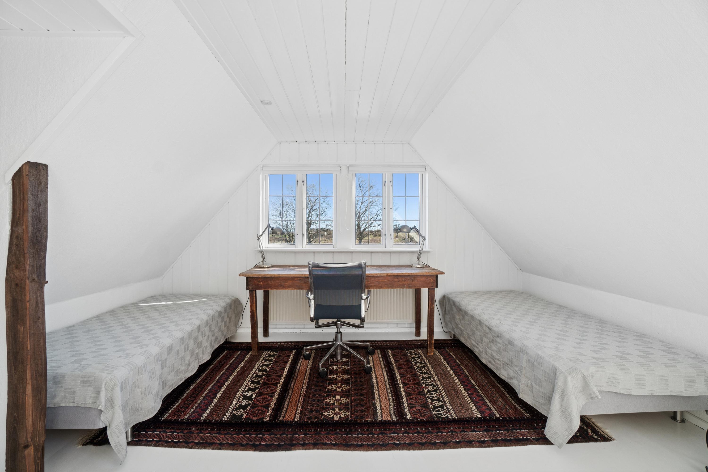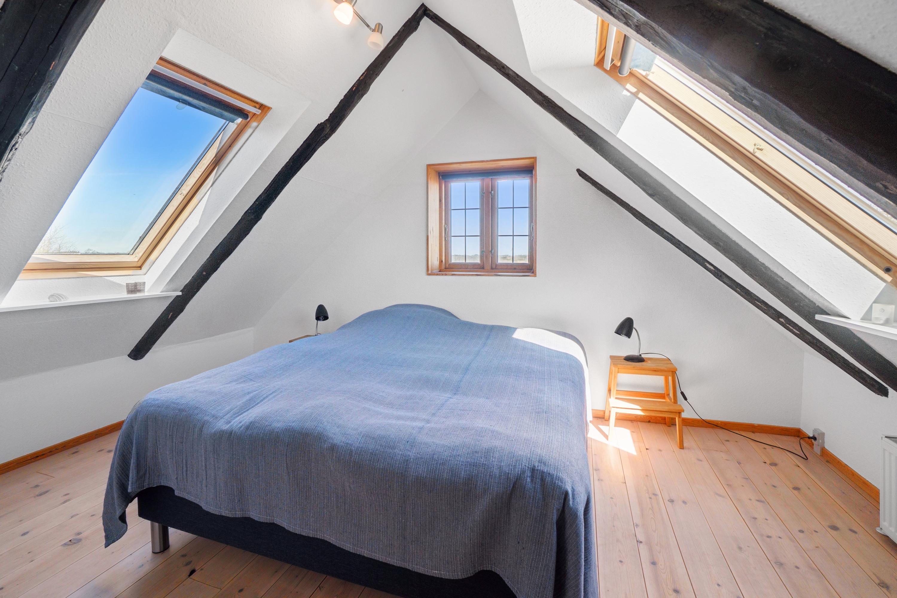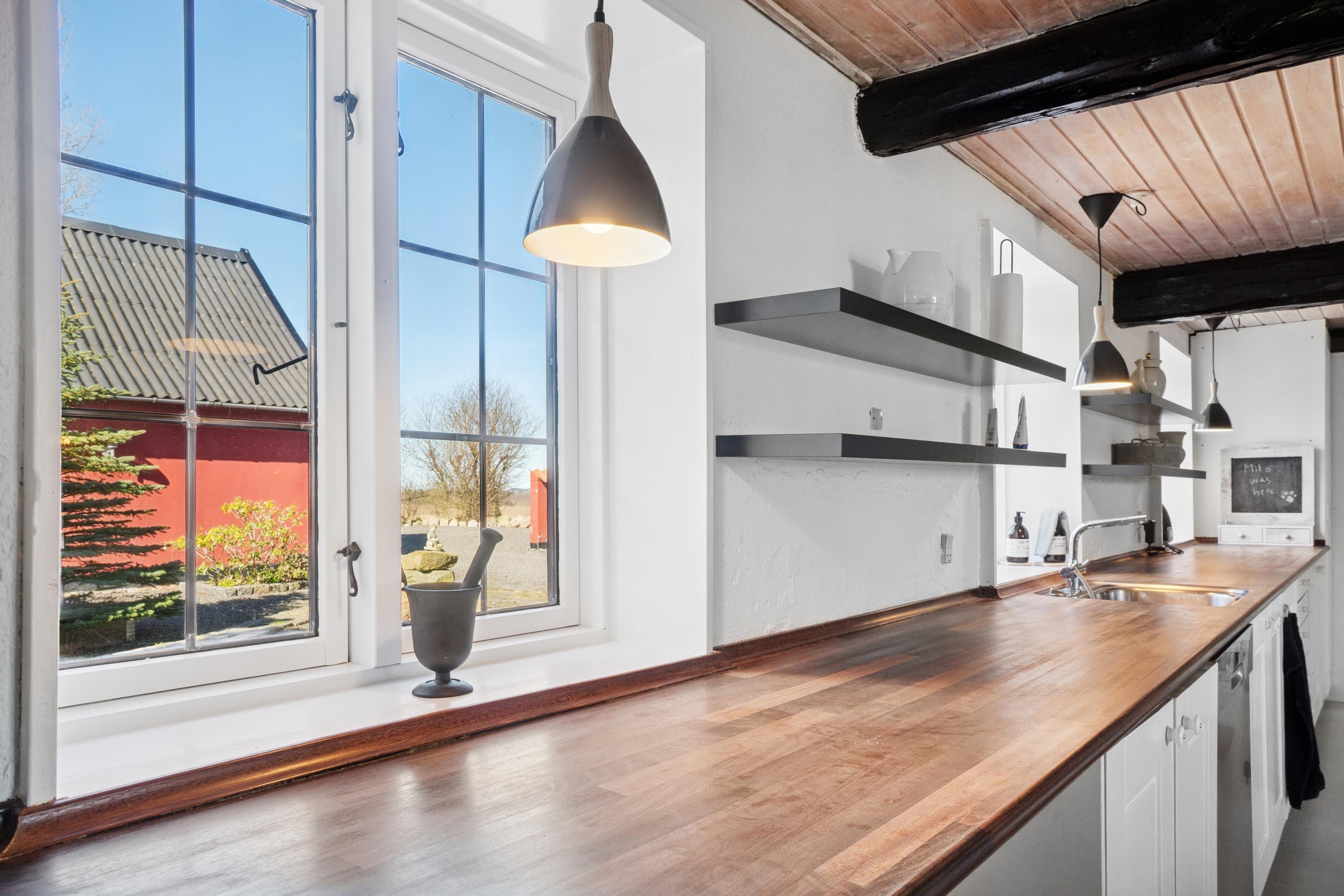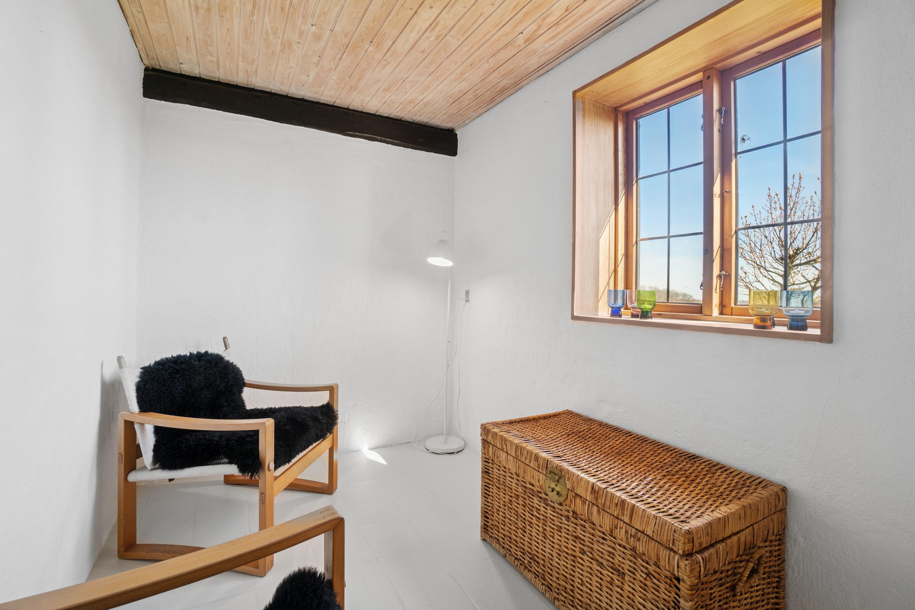 Huset ligger tilbagetrukket fra vejen i naturskønt område.