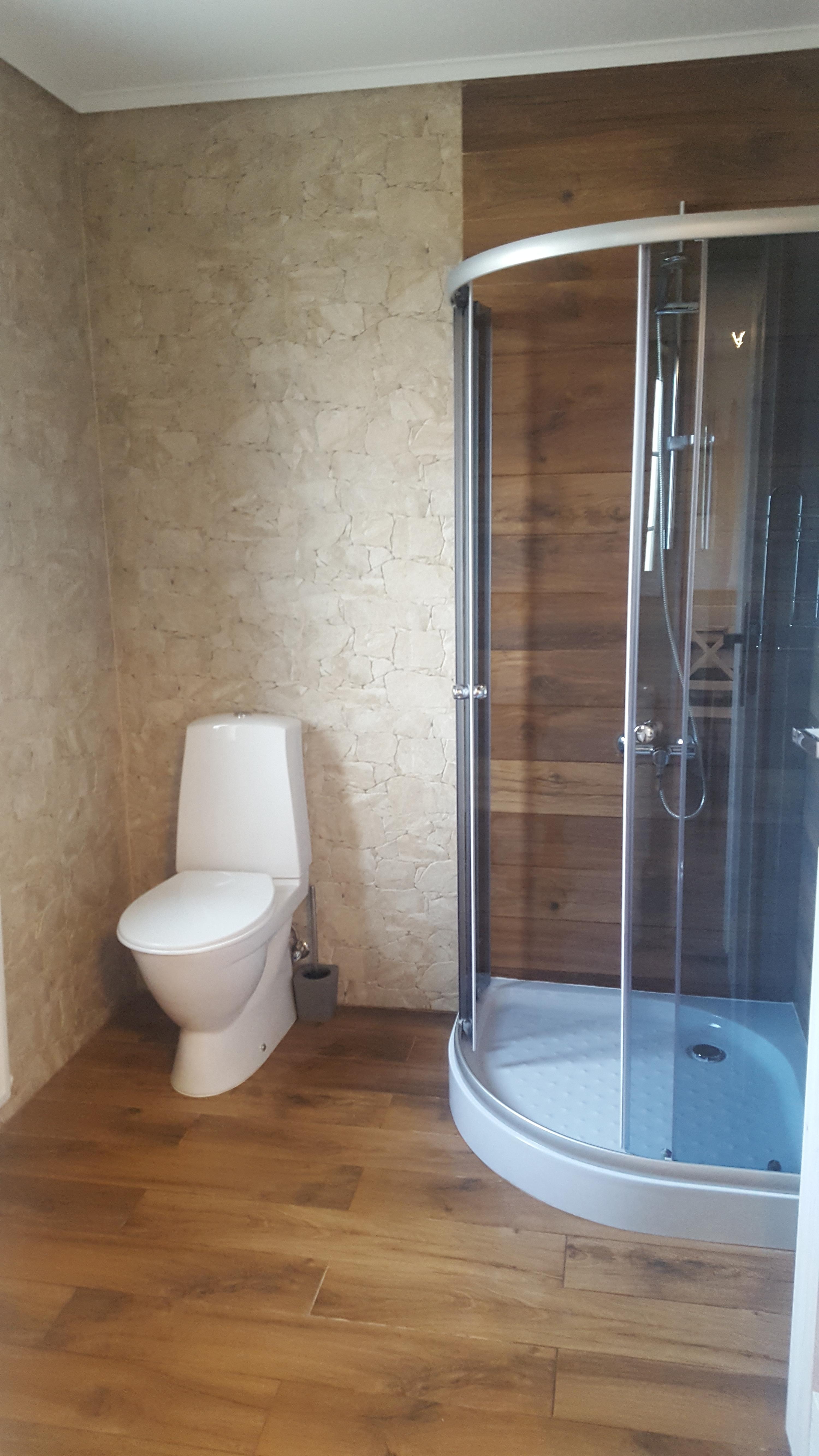 187 kvm bolig og 70 kvm kælder opdelt i 5 enheder, hver med eget bad og køkken.