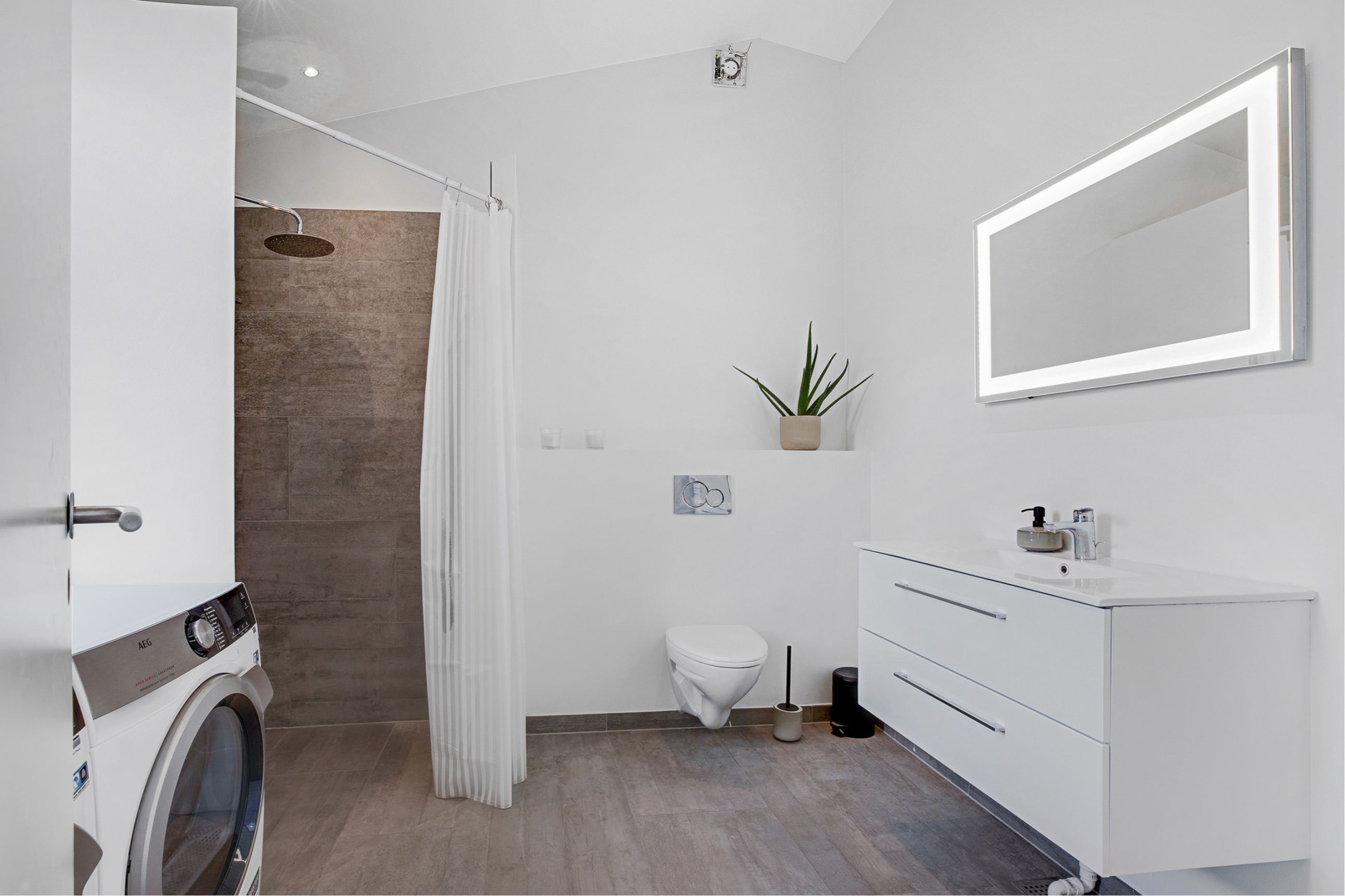 moderne og flot look med bl.a flotte klinkegulve, lækkert bryggers med toilet og bruseniche,