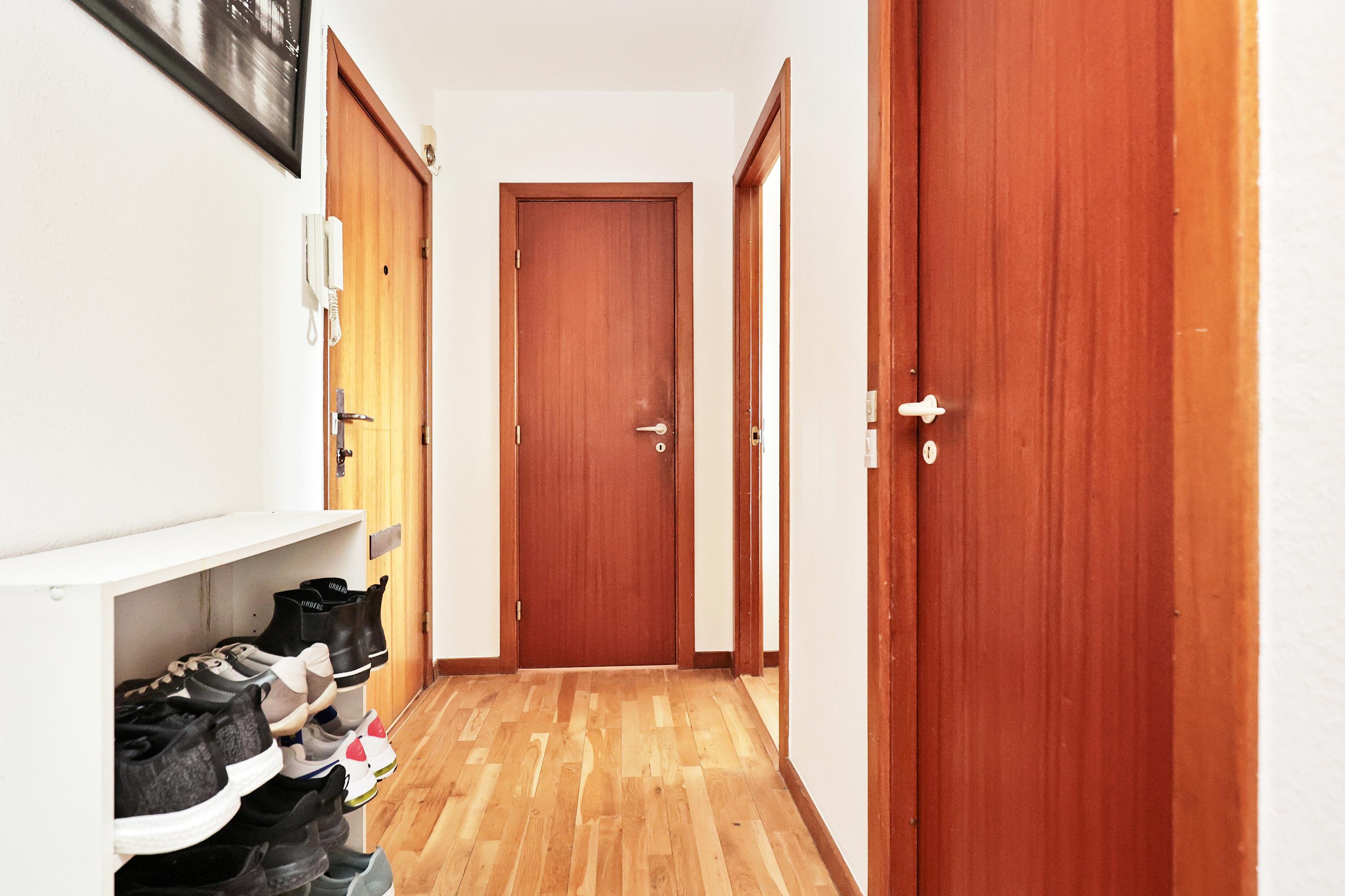 Fra hoveddøren findes en rummelig entré med plads til sko og overtøj, med et smart depotrum