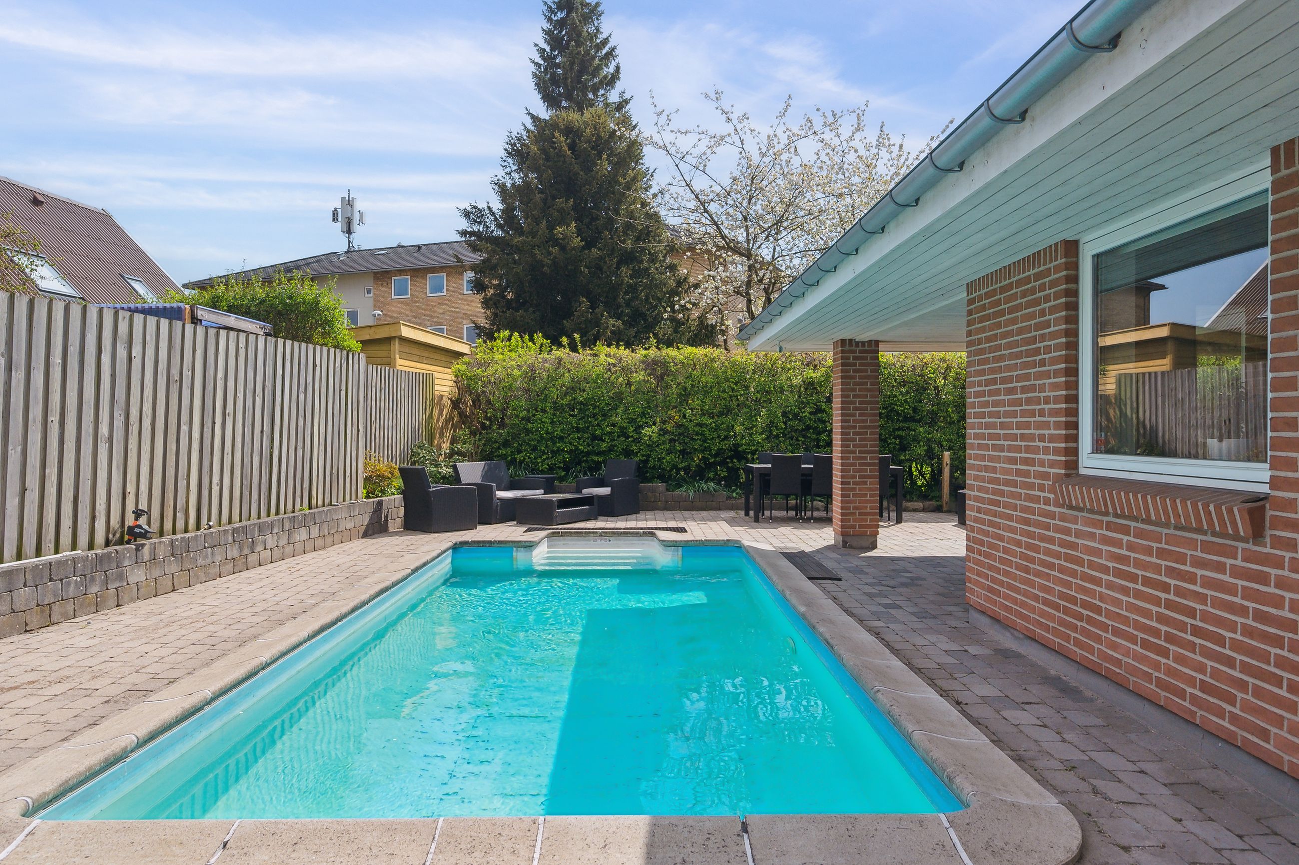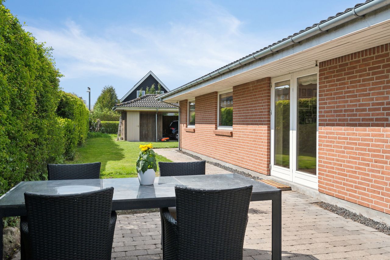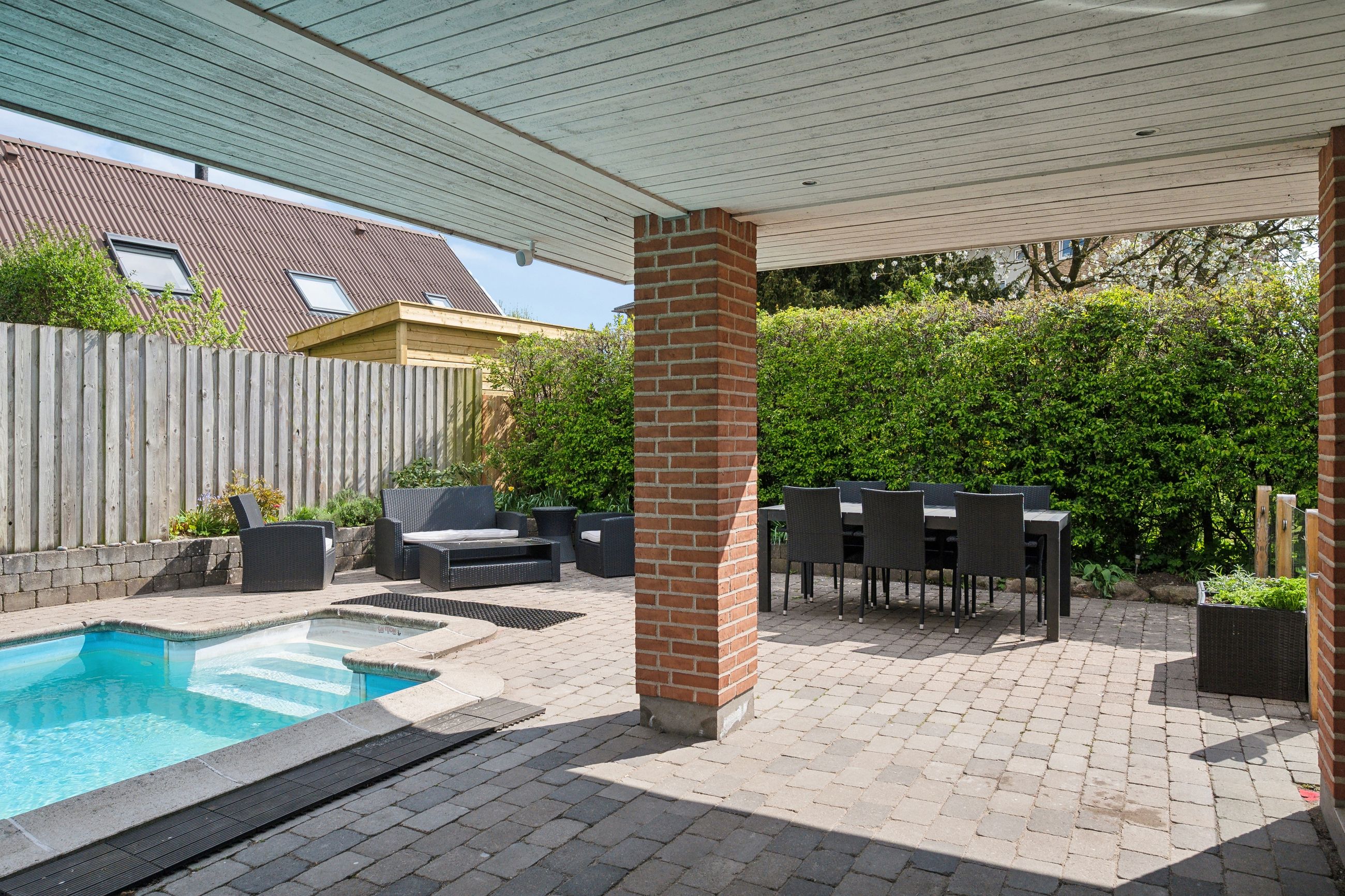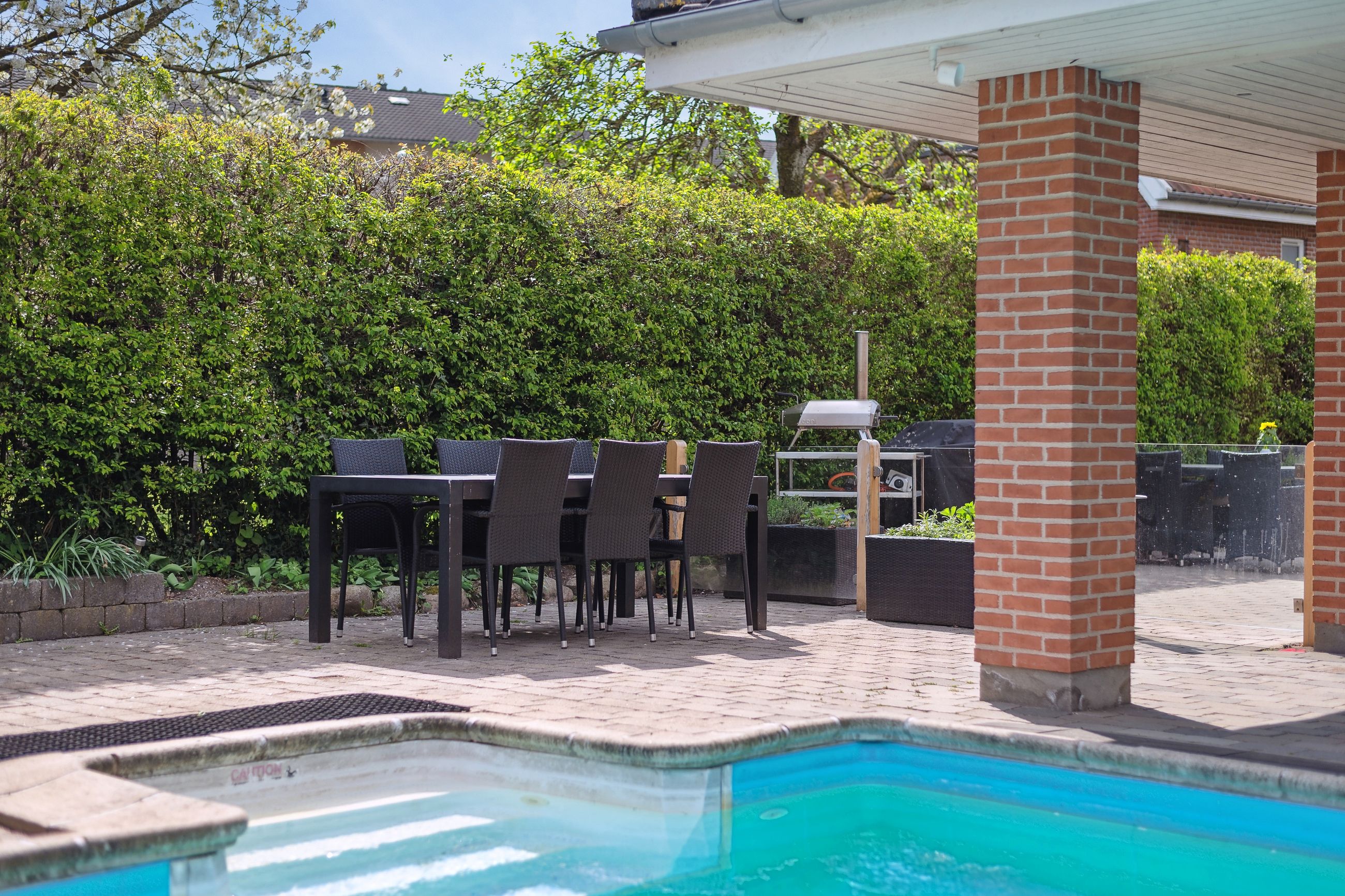 Udearealet er i særklasse. Den solrige og nemt vedligeholdte have rummer bl.a. en opvarmet pool med nyere pumpesystem – perfekt til lange sommerdage med familie og venner. Hertil kommer carport med integreret skur og god plads til opbevaring.
