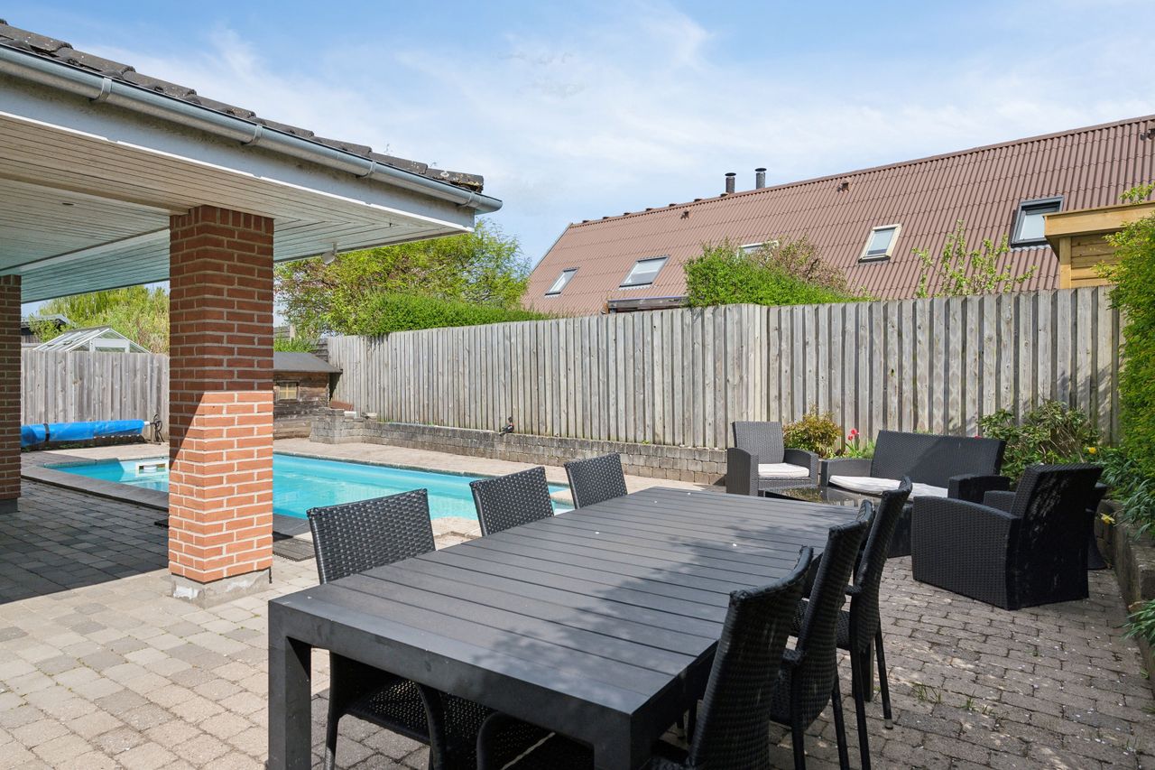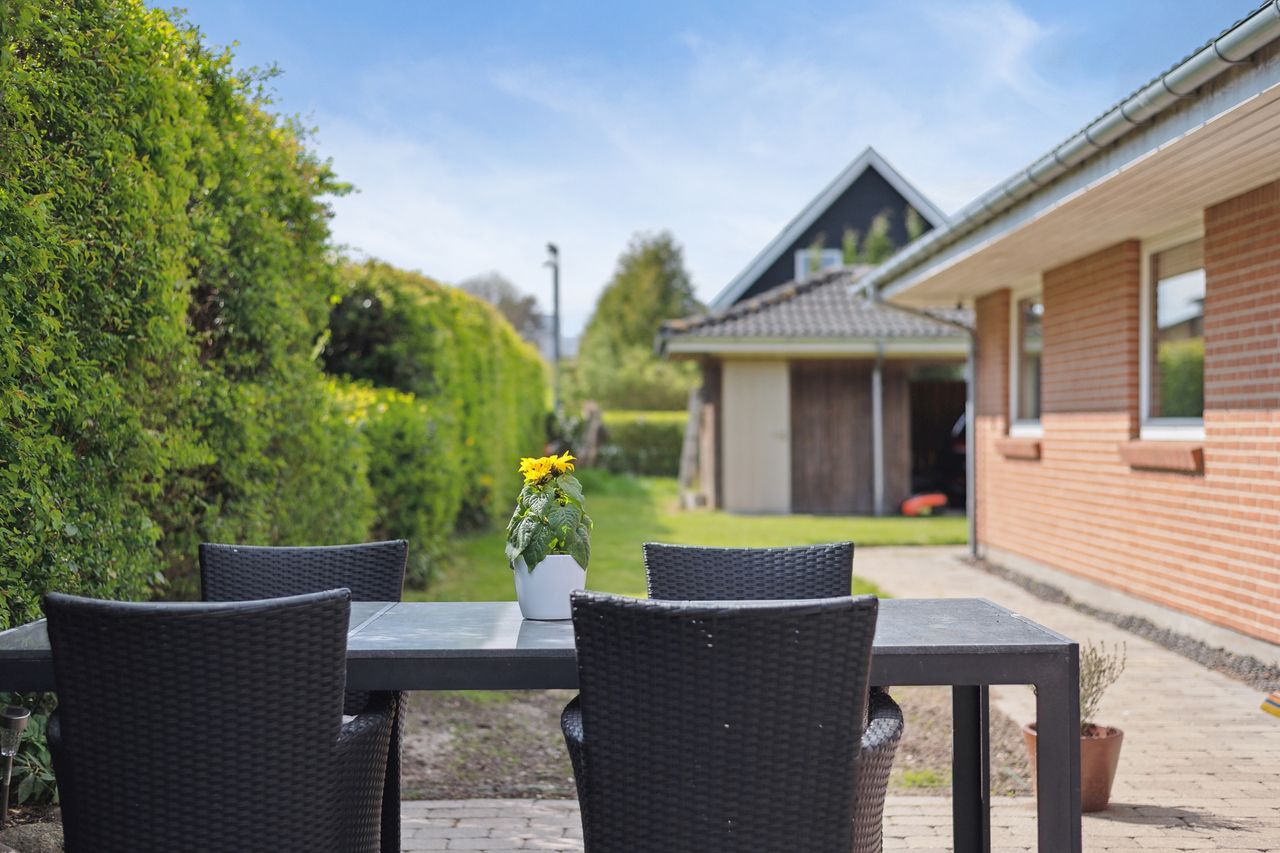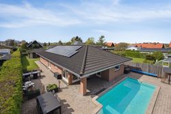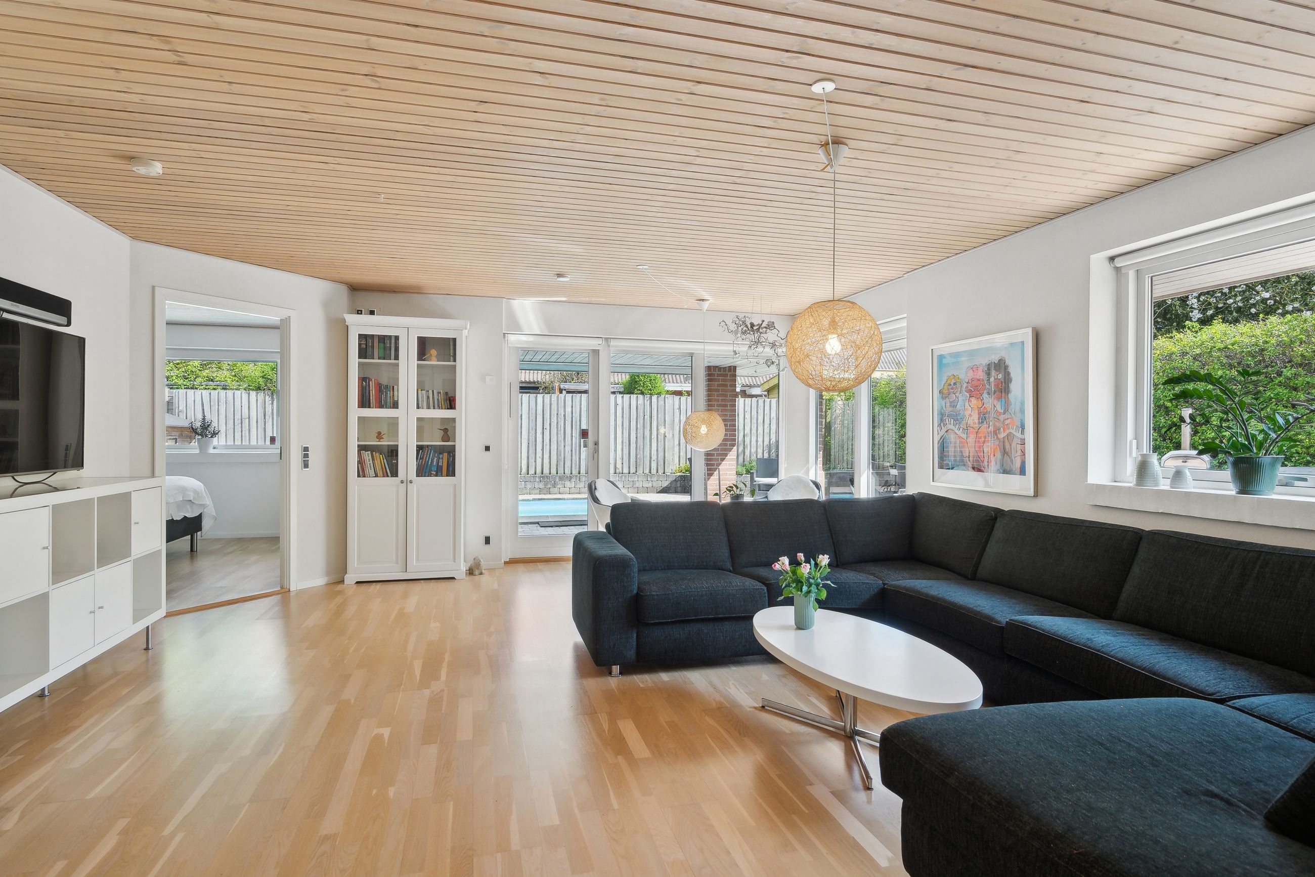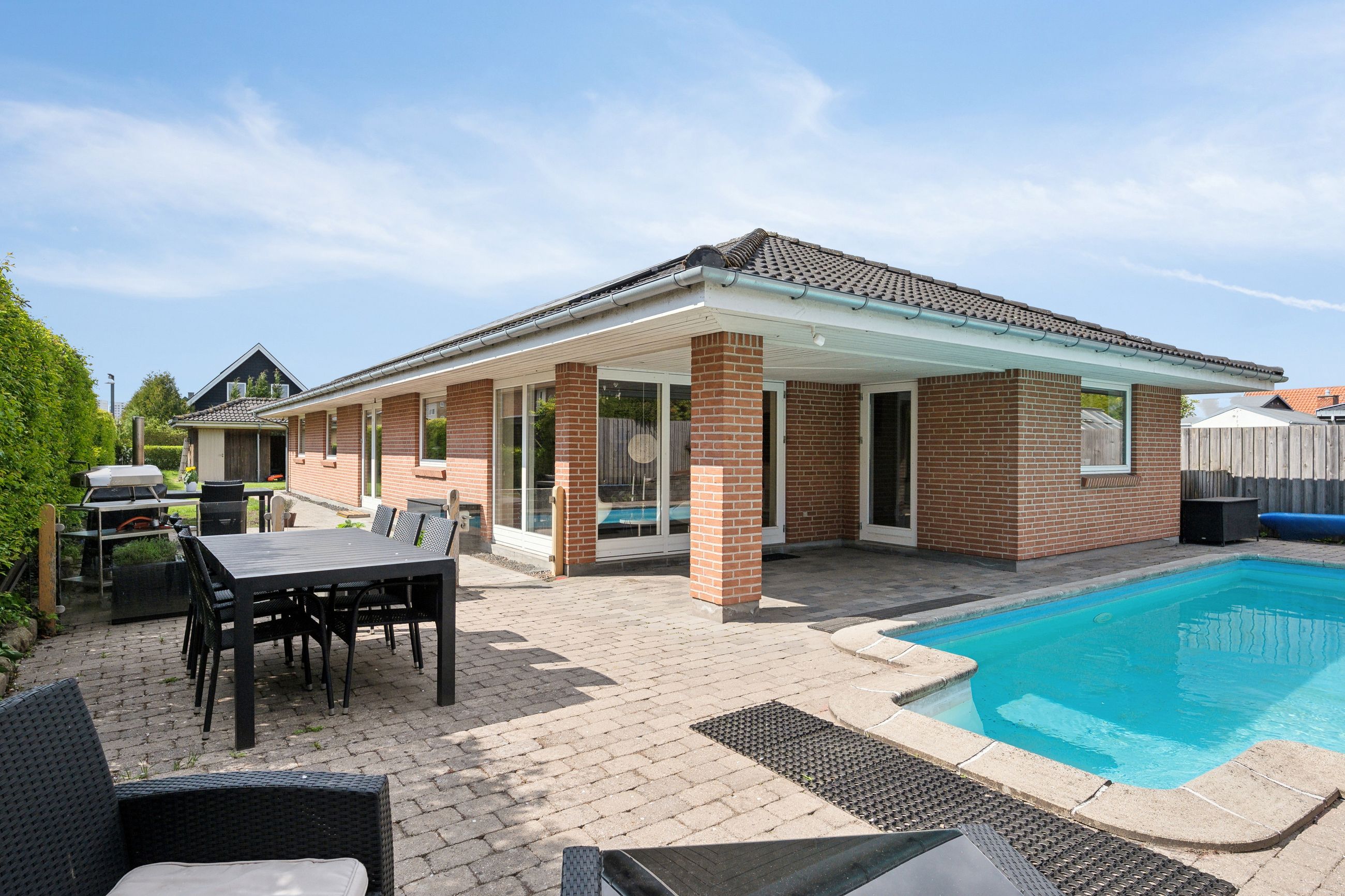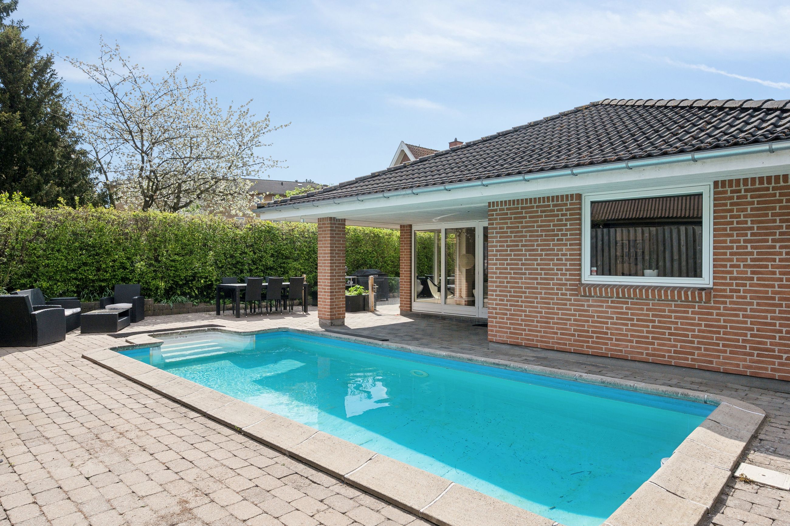 Udearealet er i særklasse. Den solrige og nemt vedligeholdte have rummer bl.a. en opvarmet pool med nyere pumpesystem – perfekt til lange sommerdage med familie og venner. Hertil kommer carport med integreret skur og god plads til opbevaring.