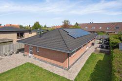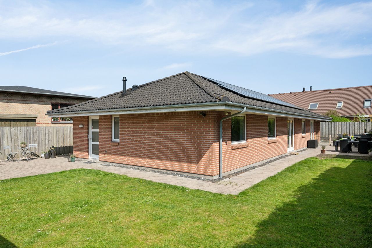Villaen byder på 162 moderne og veludnyttede kvadratmeter med en gennemtænkt planløsning. Her får du hele fire værelser – heraf et rummeligt master bedroom med eget badeværelse – et stort og lyst køkken/alrum, en hyggelig stue med udgang til en overdækket terrasse samt et praktisk bryggers. Huset har en lav energiklasse, er udstyret med solceller og fremstår gennemført og indflytningsklart.