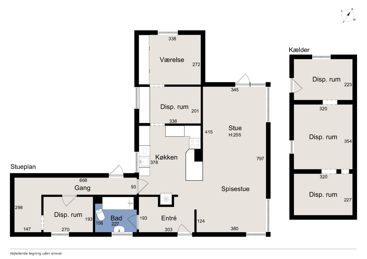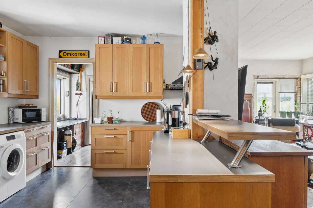 Eksisterende bolig: Den nuværende bolig er et praktisk projekt for den, der ønsker at renovere og sætte sit eget præg på boligen. Med et areal på 91 m2 plus kælder er der potentiale for at opgradere boligen til et moderne hjem.