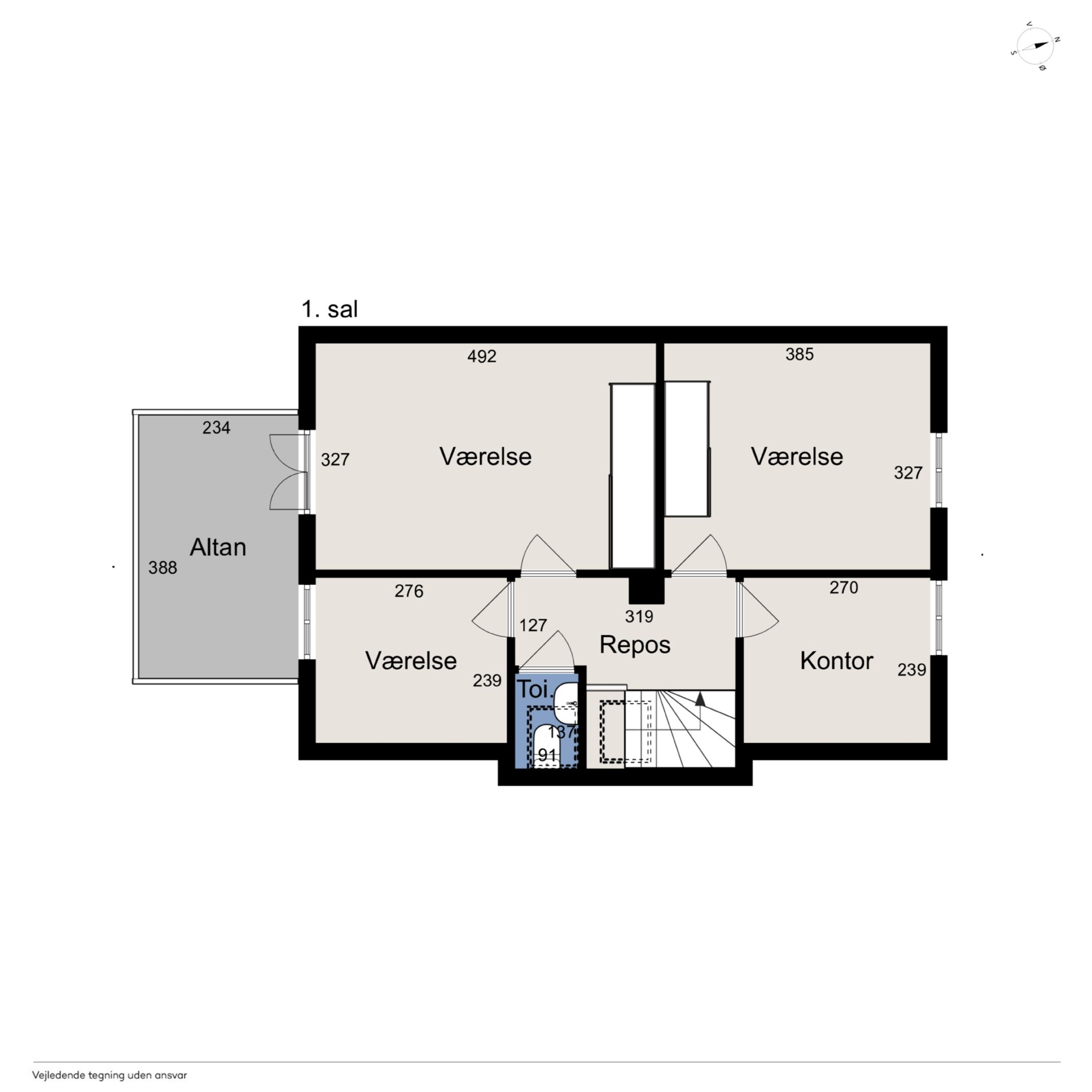 På førstesalen finder du fire rummelige værelser – alle med gode indretningsmuligheder til både børn, kontor eller gæsteværelser. Hertil kommer et praktisk toilet, som understøtter den gode planløsning og gør hverdagen nemmere for hele familien.