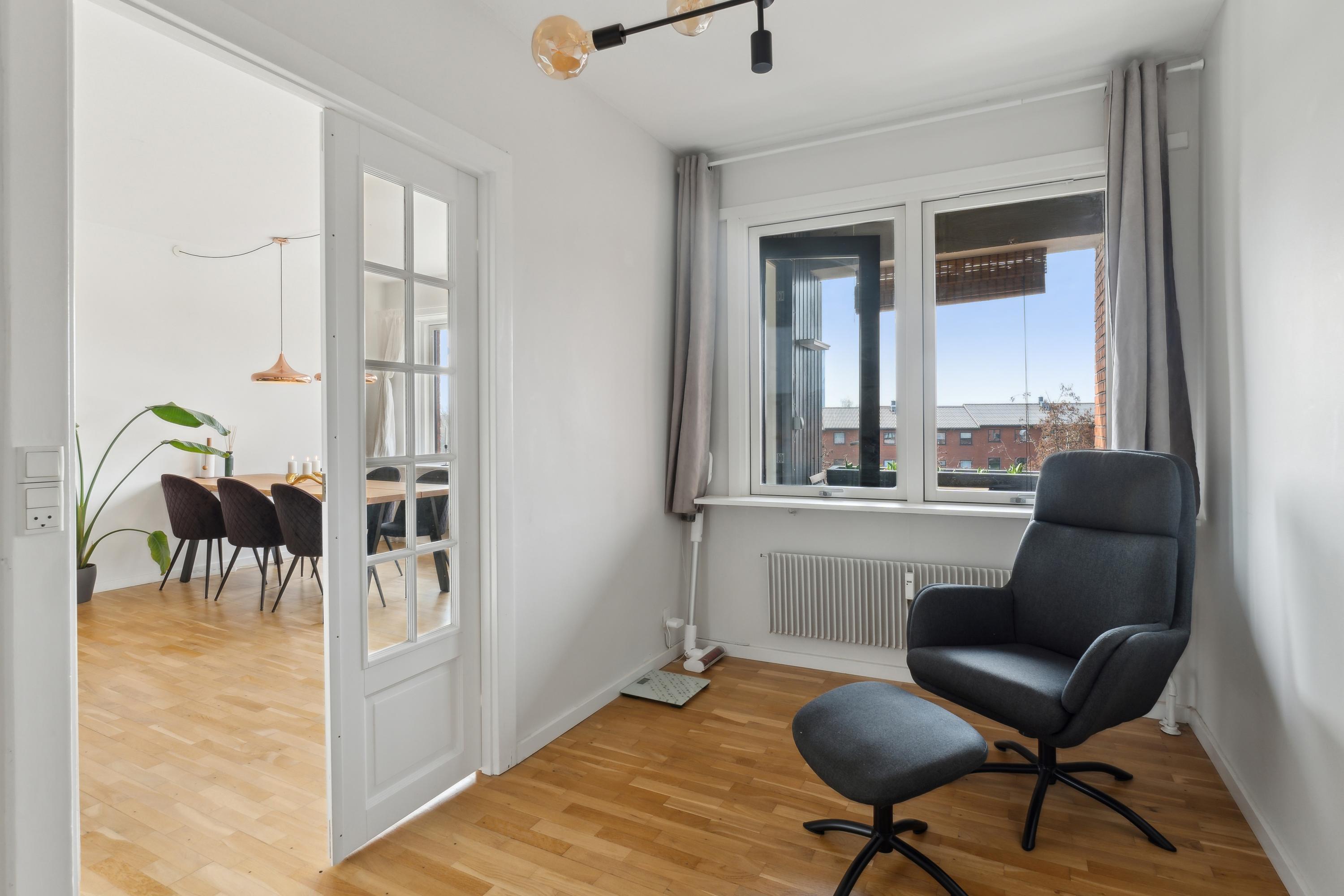 Drømmer du om en centralt beliggende lejlighed i Glostrup? Her får du en skøn 3-værelses bolig øverst på 2. sal tæt på Glostrup Station og Shoppingcenter, hvor du kan nå