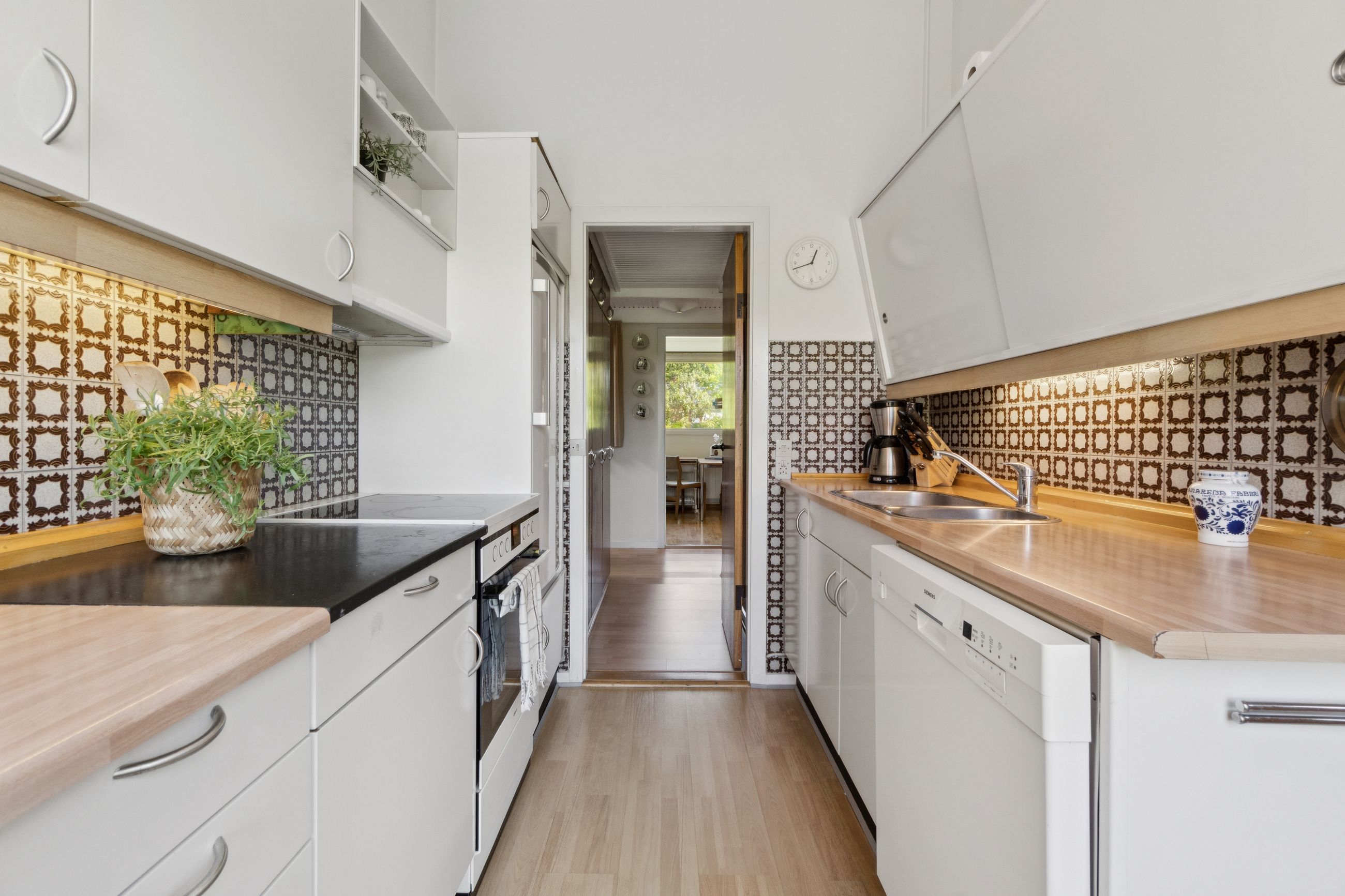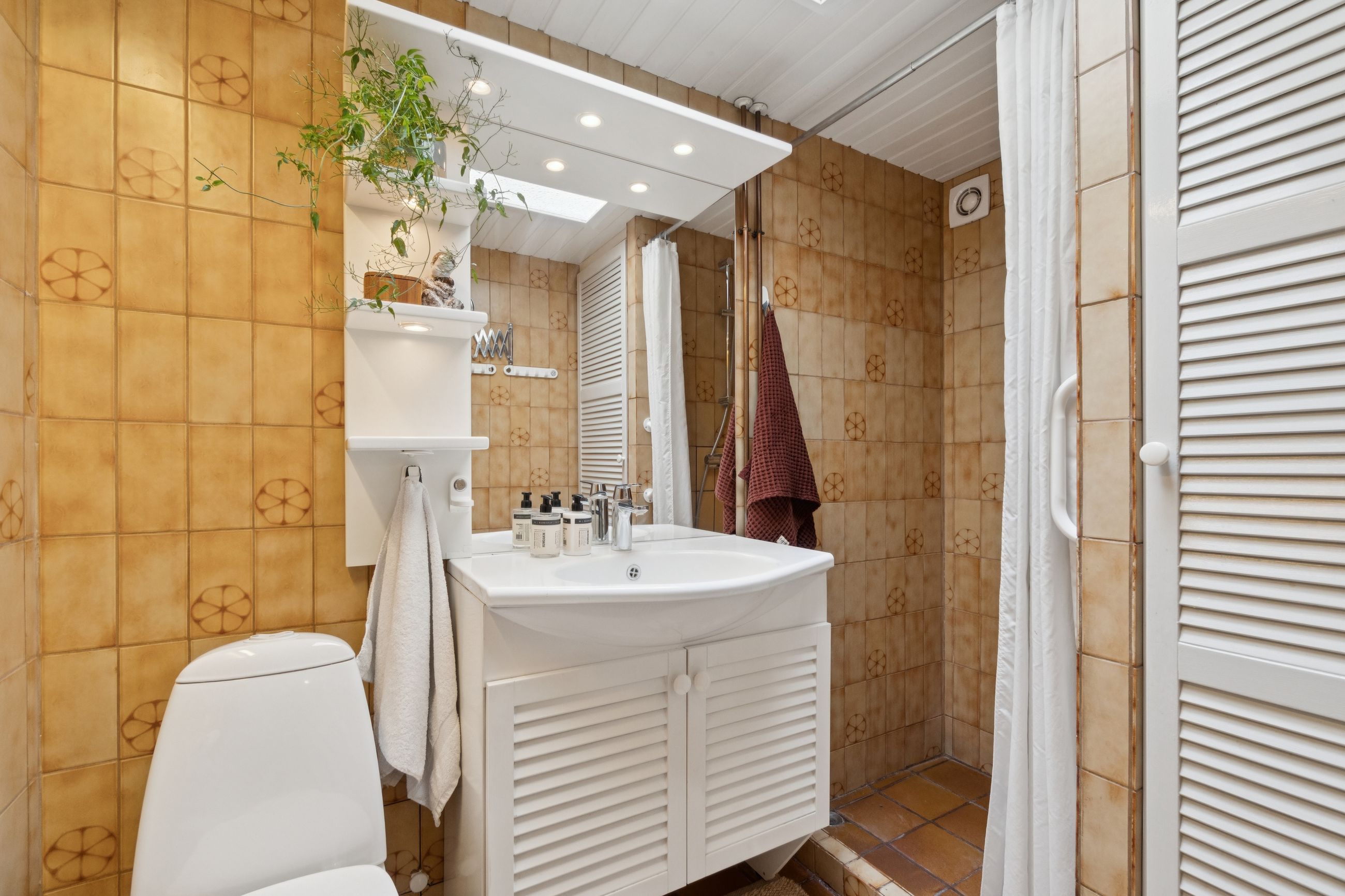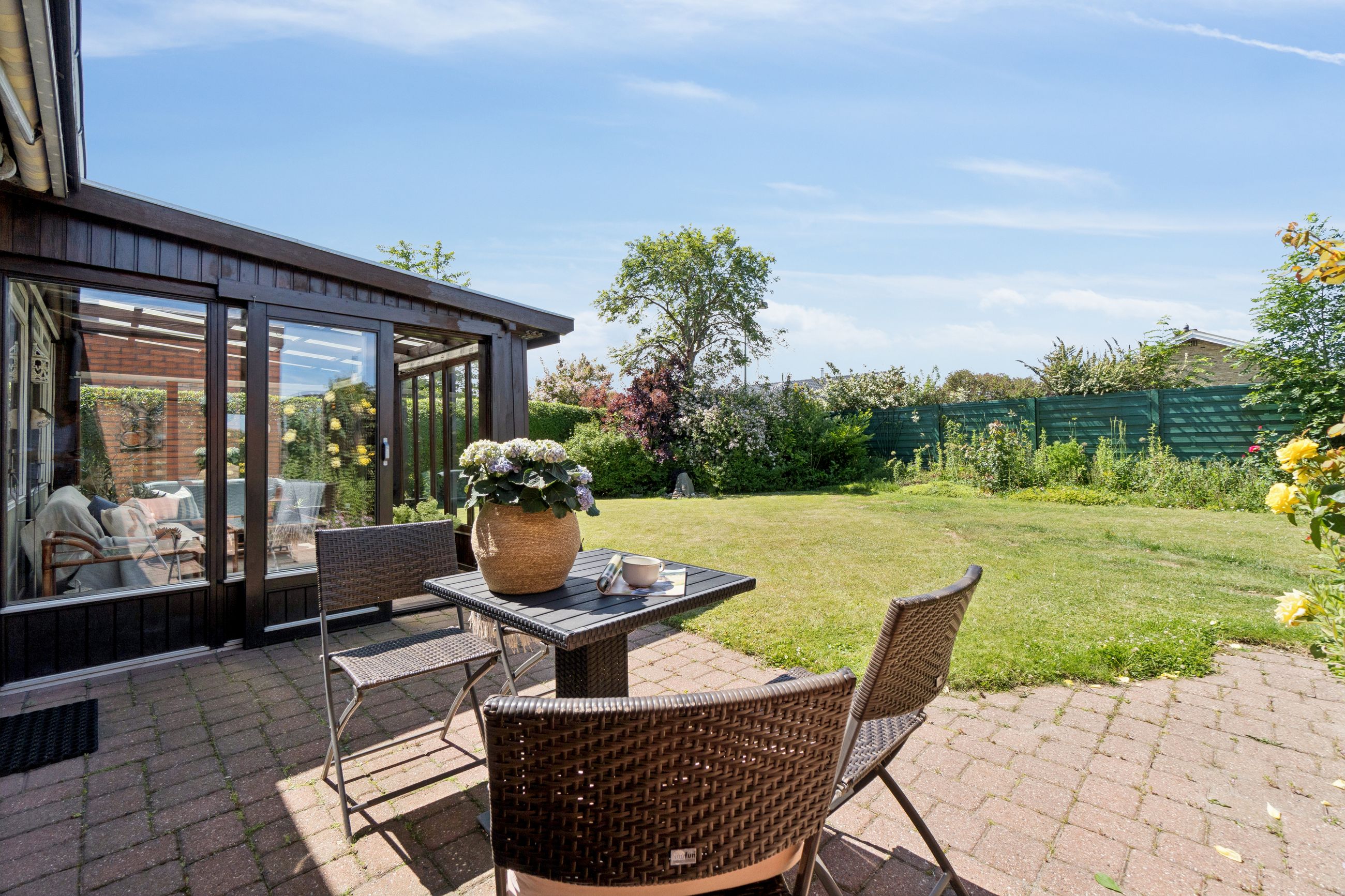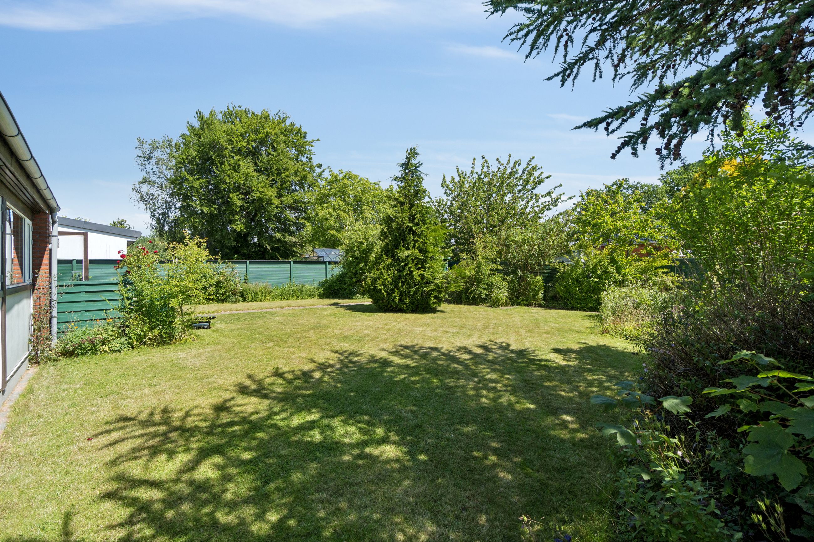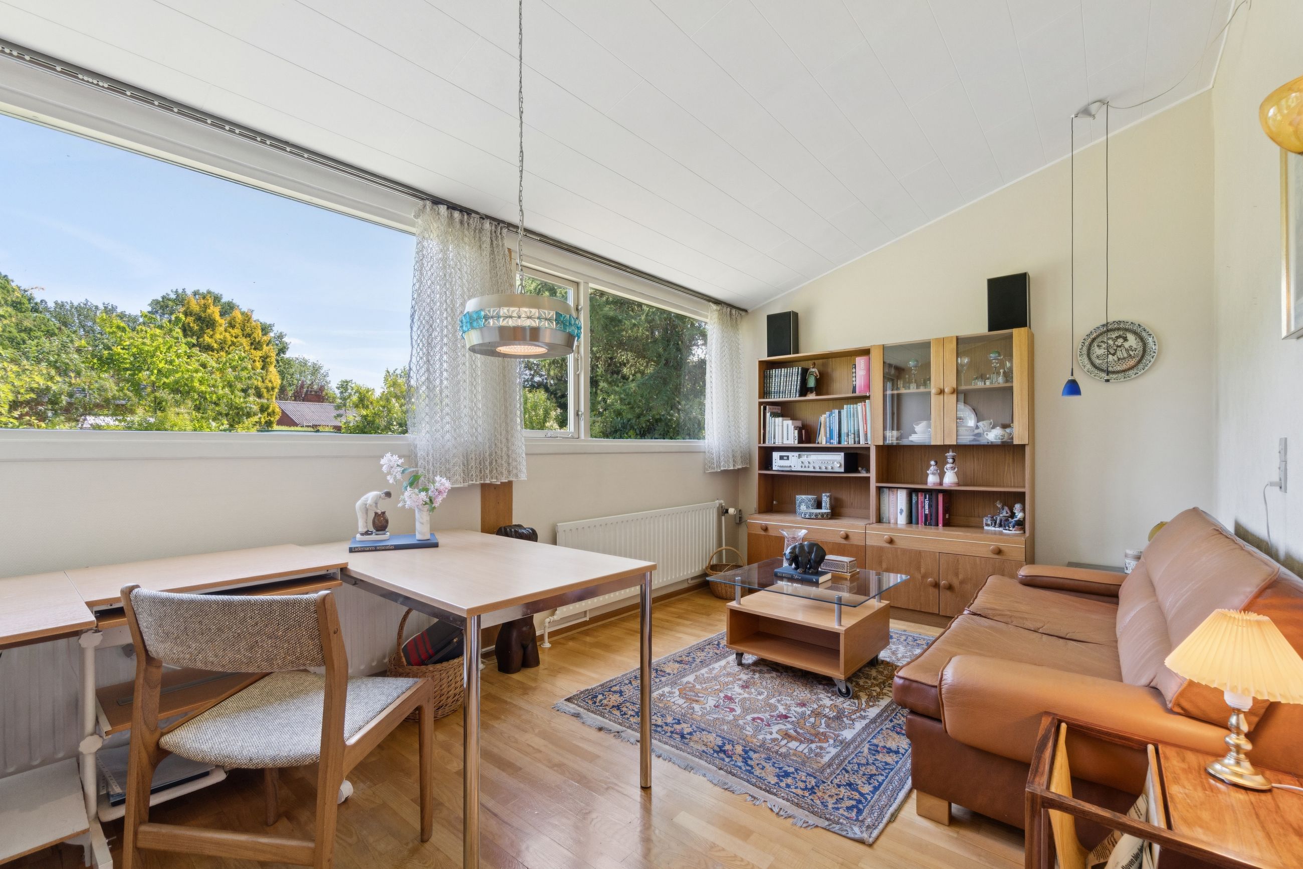 Meget rummelig entré med klinkegulv og garderobe. Fra entreen er der adgang til husets velholdte køkken, hvorfra der er adgang til en skøn, stor og meget højloftet (frit til kip) opholdsstue. Køkken og stue er kun adskilt med en let væg, som er nem at bortskaffe, hvis man ønsker et åbent køkken. Fra stuen er der udgang til haven samt en vestvendt havestue. Huset byder endvidere på et soveværelse, 2 børneværelser (pt. sammenlagte), badeværelse med brusebad, gæstetoilet samt et rummeligt brygges med naturgasfyr. - Huset har tillige et anvendeligt loftrum.