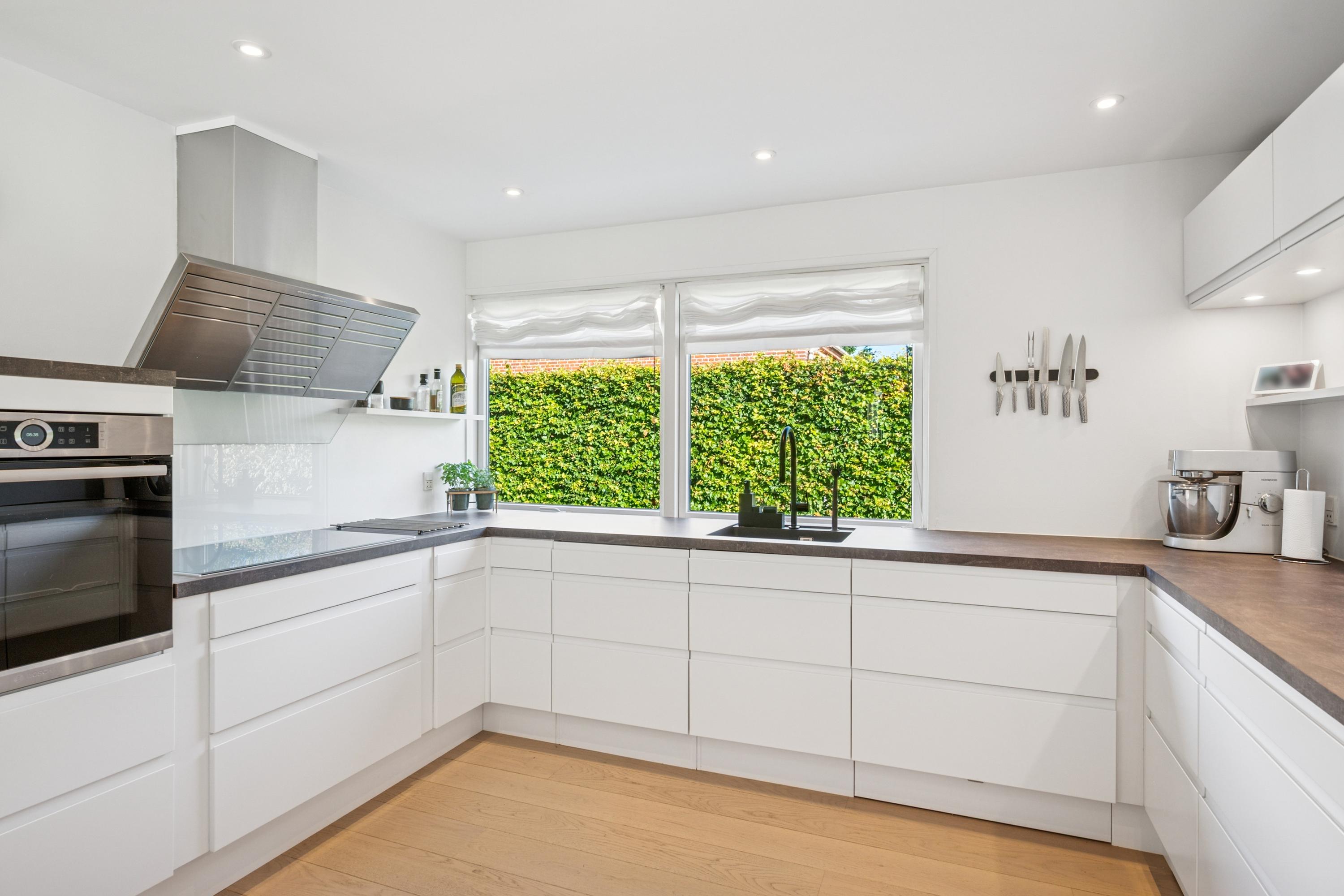 Villaen byder på et lyst og rummeligt køkken i åben forbindelse til stuen, hvor samvær og hverdag