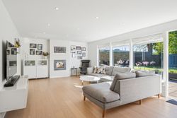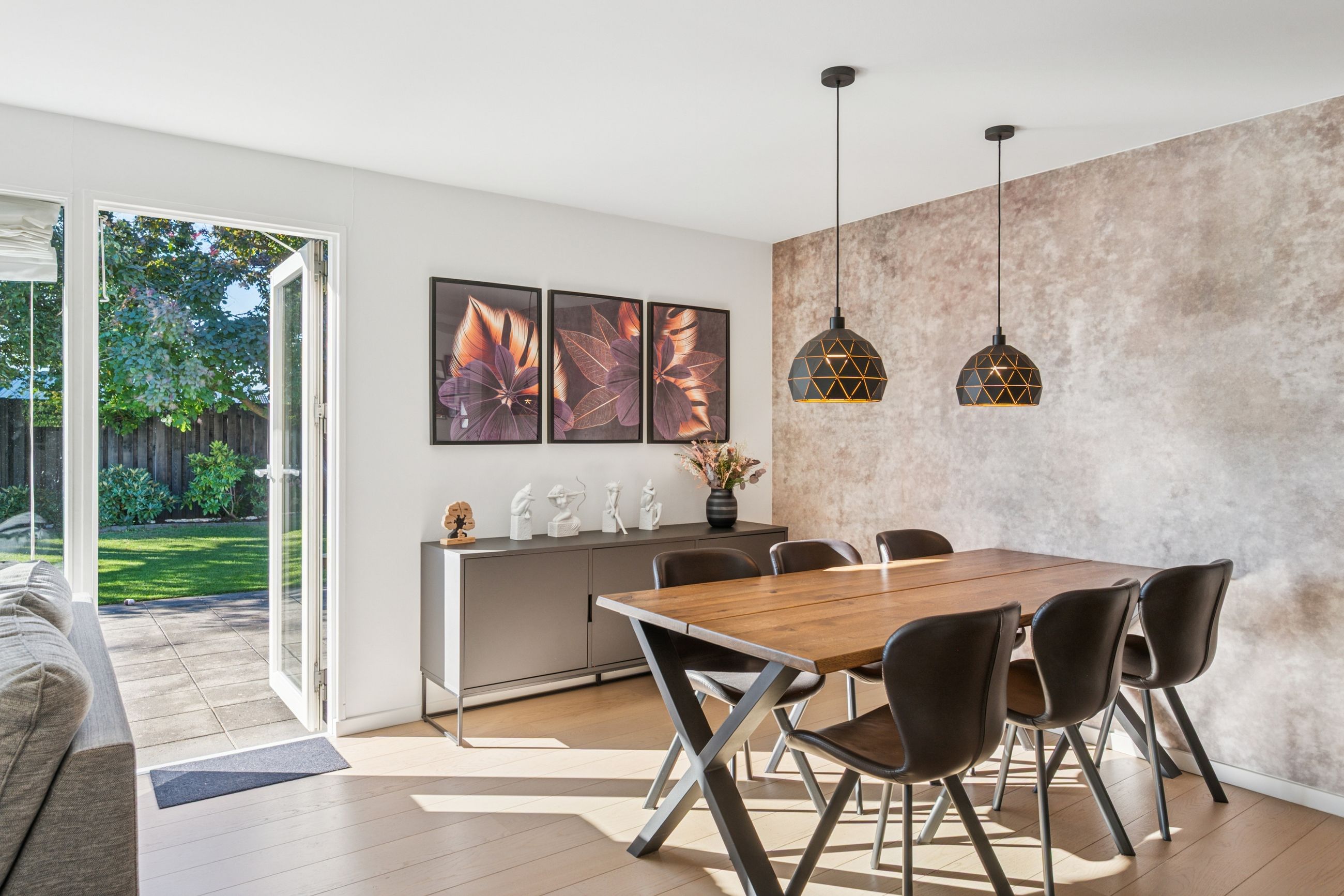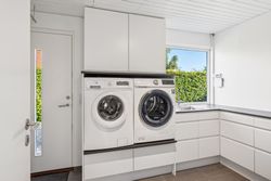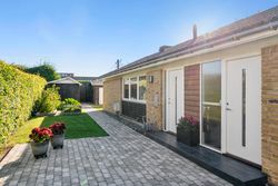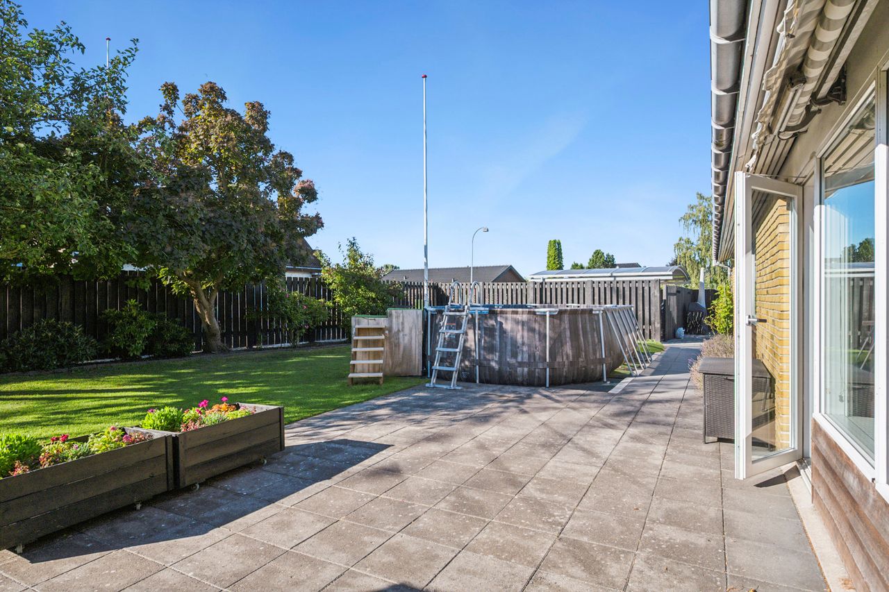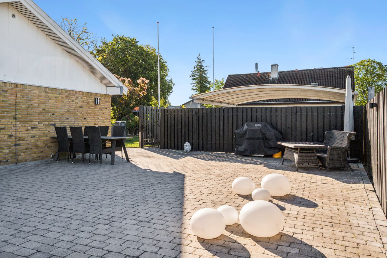 Villaen byder på et lyst og rummeligt køkken i åben forbindelse til stuen, hvor samvær og hverdag naturligt smelter sammen. Herfra er der adgang til haven, så ude- og indeliv let kan forenes.