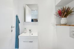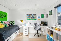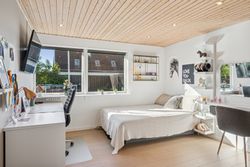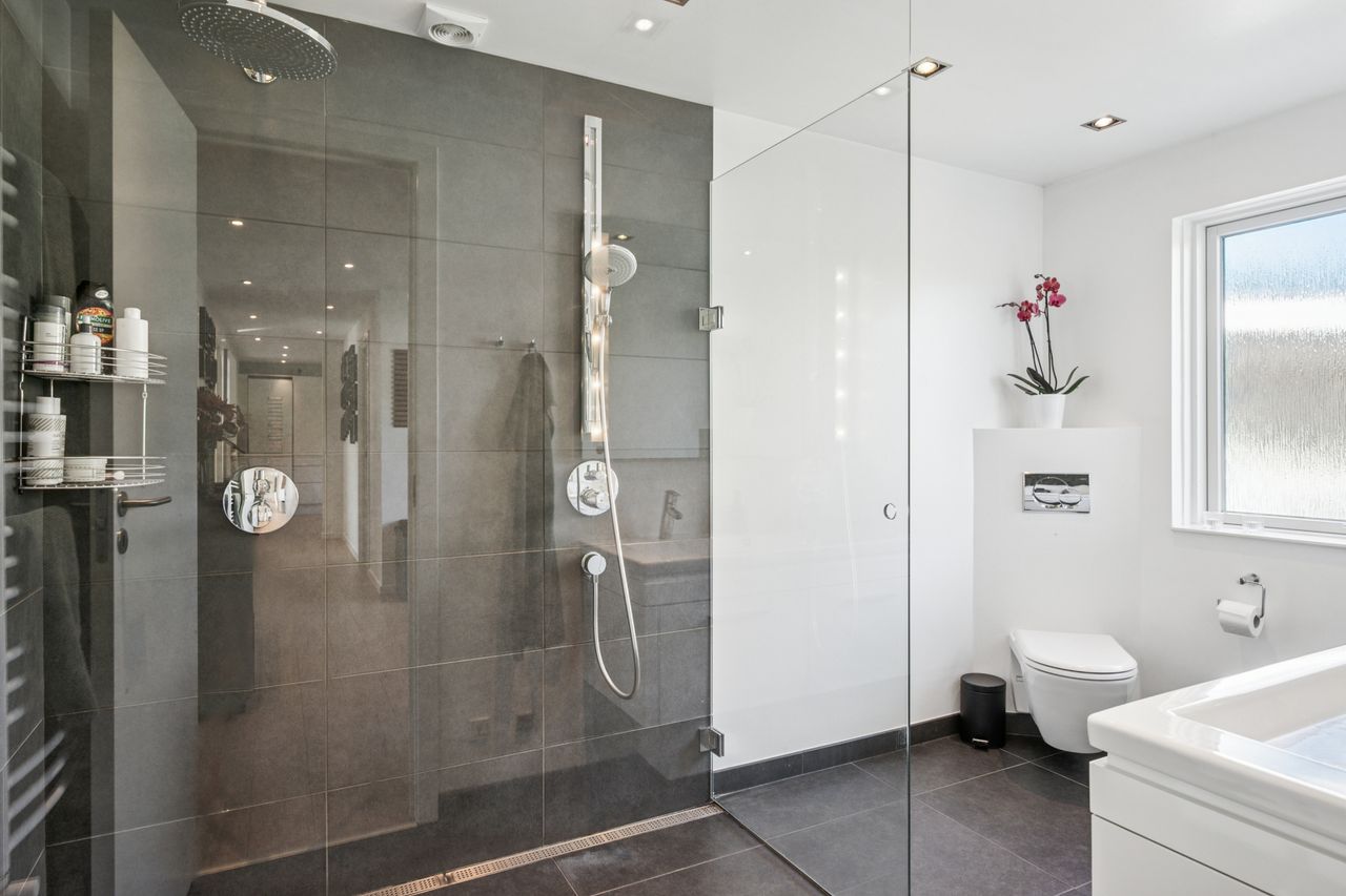 Boligen rummer fire gode soveværelser, som giver plads til både børn, forældre, gæster eller hjemmekontor. Hertil kommer et stort og stilrent badeværelse, et praktisk bryggers samt et gæstetoilet. Hele huset er udstyret med gulvvarme (undtagen i bryggers og gæstetoilettet), som sikrer en behagelig varme og et godt indeklima året rundt.