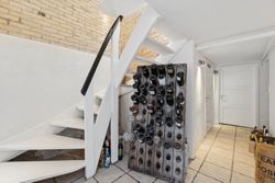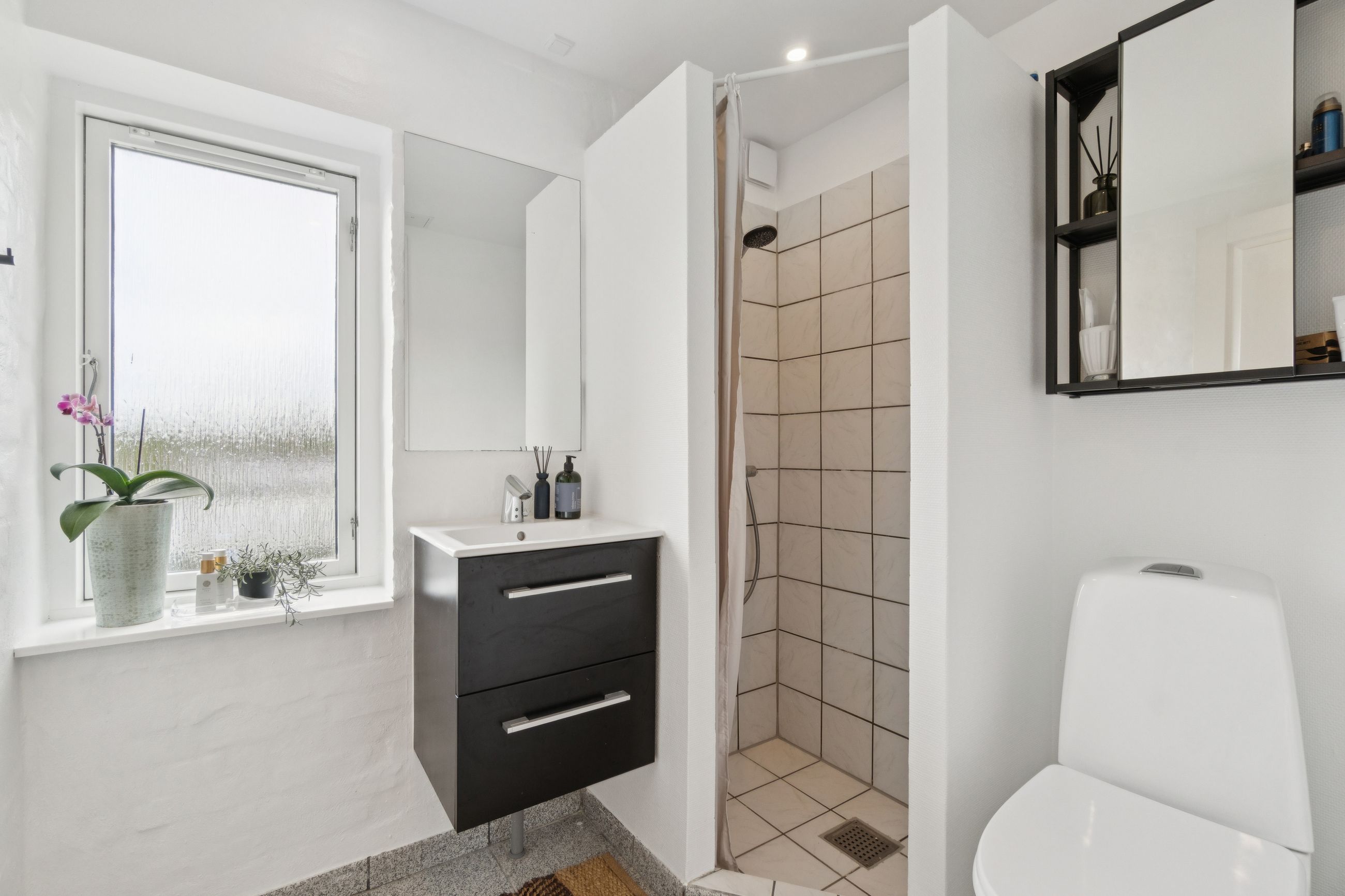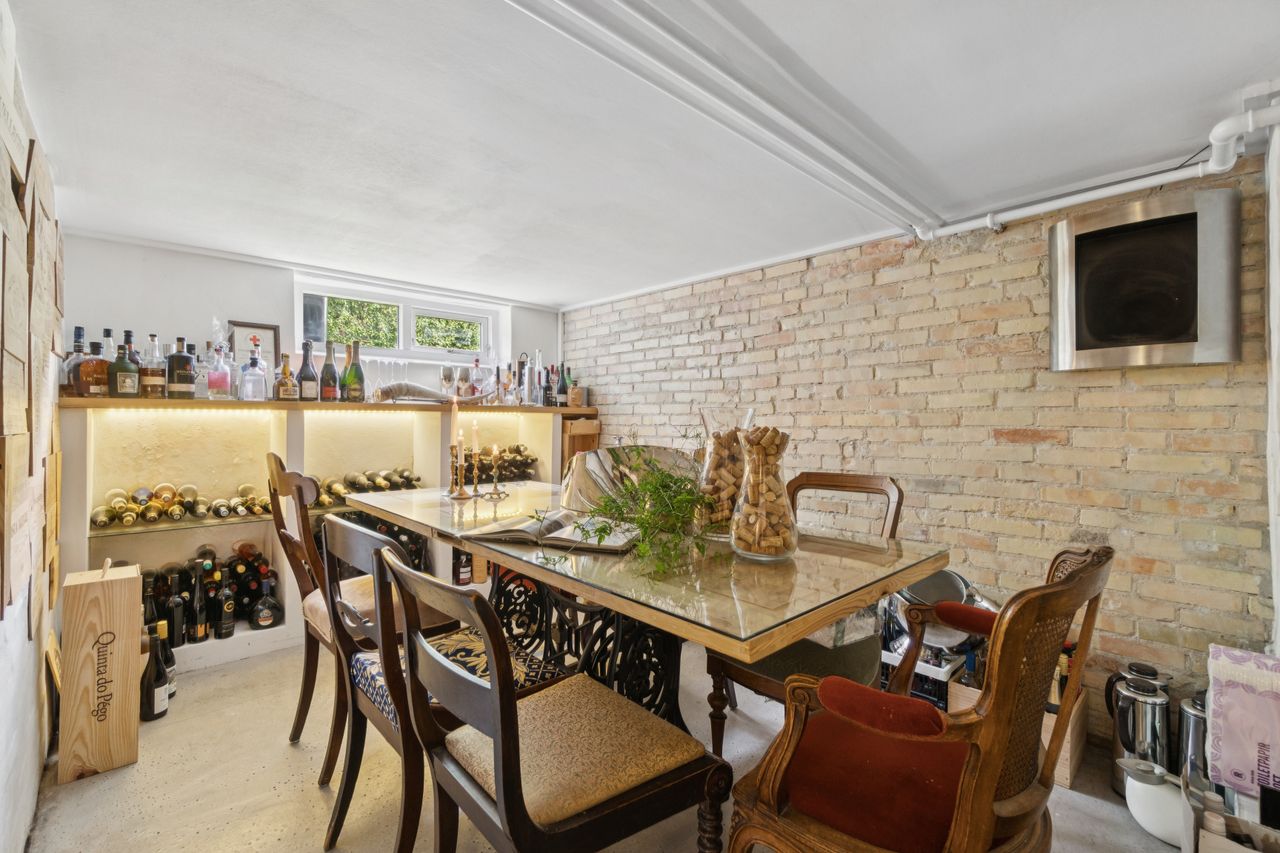 Den højloftede kælder er tør og praktisk indrettet med flisebelagt fordelingsgang, stort badeværelse, disponibelt rum til opbevaring, bryggers med vaskefaciliteter og adgang til boligens vinkælder – det perfekte sted til at samle vennerne til vinsmagning i stemningsfulde omgivelser.