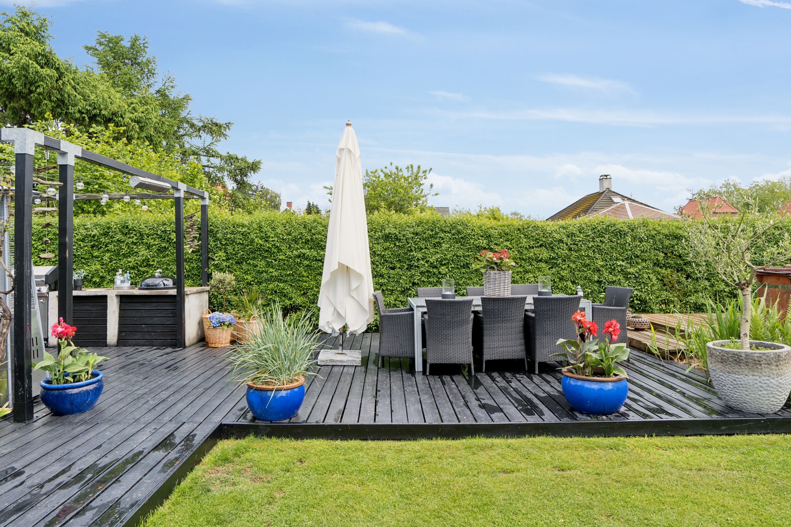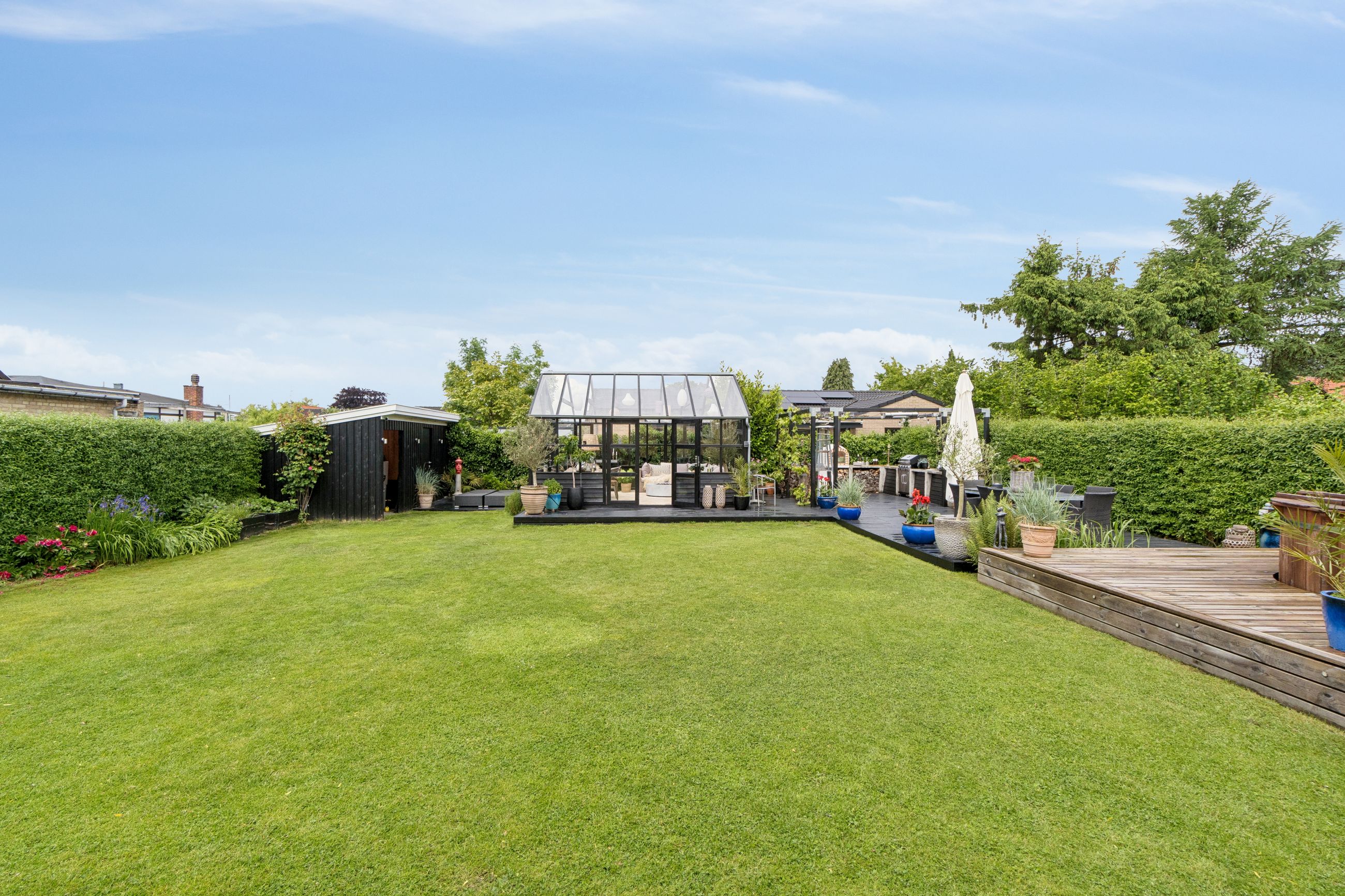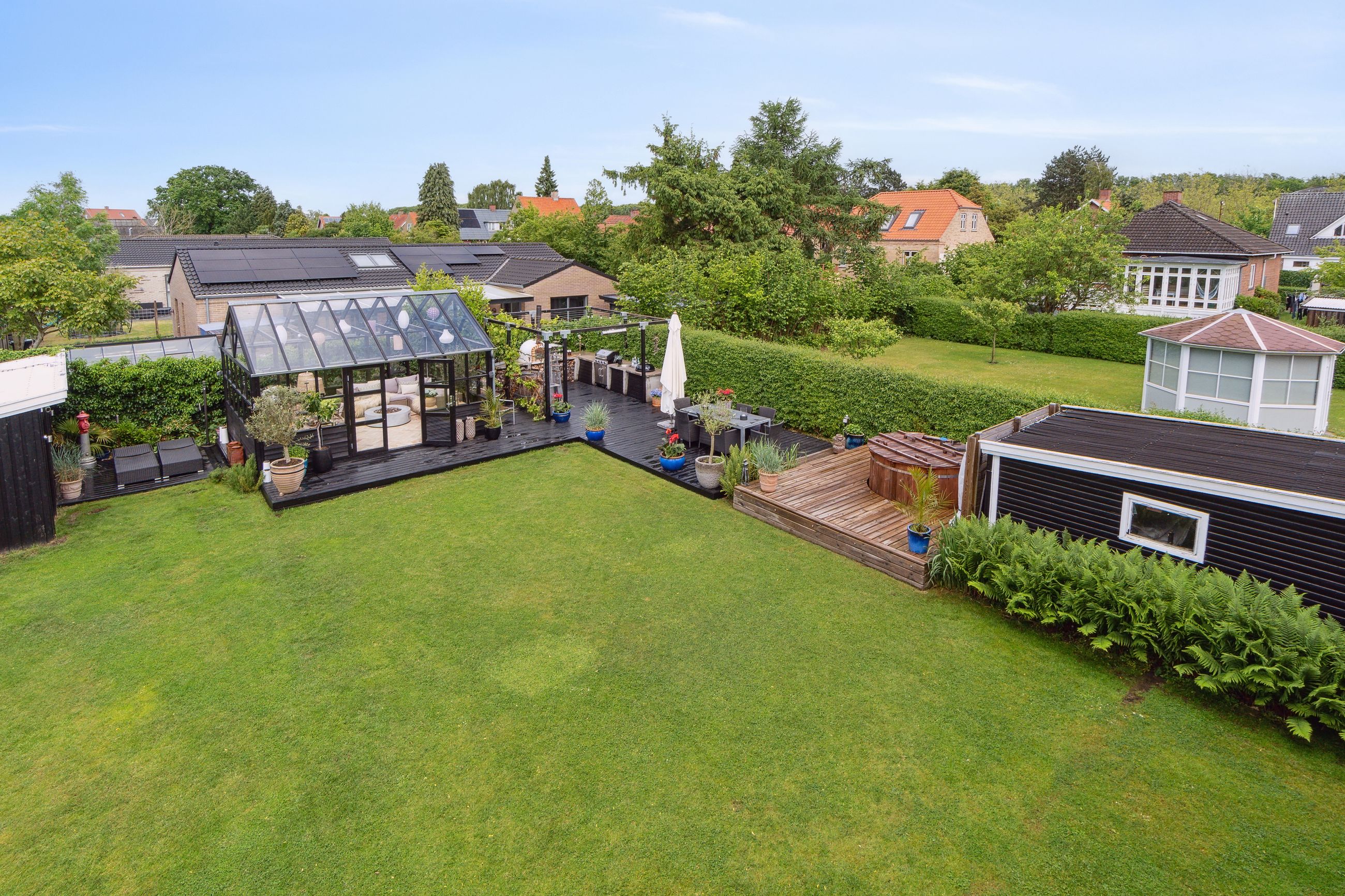 Bagerst i den frodige og solrige have venter et imponerende uderum, der ganske enkelt skal opleves. Her er opført en rustik træterrasse med overdådigt udekøkken i ægte sydlandsk stil – opført i beton og træ, og udstyret med brændefyret pizzaovn, indbygget grill, mulighed for fadølsanlæg, håndvask og masser af bordplads til både madlavning og hygge. Herfra er der direkte adgang til det charmerende orangeri, opført i sort træ med loft til kip, store sprossevinduer hele vejen rundt og æstetisk gulvbelægning i gamle mursten. Orangeriet har strøm og plads til både spisebord og loungemøbler – perfekt til sommerens Tour de France eller lange aftener med et godt glas hvidvin.