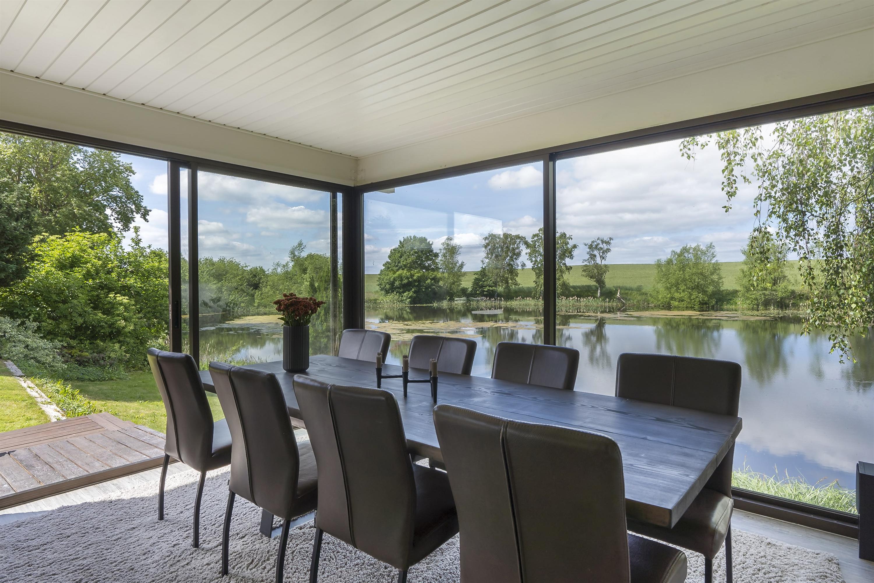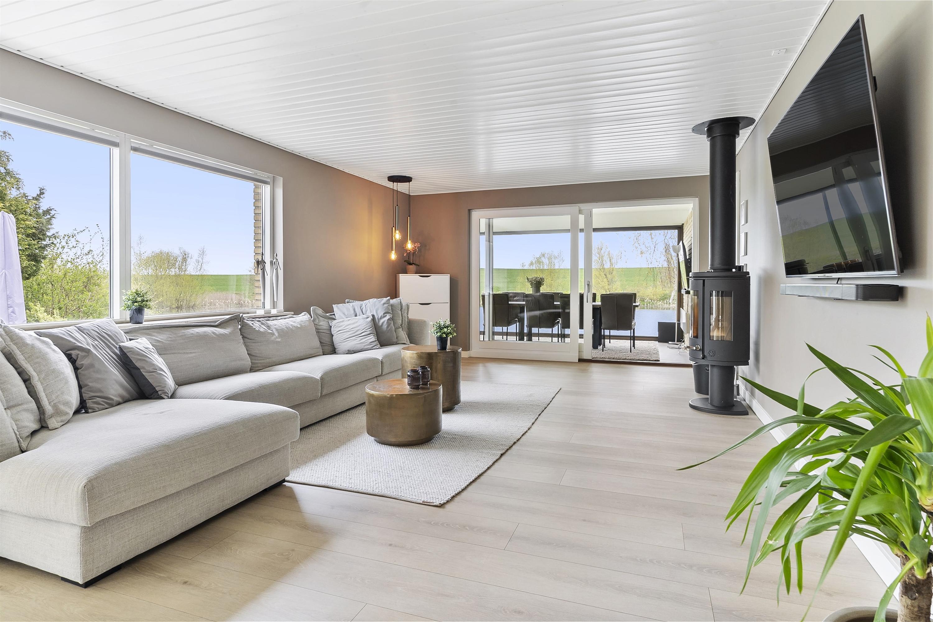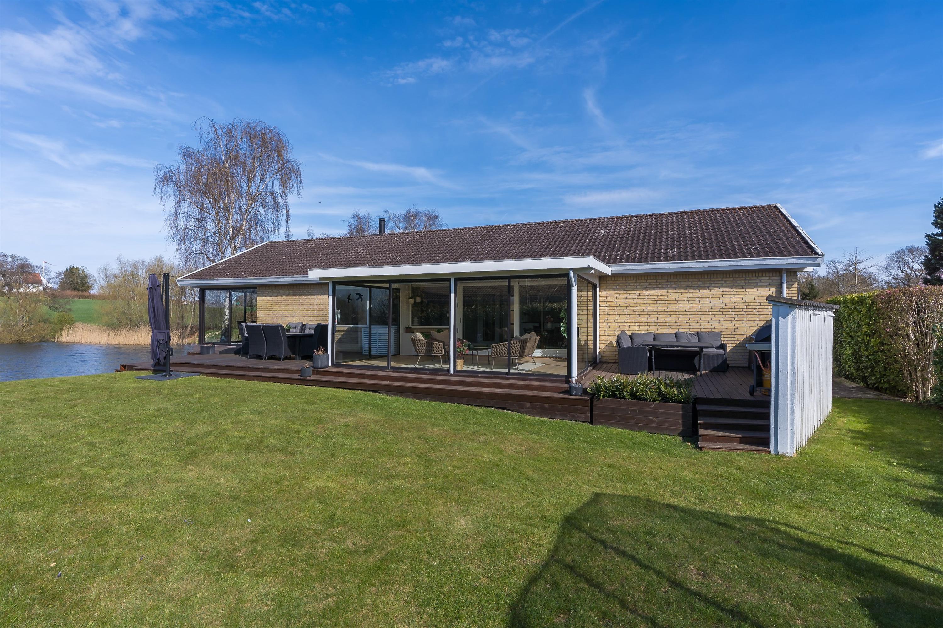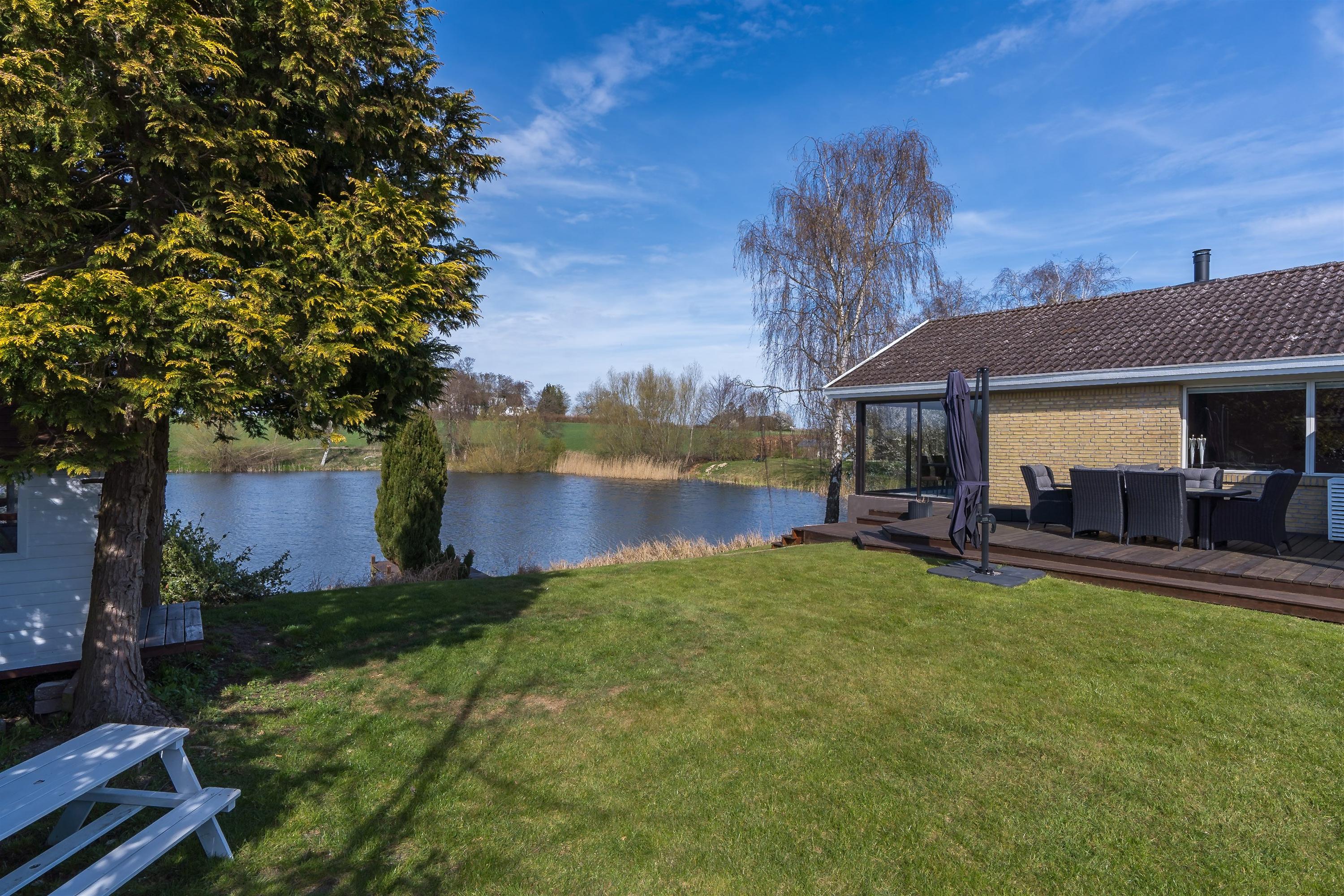 Ejendommen er beliggende på en forhøjet position, hvilket giver en enestående panoramaudsigt over Kattekær og de omkringliggende kuperede marker. Med direkte adgang til egen badebro kan man nemt sætte sig og slappe af ved vandkanten eller blot