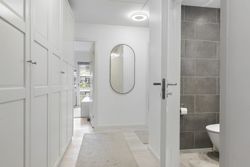 Indbydende entré og fordelingsgang med god plads til overtøj og sko. Stor og lys opholdsstue med plads til både sofaarrangement og spisebord, herfra har du udgang til den store, solrige sydvestvendte altan. Eksklusivt, nyrenoveret køkken med moderne elementer, lækre materialer, nye hårde hvidevarer og masser af skabs- og bordplads. Flot, gennem istandsat badeværelse med indbydende klinker på både gulve og vægge, gulvvarme og væghængt toilet. Gæstetoilet med vaskemaskine i samme lækre stil. Tre rummelige værelser, to børneværelser (det ene med udgang til østvendt altan) samt et lyst og stort forældresoveværelse med egen udgang til ligeledes østvendt altan.