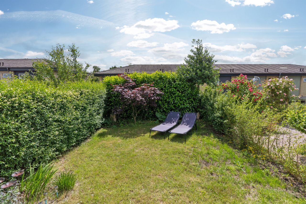 - Skøn, solrig sydvest vendt have med overdækket træterrasse – perfekt til sommerdage